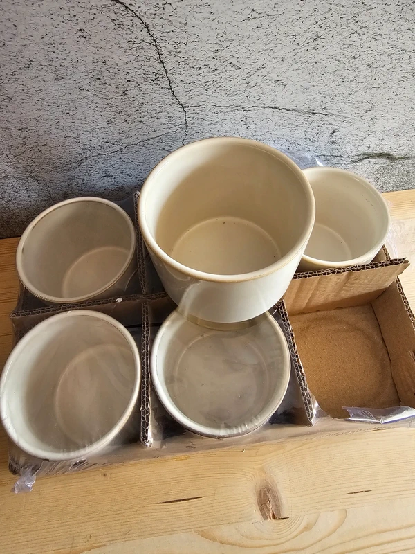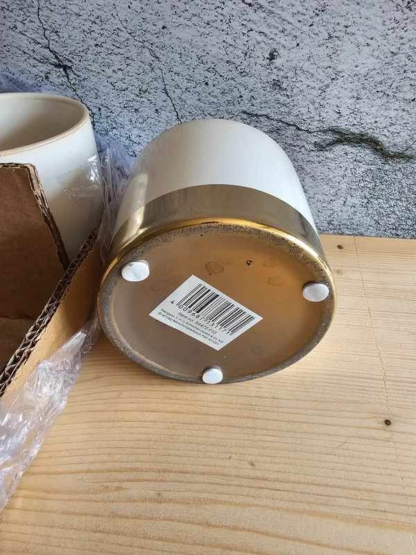 Ideal für all unsere Babyplants! 6 St. Übertopf Juna weiß / gold Maße: groß - 10 x 9,5cm (h) Farbe: weiß glasiert mit goldenem Fuß