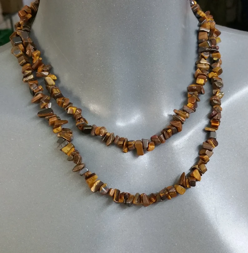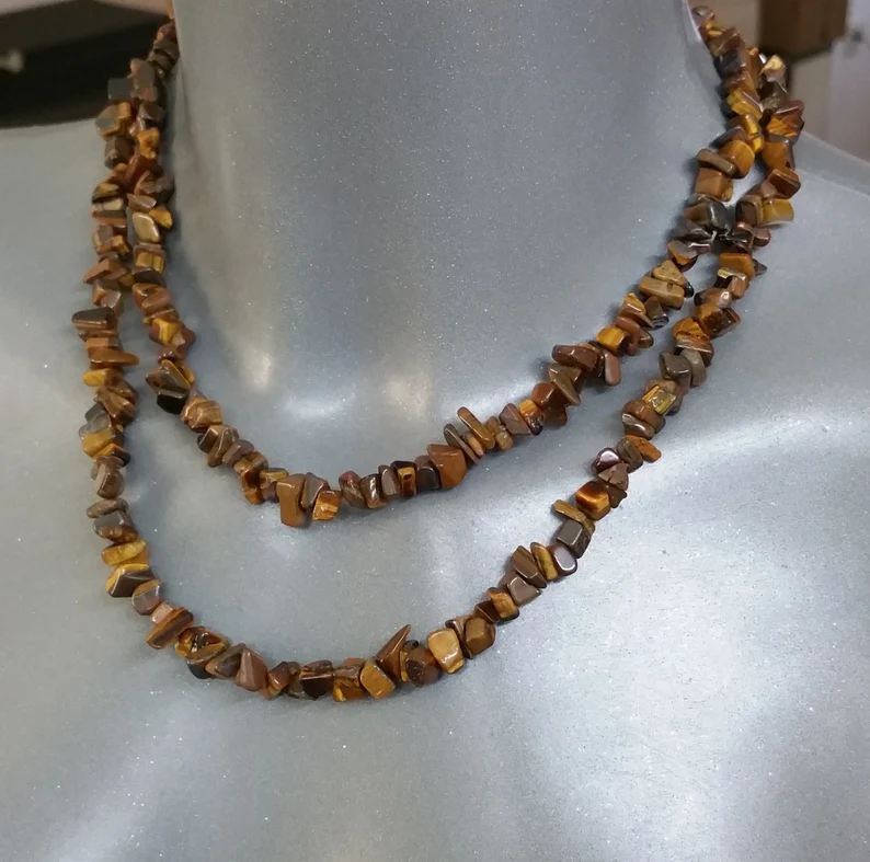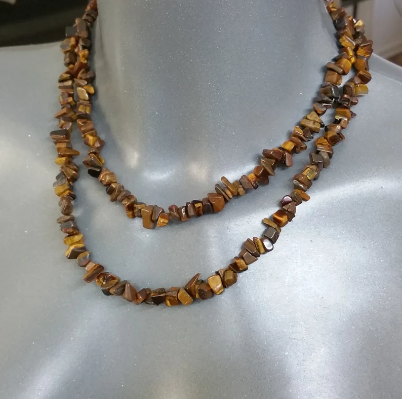89 cm Kette Halskette Tigerauge ohne Verschluss Vintage elegant EK108