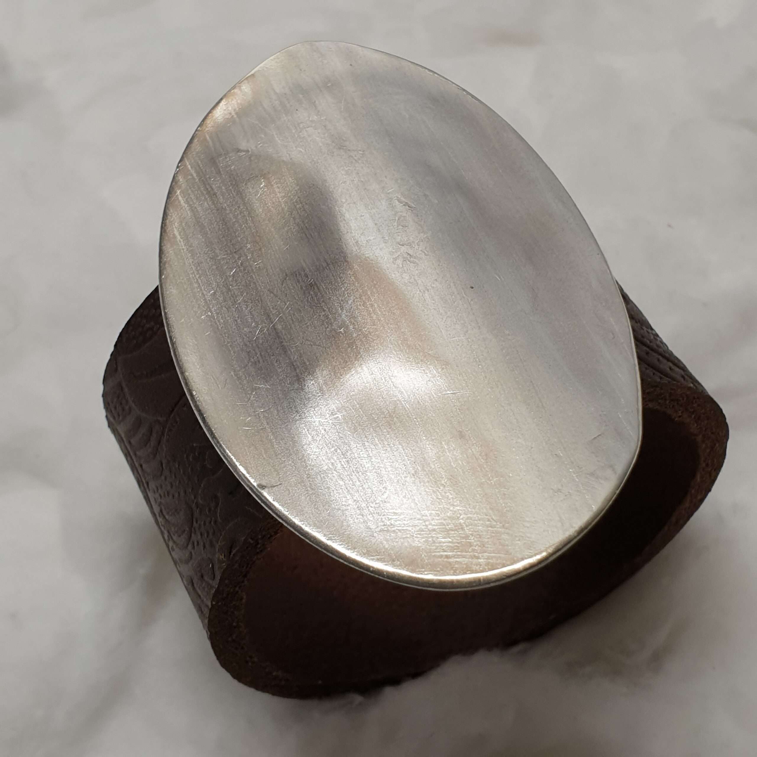 Dunkelbraunes Lederarmband mit Rankenmuster und Mattschlief-Schliesse
