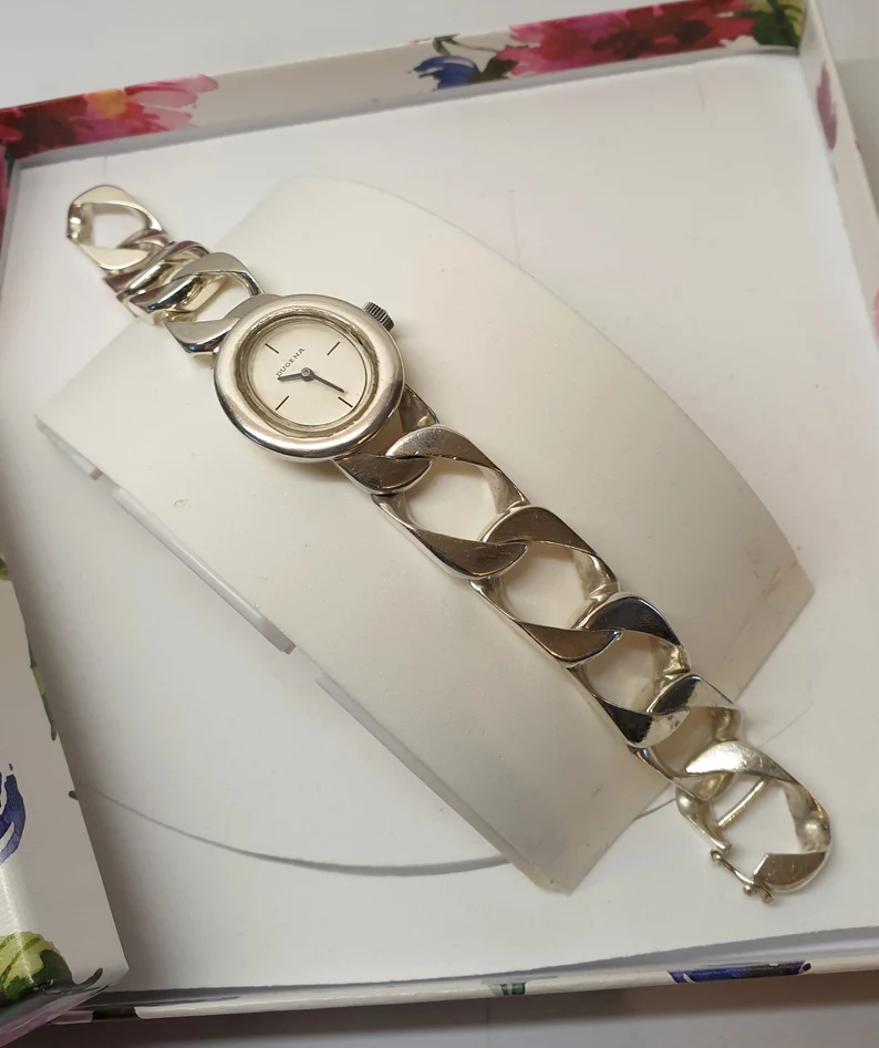 DUGENA Damenuhr mit Panzerarmband 0,835 Handaufzug mechanisch UU106