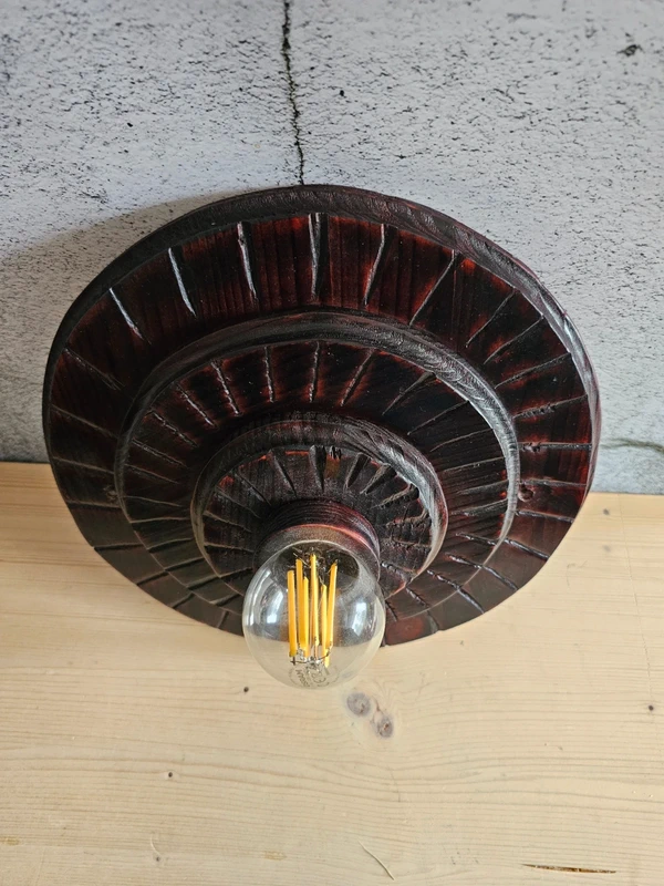 Produktinformationen "Handgearbeitete Deckenleuchte in Mahagoni Holz"
