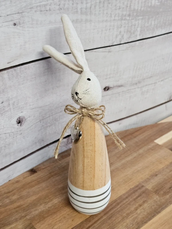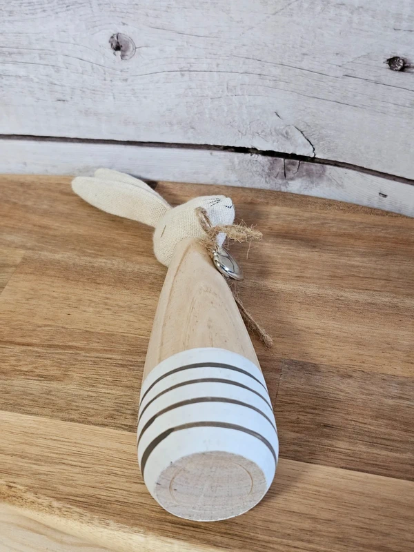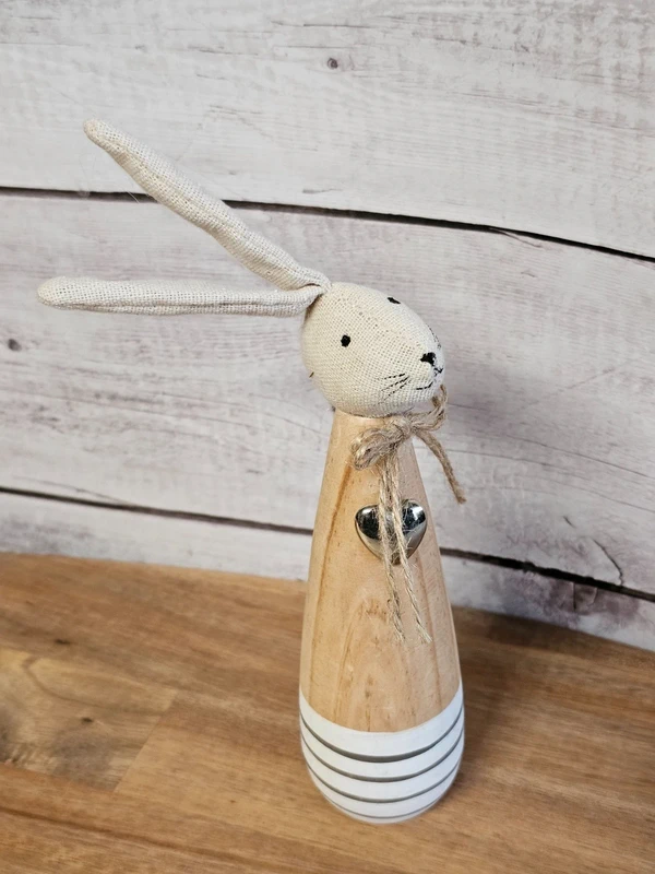 Dieser Hase zaubert pure Nostalgie in die Feststube und strahlt mit ergänzenden Oster Dekoration, wie Zweige oder Trockenblumen, wunderbares aus.