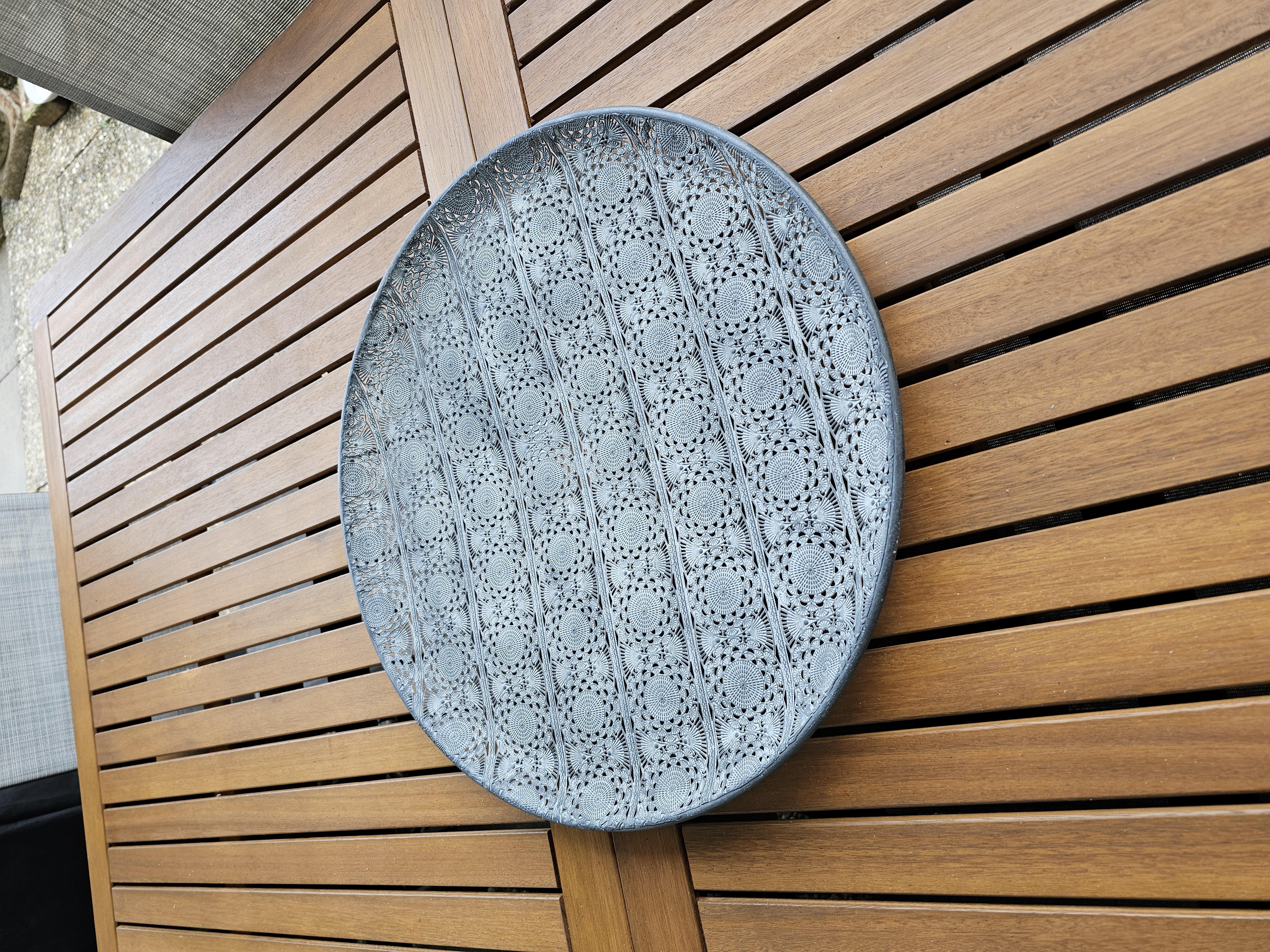 Massiver Metall-Teller 50cm – Silberne Deko-Schale