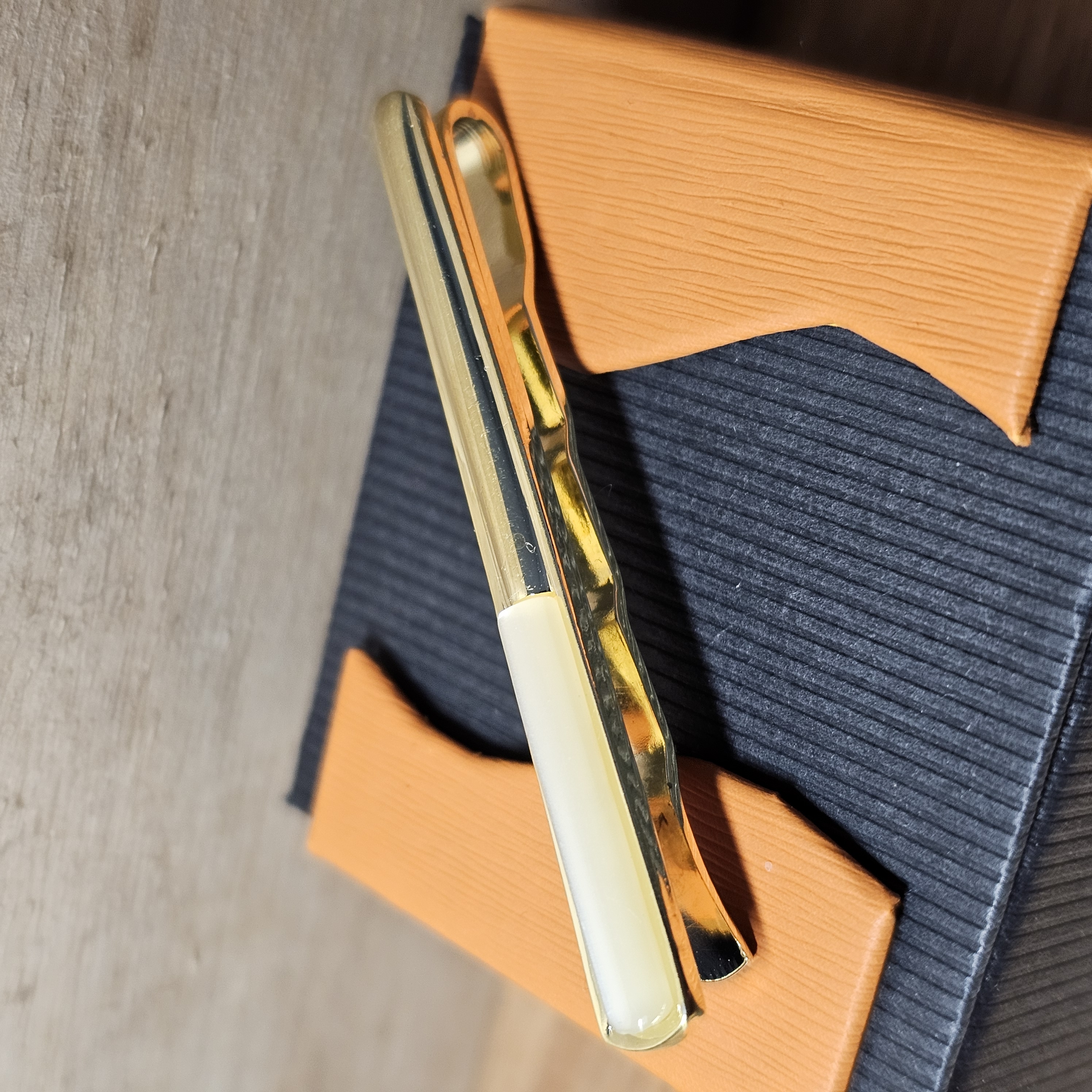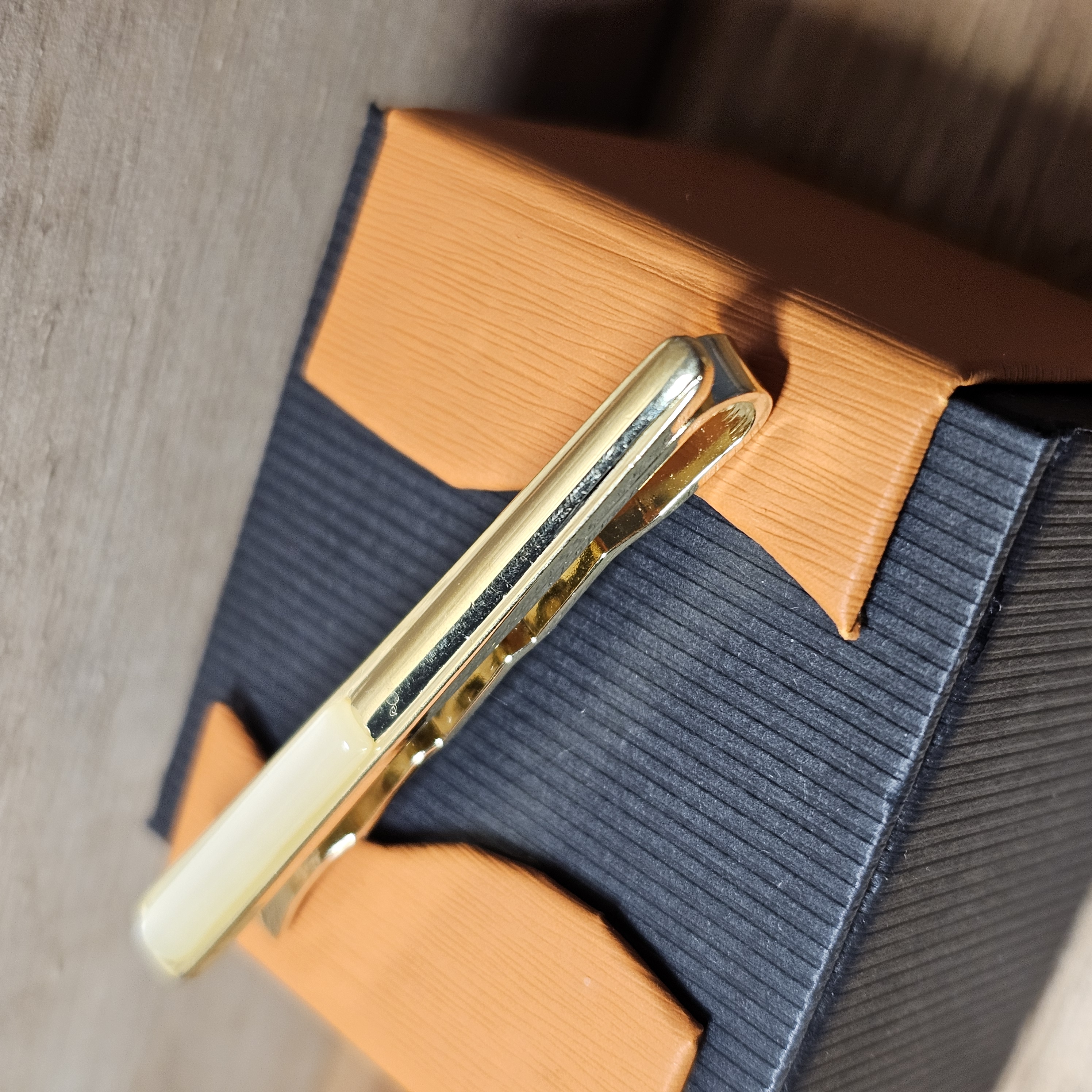 Krawattenklammer Krawattennadel Klemme Doublé vergoldet Achatstein weiß Einlage Vintage Design elegant KW100