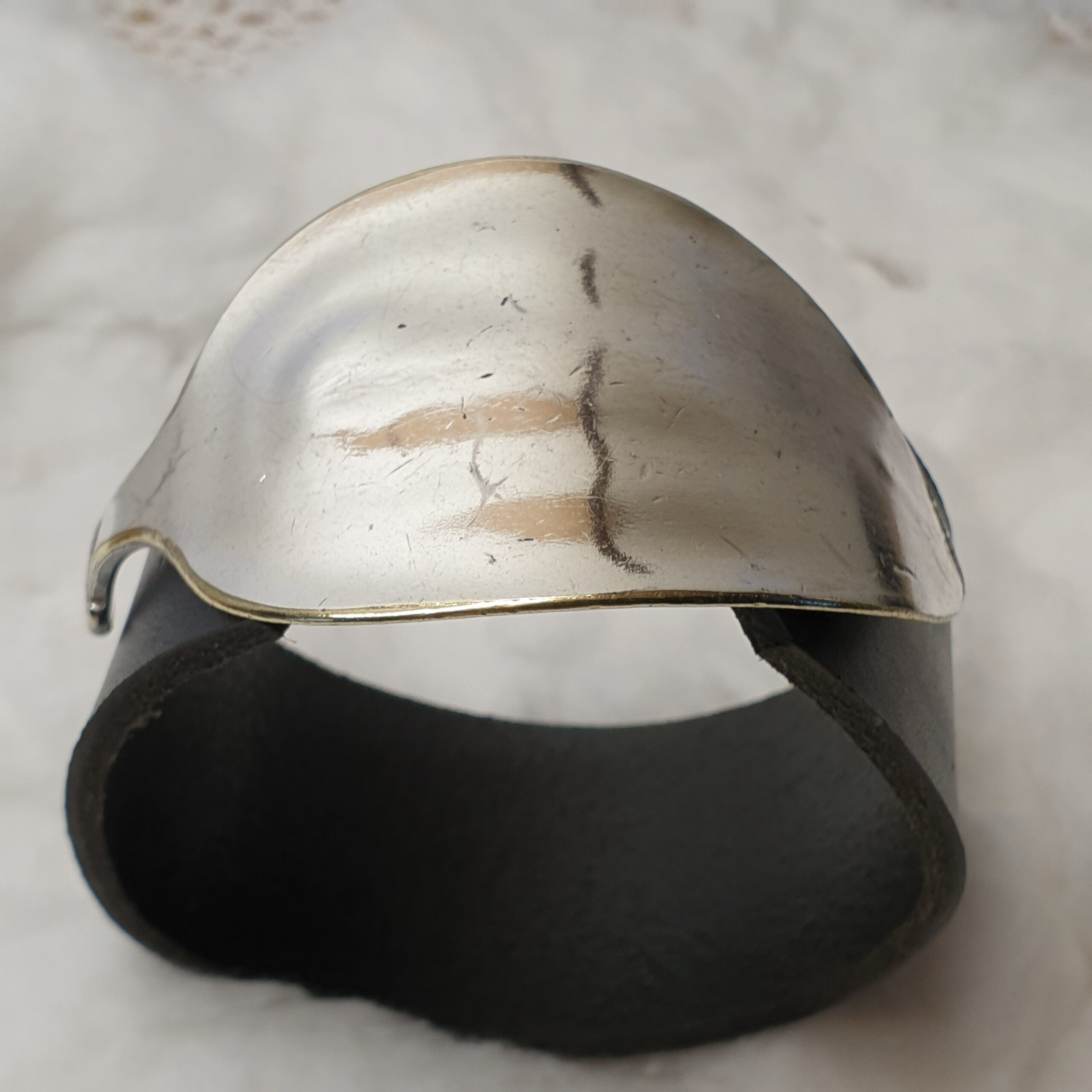 Das Lederband wird oben an der Schließe eingehängt/gehalten und ist