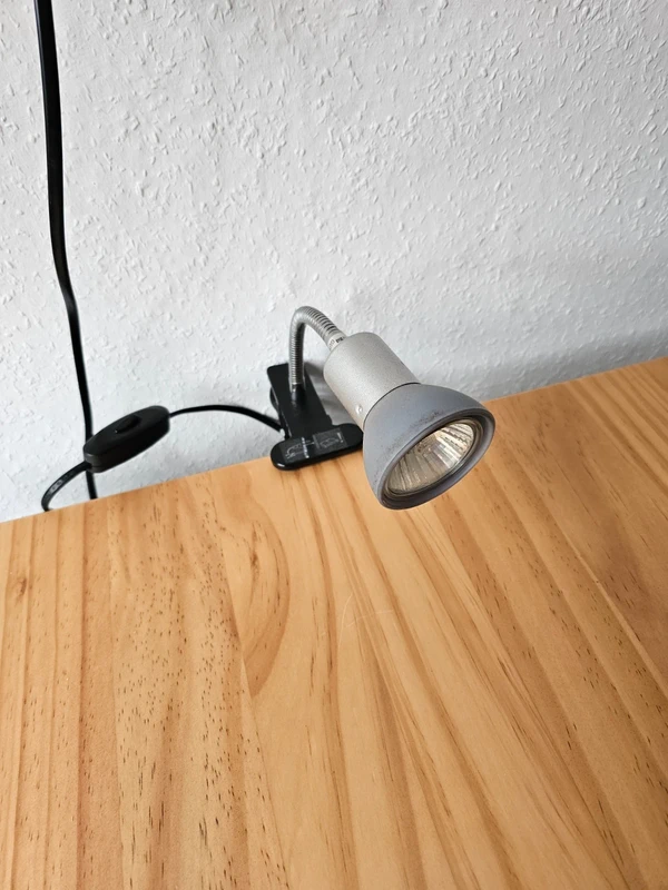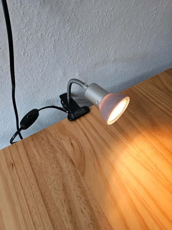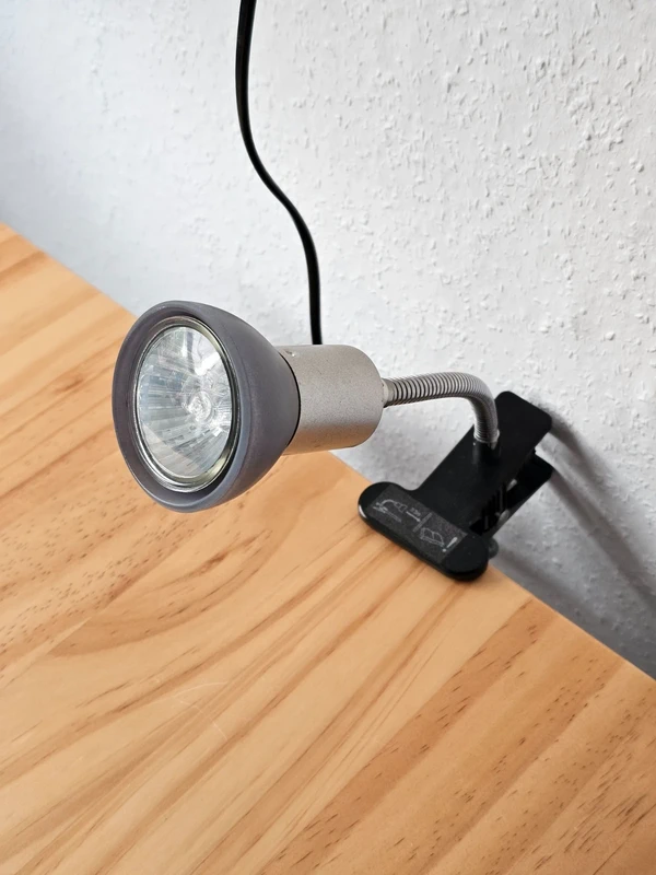 LIVARNO home Klemmleuchte / Tischleuchte, 35 W inkl. Birne GU10. Die Klemmleuchte ist betriebsbereit.