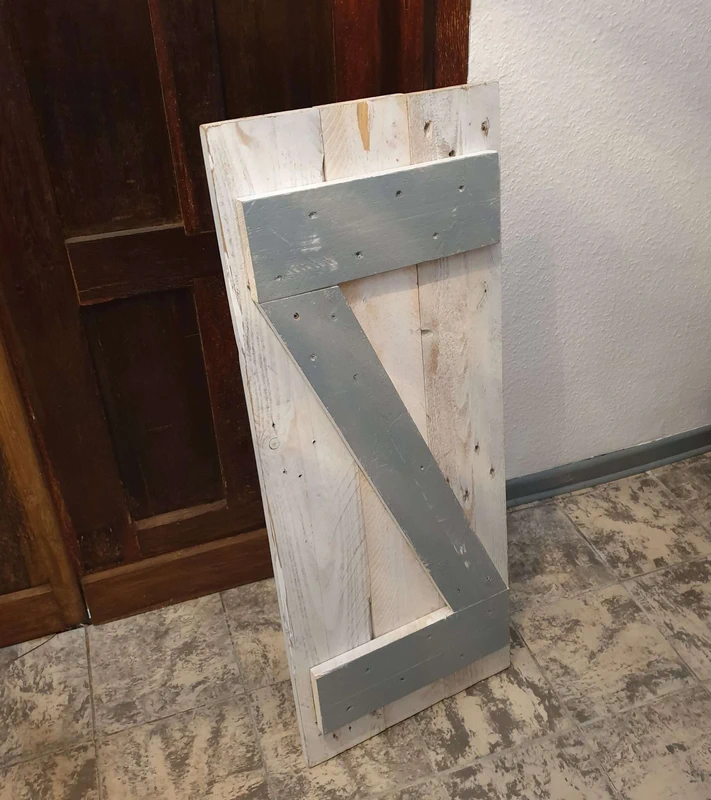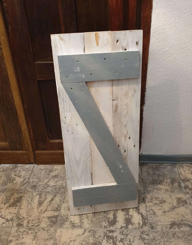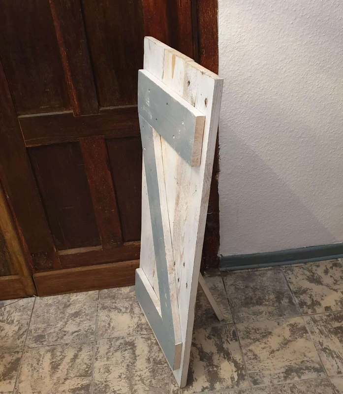 Dieser massive Holzständer ist aus Palettenholz in Handarbeit gefertigt und mit einem ShabbyChic Look ausgestattet. Ein tolles Unikat, welches sich auch gut für eine Gartendeko eignet.