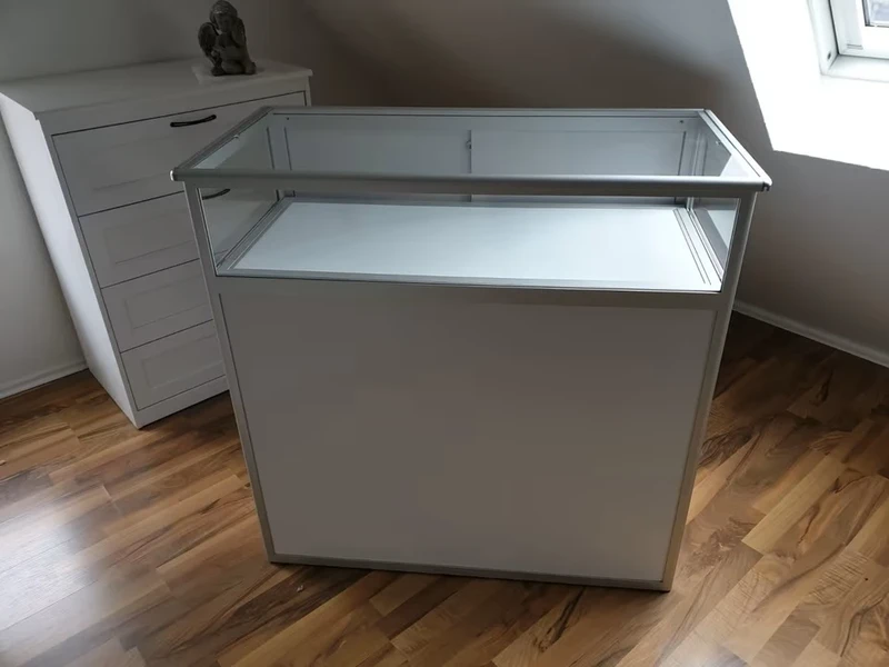 Rechteckige Aluminiumtheke mit Vitrine,