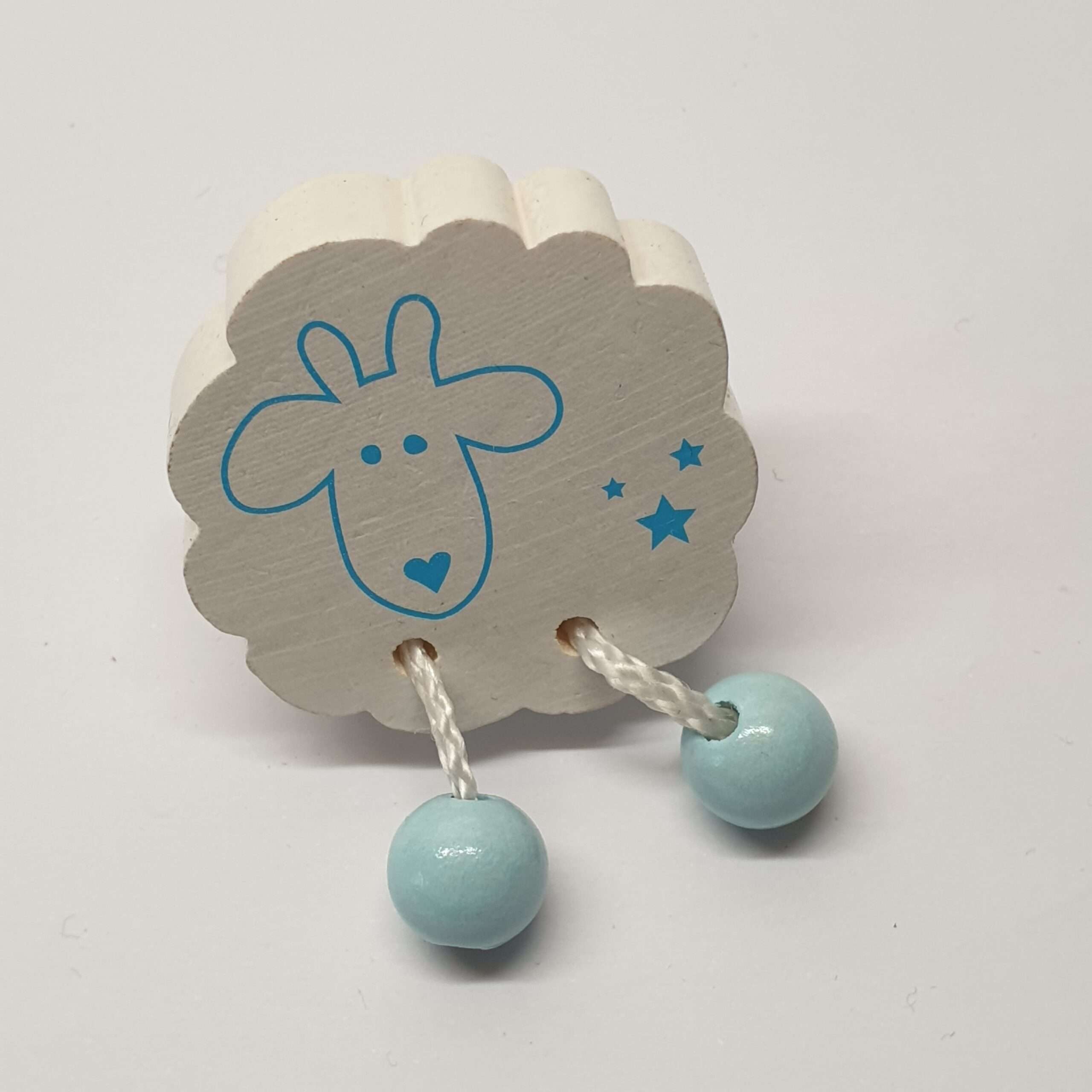 Produktinformationen "Motivperle Figur Fädelfigur Schaf Schäfchen Bammelbeine weiß blau hellblau MP170-03"