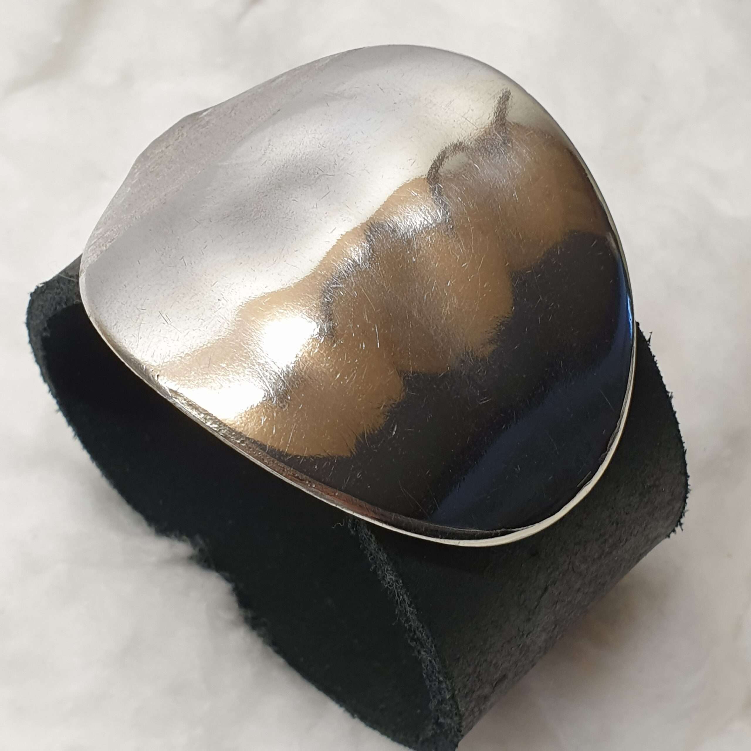 Die Schnalle/Schließe ist glänzend und an einem Rand quer geschliefen