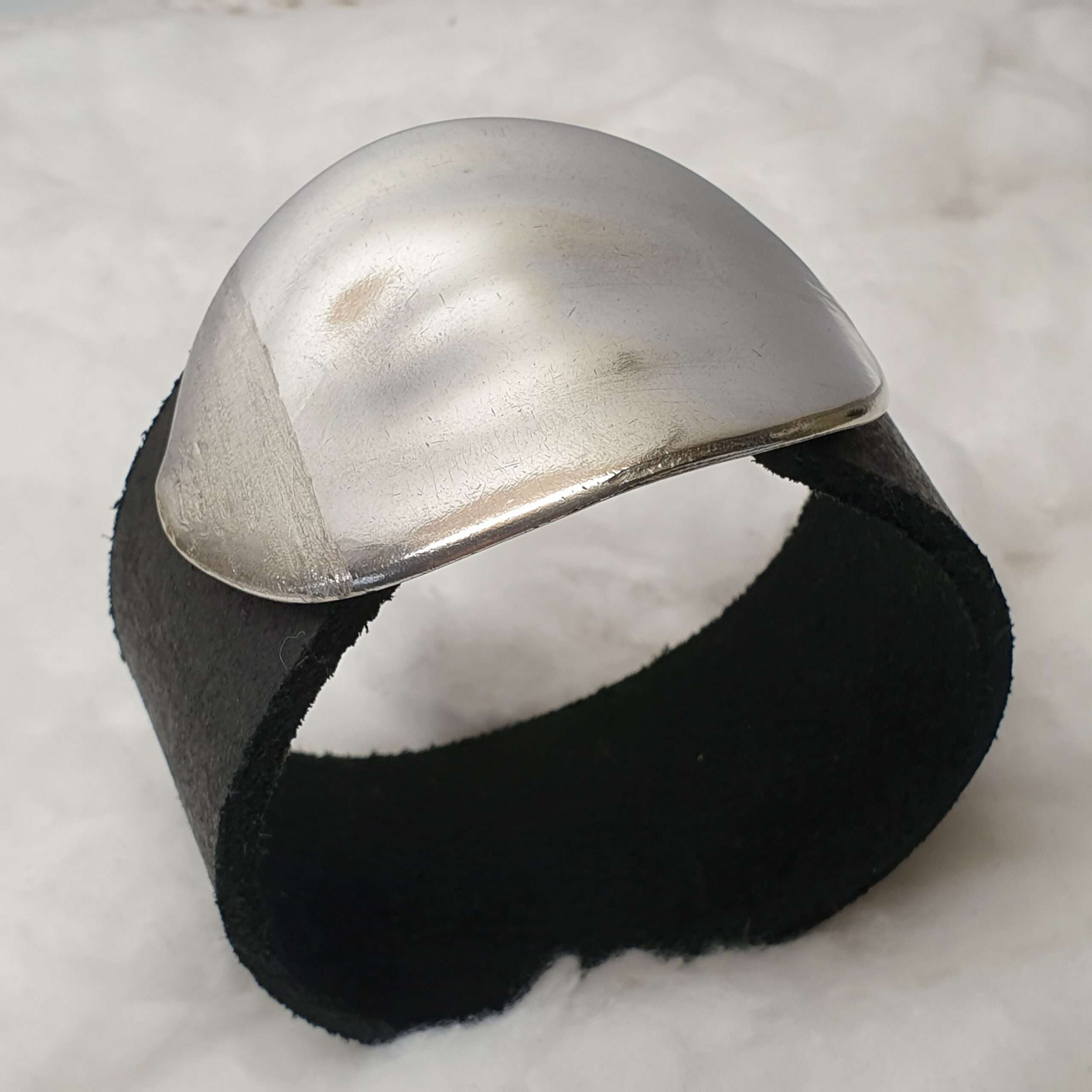Das Lederband wird oben an der Schließe eingehängt/gehalten und ist