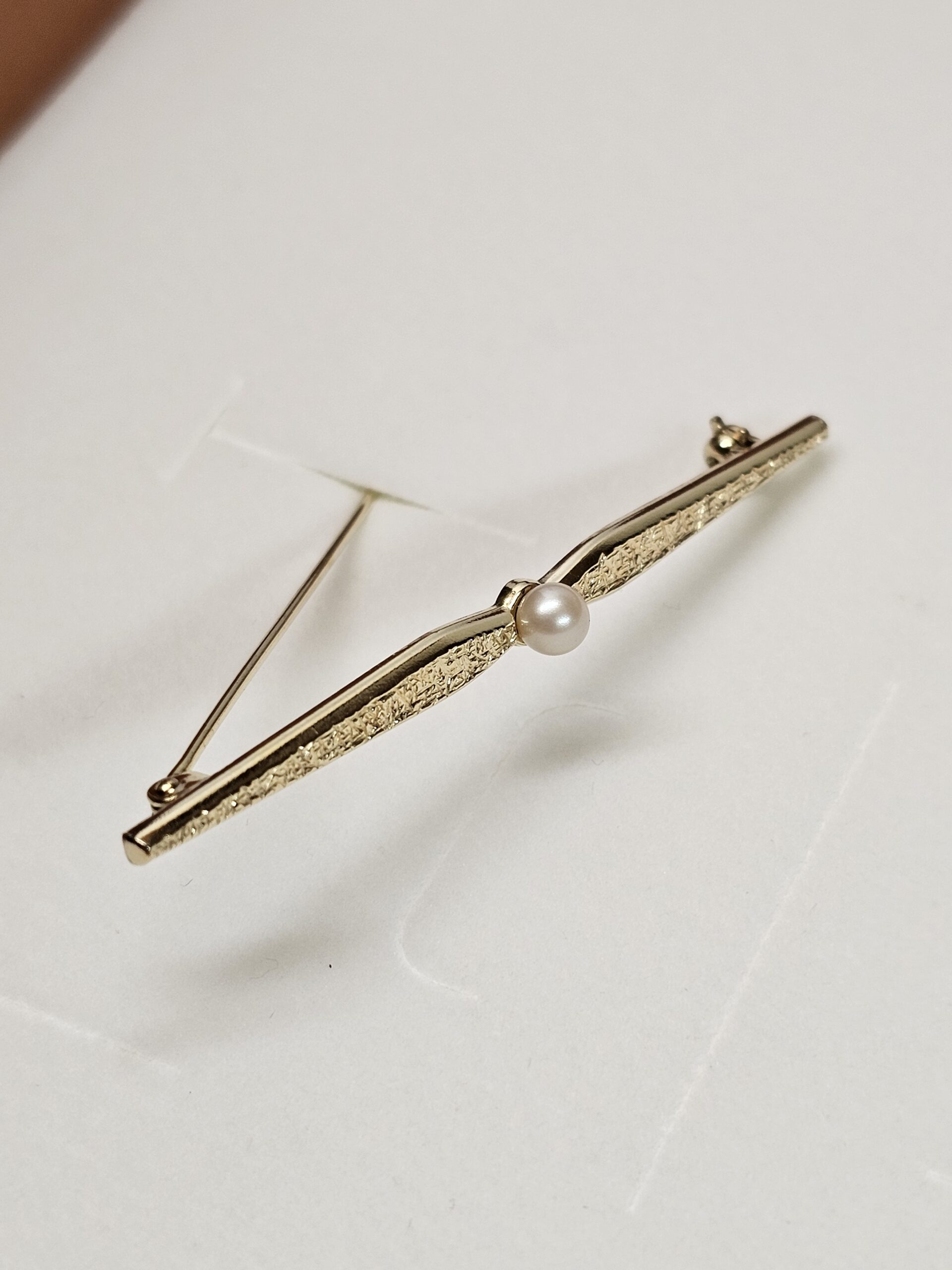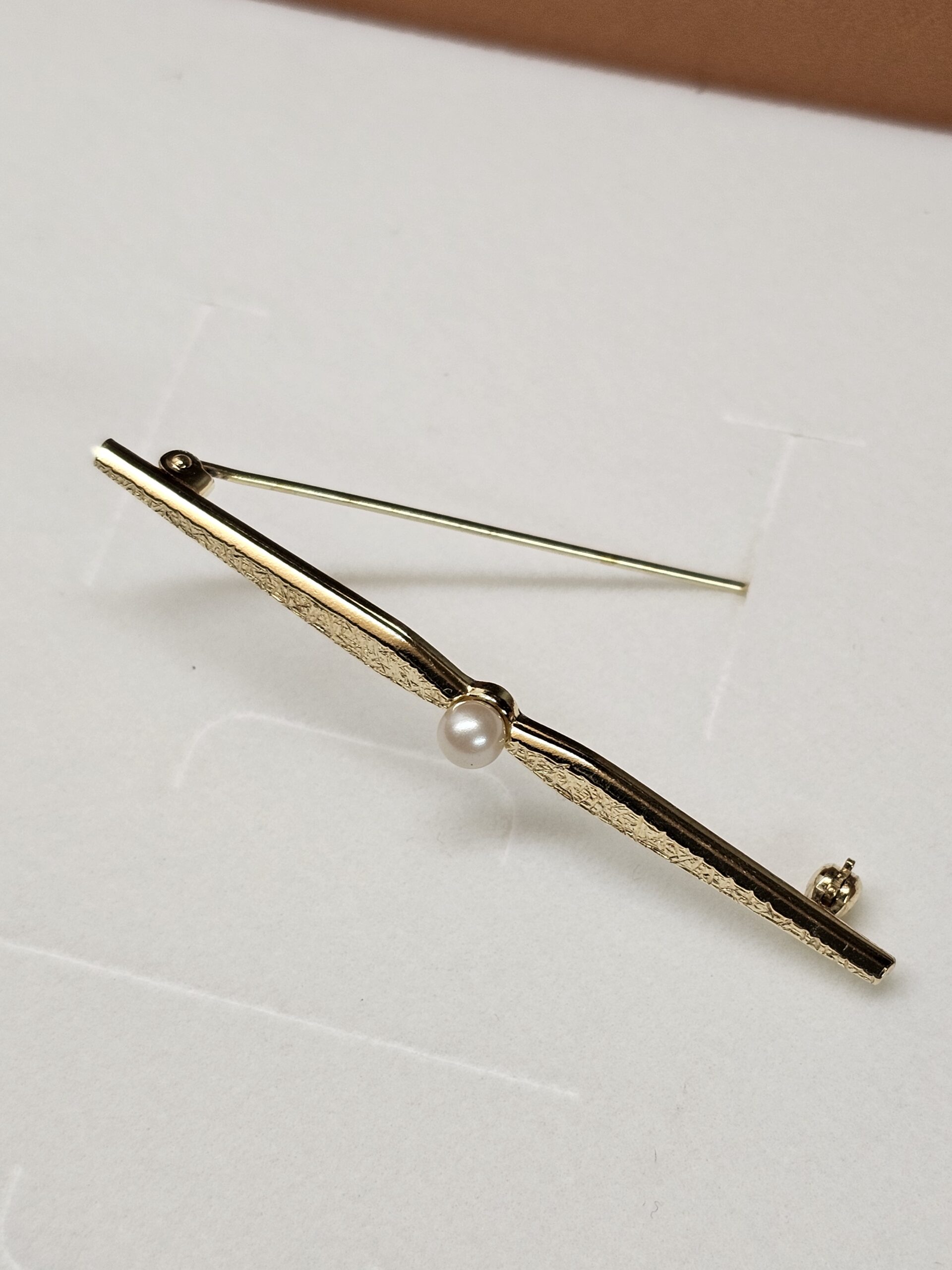 Hübsche Shabby Vintage Brosche / Anstecknadel Amerik Doublé vergoldet und mit einer weißen Perle besetzt.