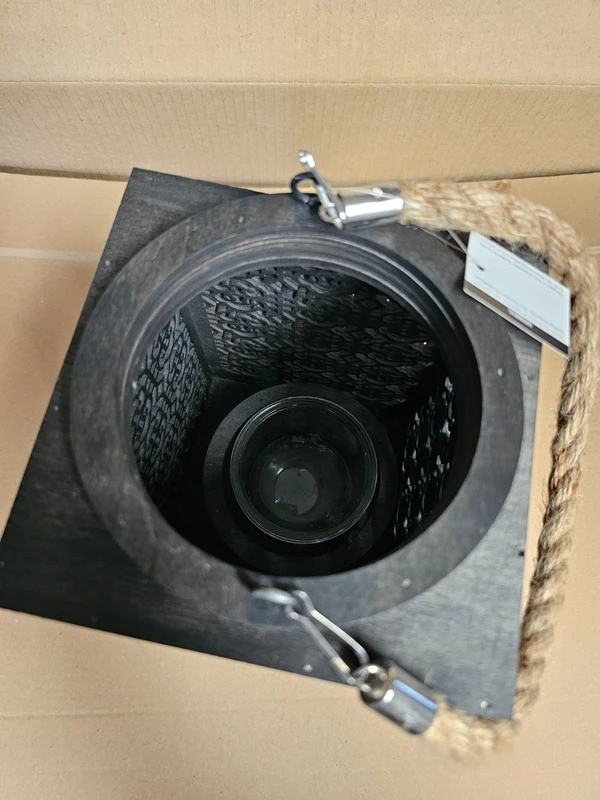 Sie hat einen Glaseinsatz für die Kerze, so dass die Flamme nicht vom Wind ausgeblasen wird.