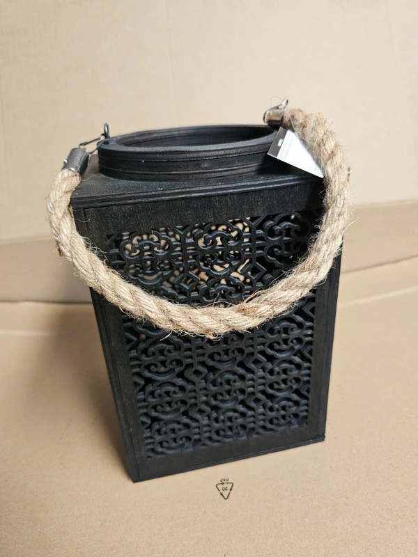 Windlicht Holz Laterne Marokko 23 cm in Schwarz
