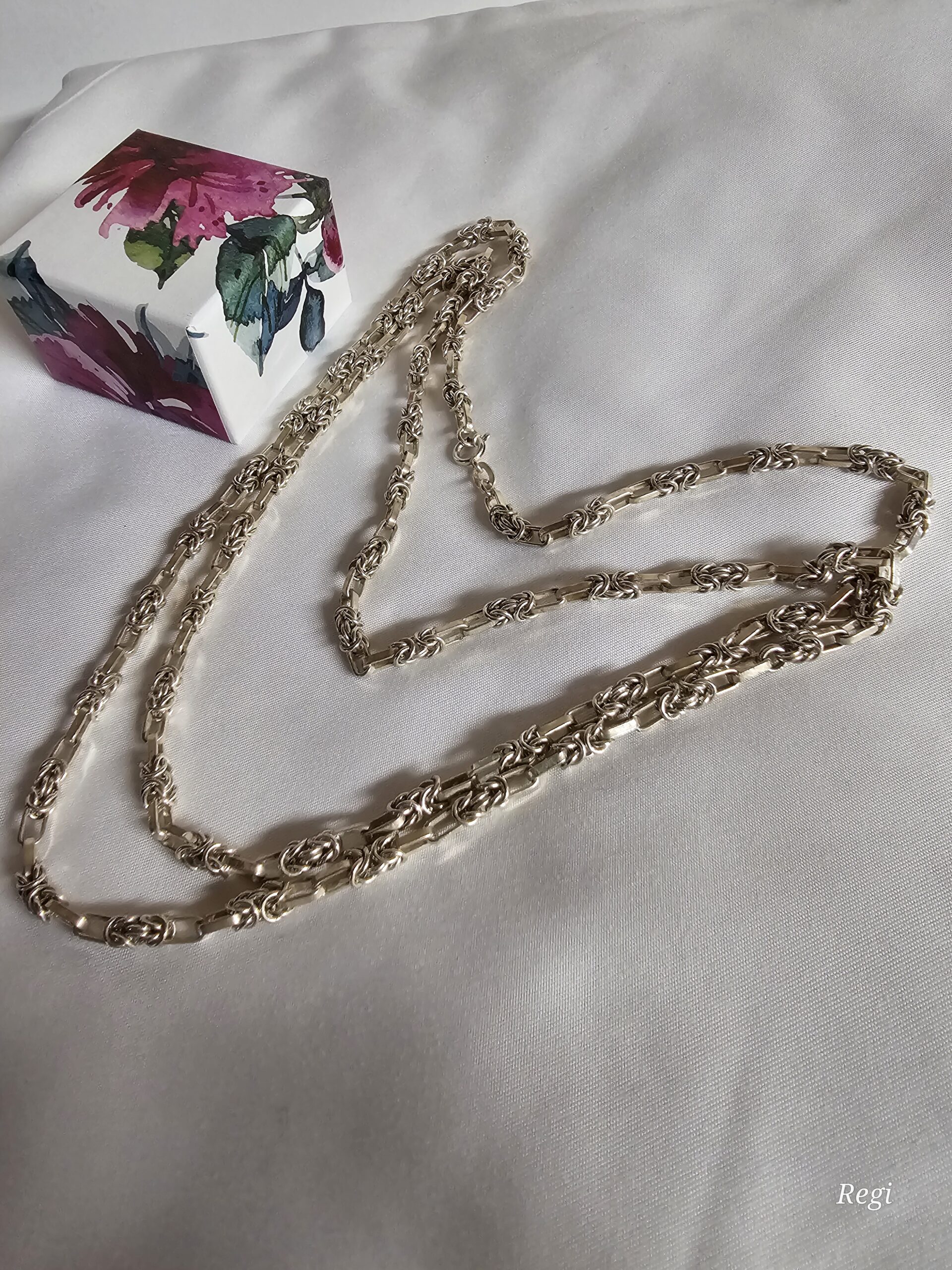 Hübsche Gliederkette aus 835 Silber. Die größeren Glieder haben ein außergewöhnlich schönes und seltenes Design.