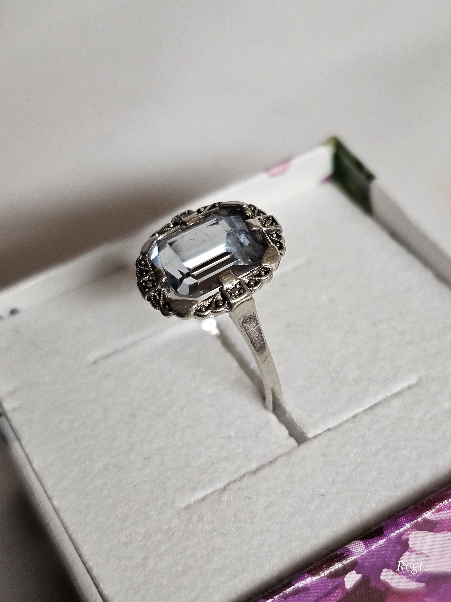 16,2 mm Jugendstil Ring Silber 935 Topas Blautopas & Markasiten antik selten Design Shabby Vintage elegant SR1582