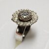Hübscher Ring Silber 925 mit einem Hauch von Teilvergoldung am Ringkopf. Mittig in der Blüte sitzen 7 Stck. keine klare Kristallsteinchen.