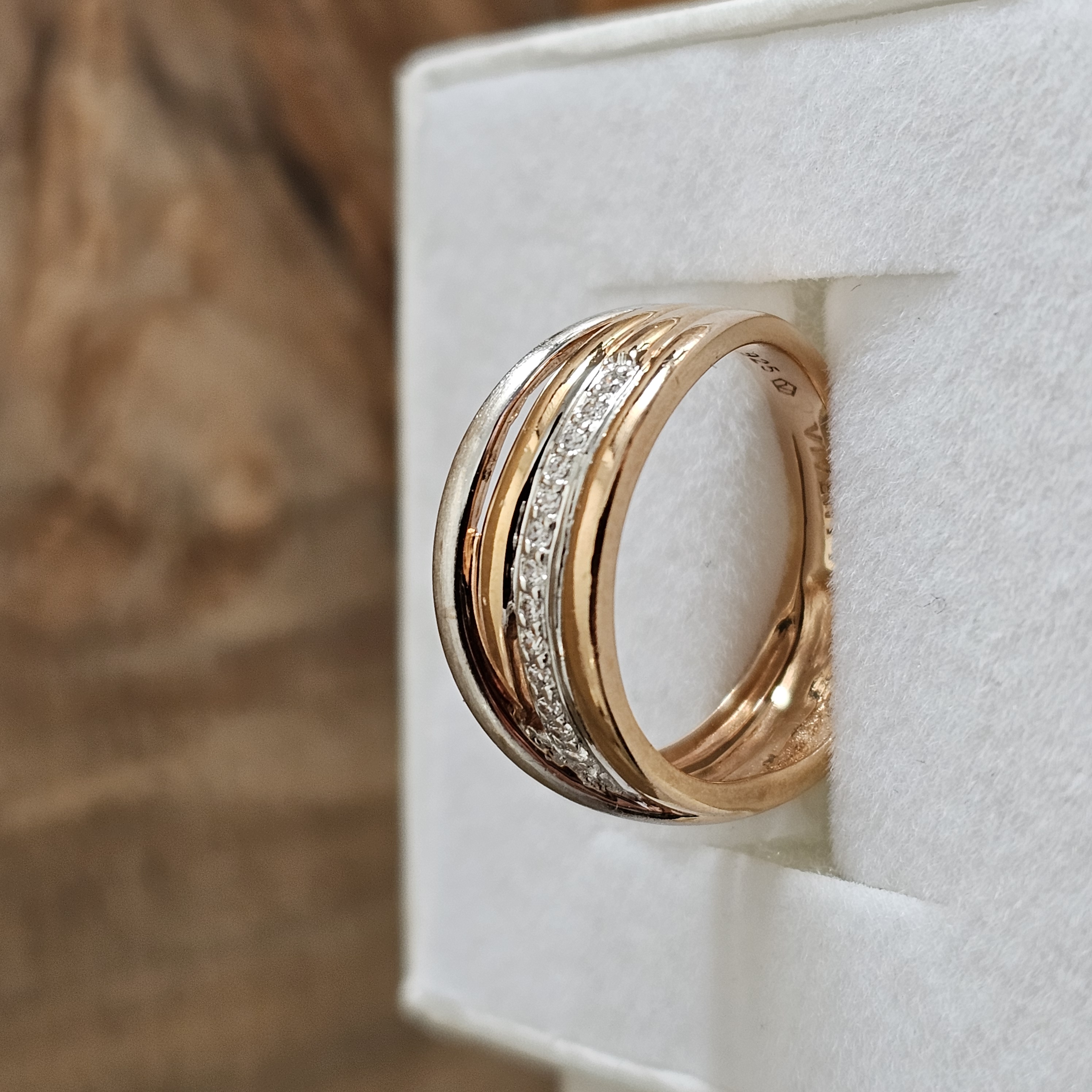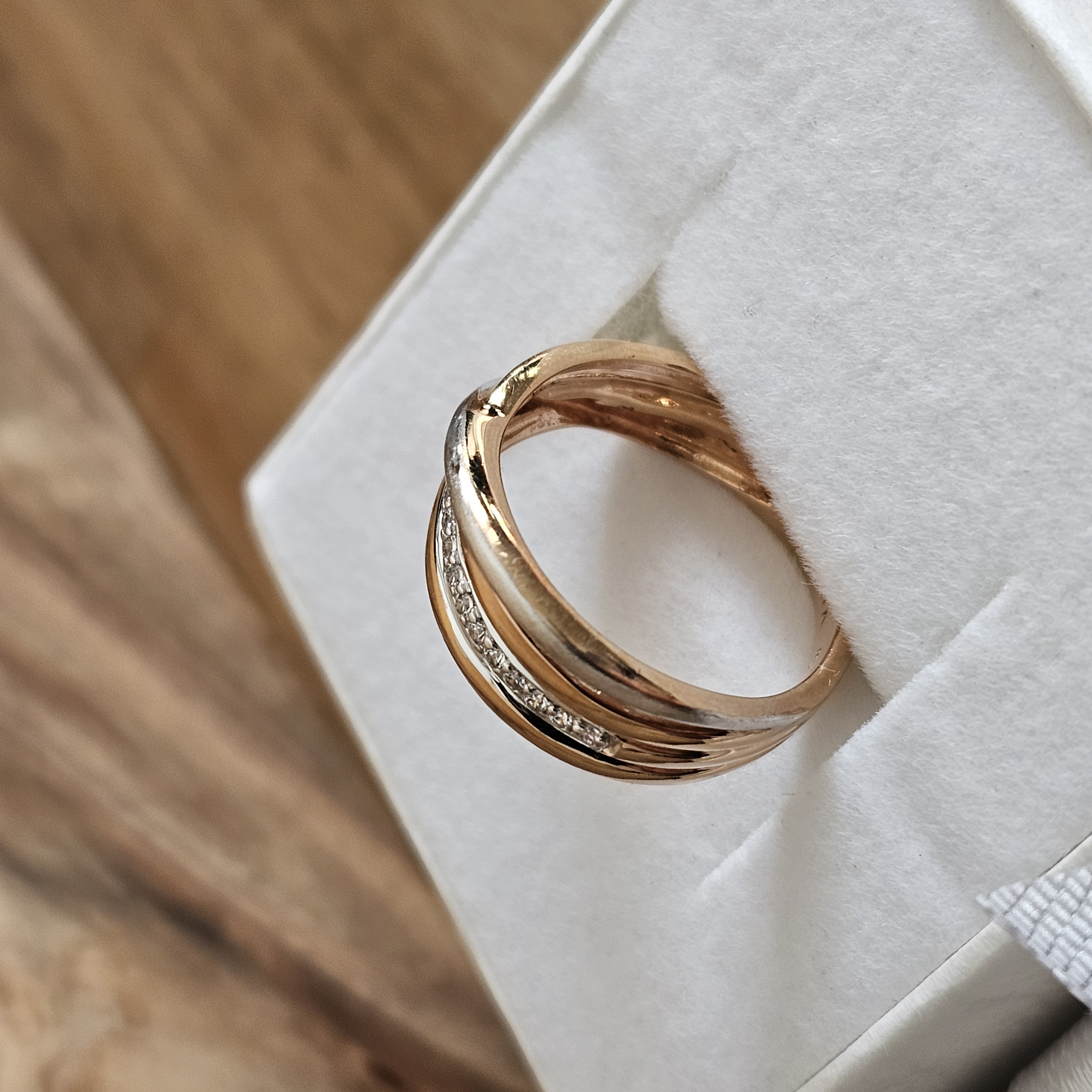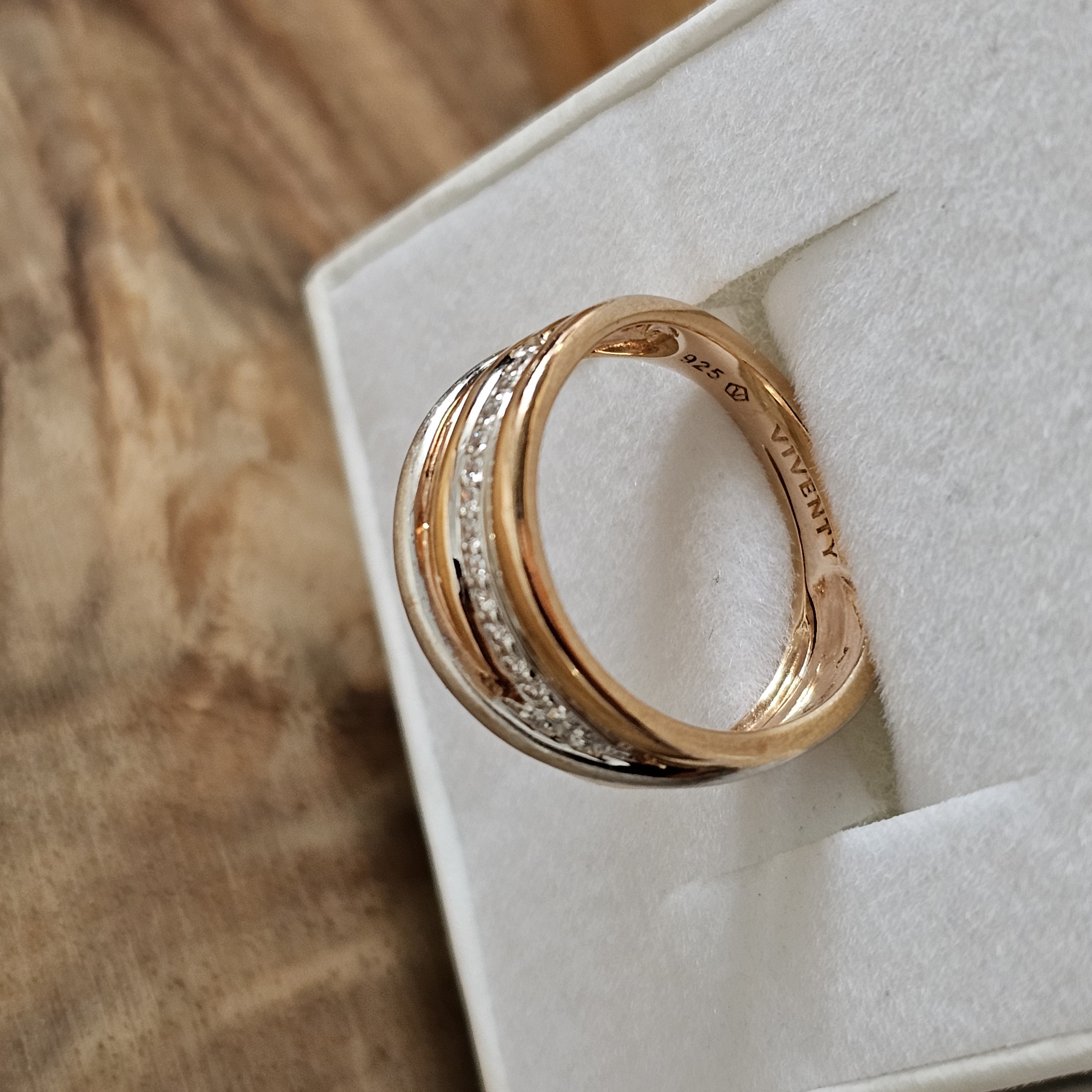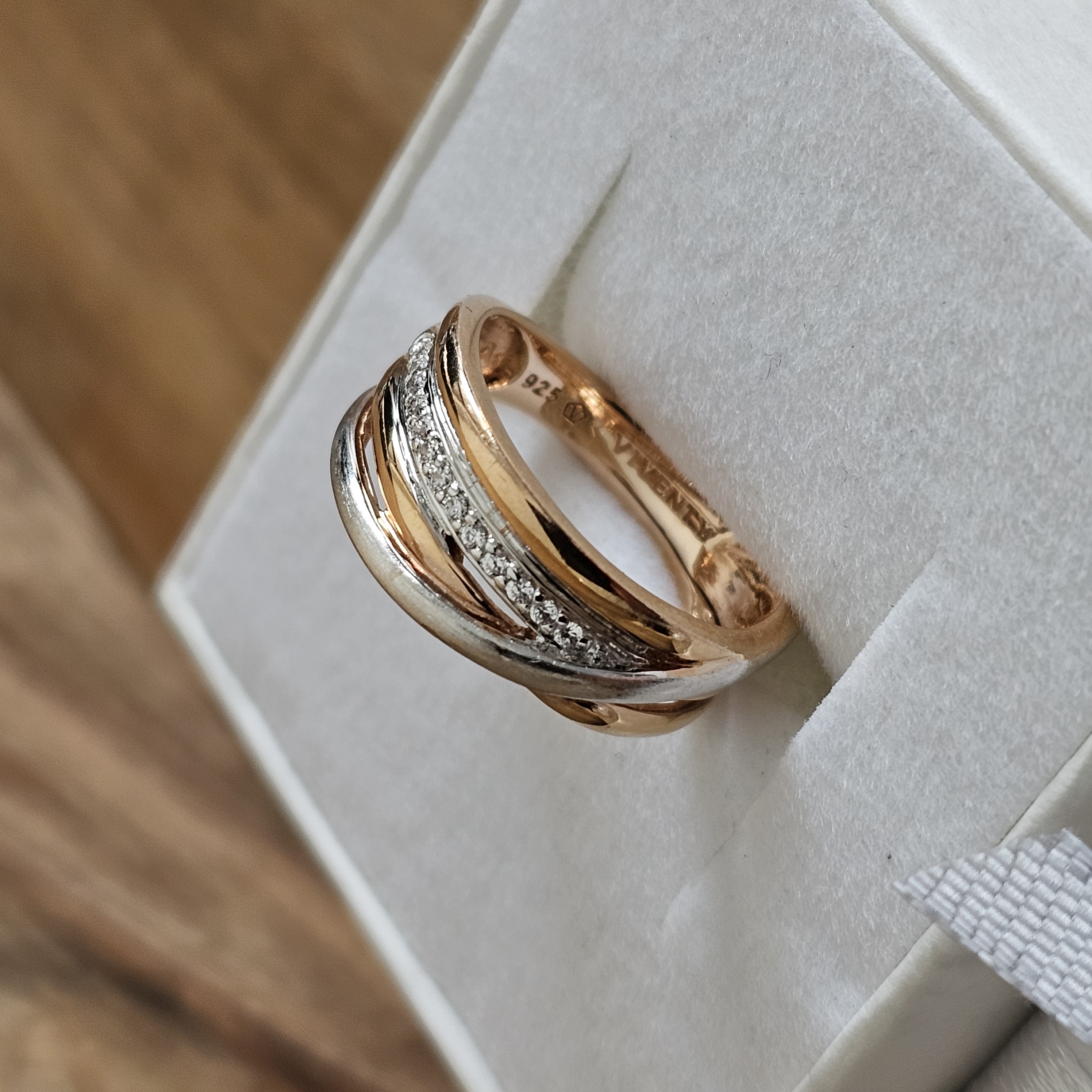 Vintage Silberring Silber 925, edles teilvergoldetes Design , verziert mit klaren Kristallsteinchen.