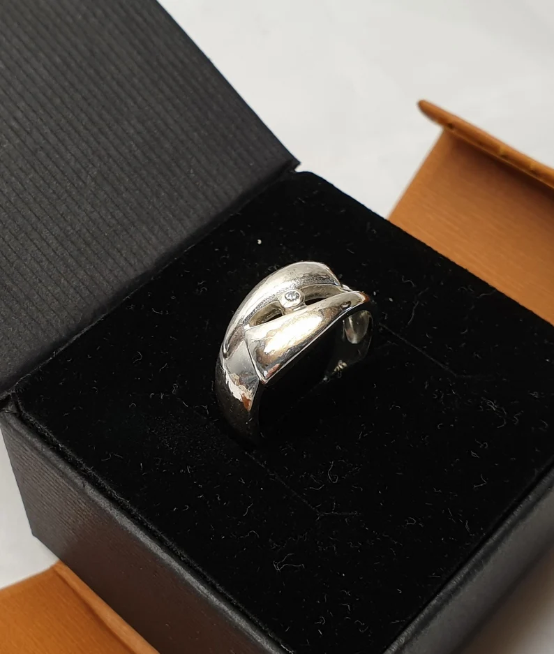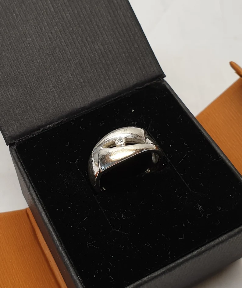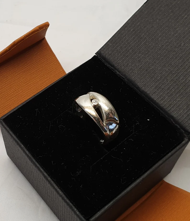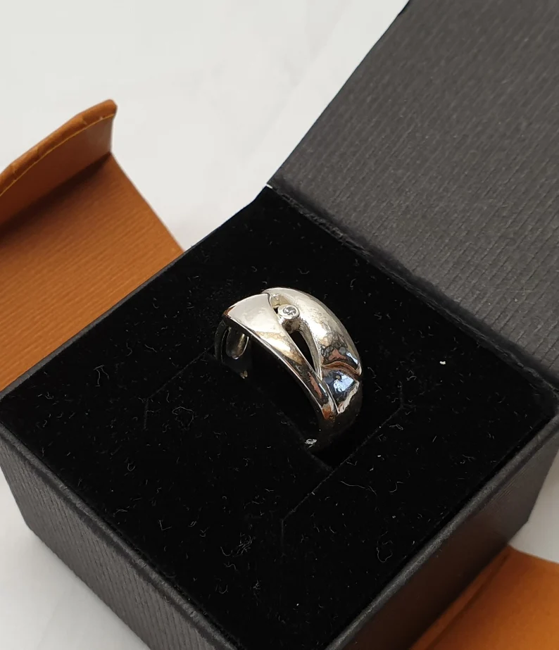 Nostalgischer Ring Silber 925 mit einem klaren Kristallstein auf dem teils durchbrochen gestalteten Ringkopf.