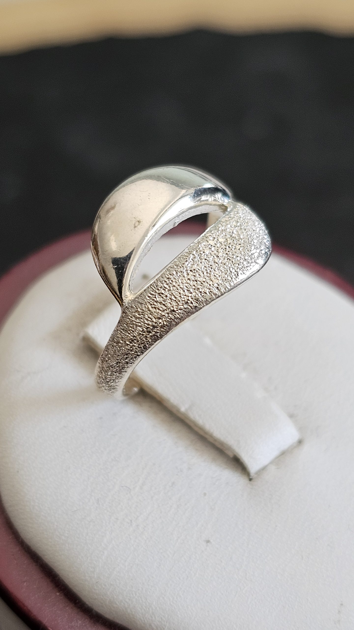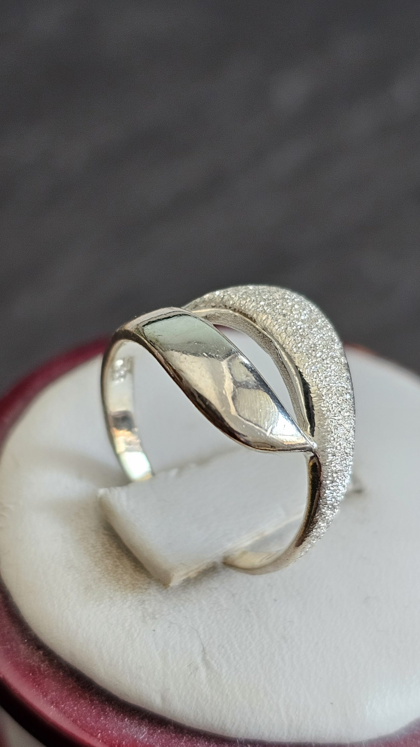 Sehr schöner, elegant gearbeiteter Silberring aus Silber 925. Teils diamantiert geschliffen, dadurch erhält er einen schönen Glitzereffekt.