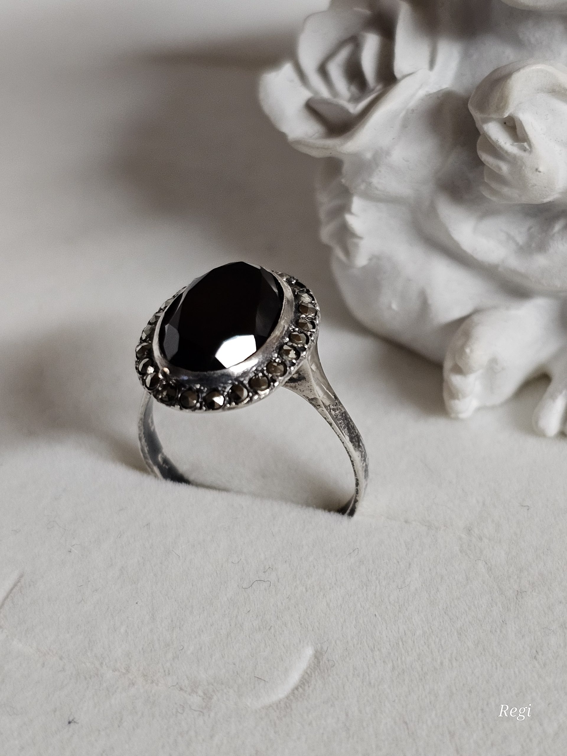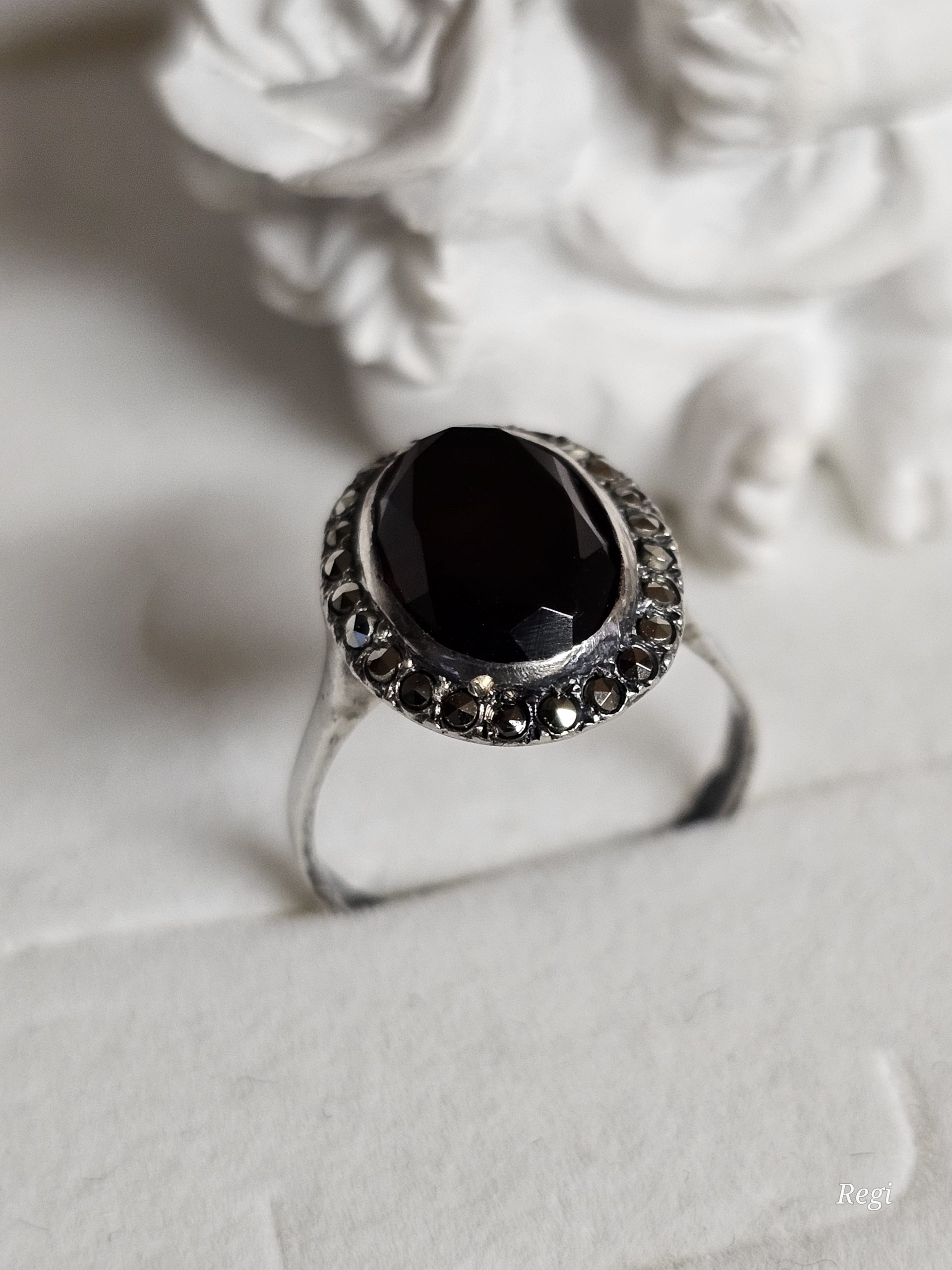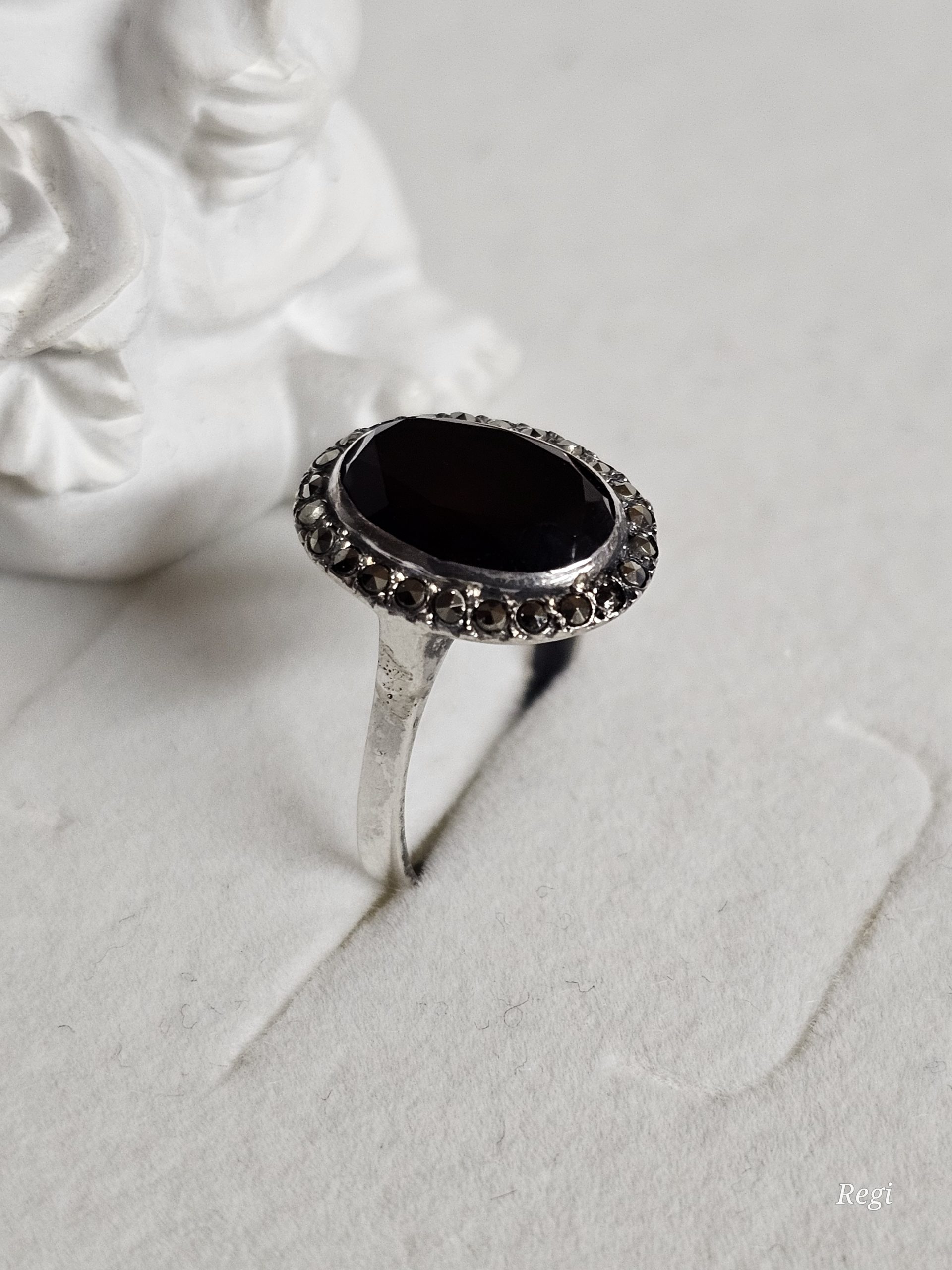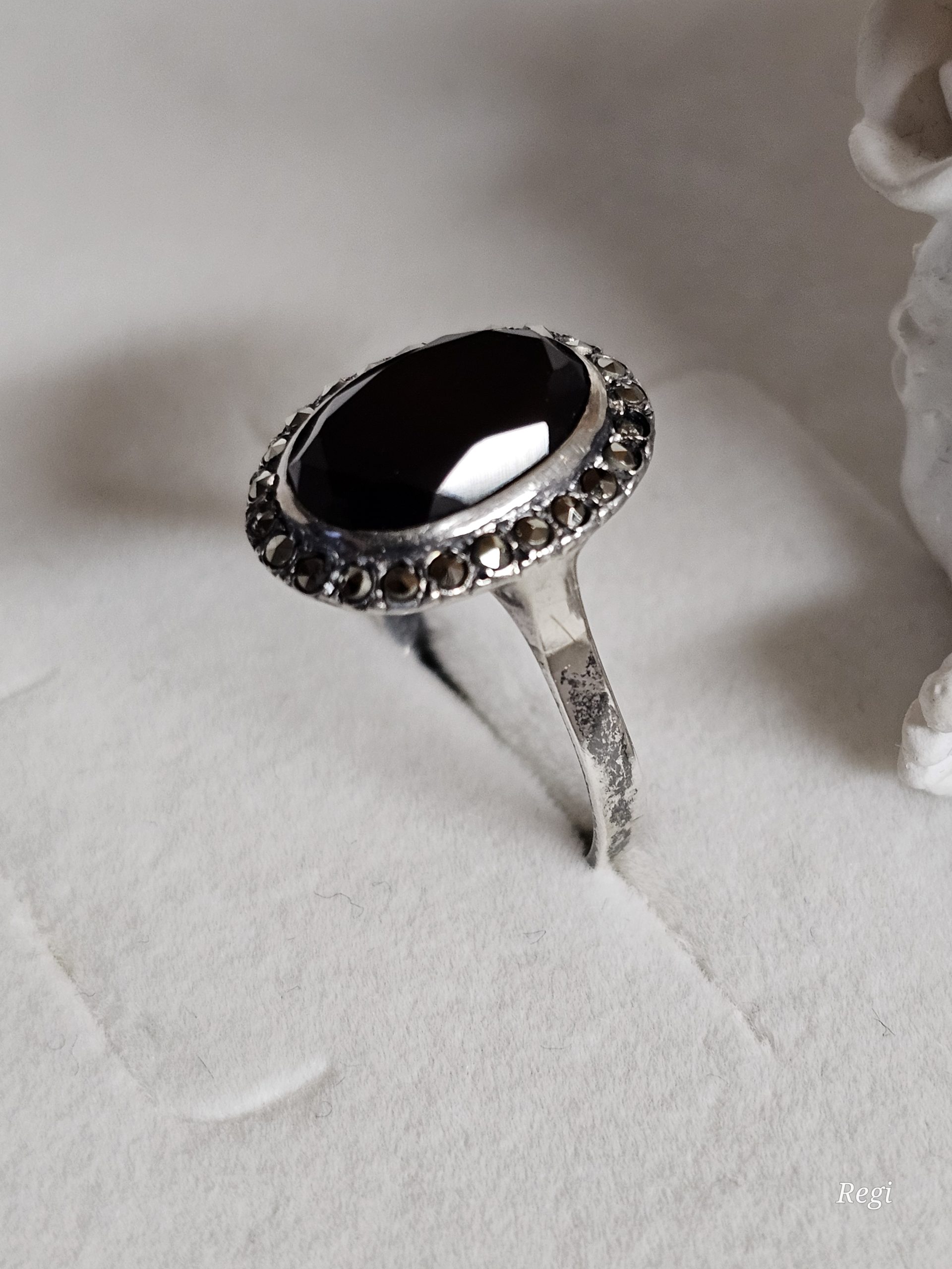 Schöner nostalgischer Silberring Silber 835 mit einem tollen braunen Achat-Stein besetzt. Umrandet ist der schöne Achat mit Markasiten.