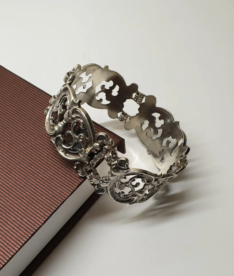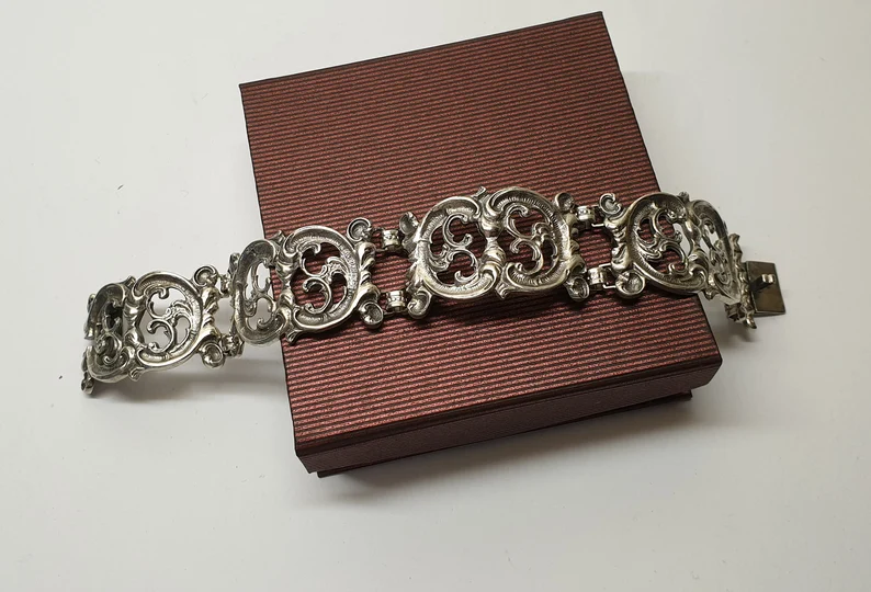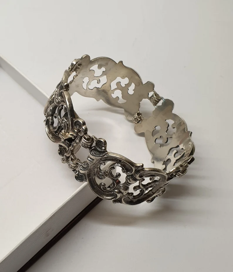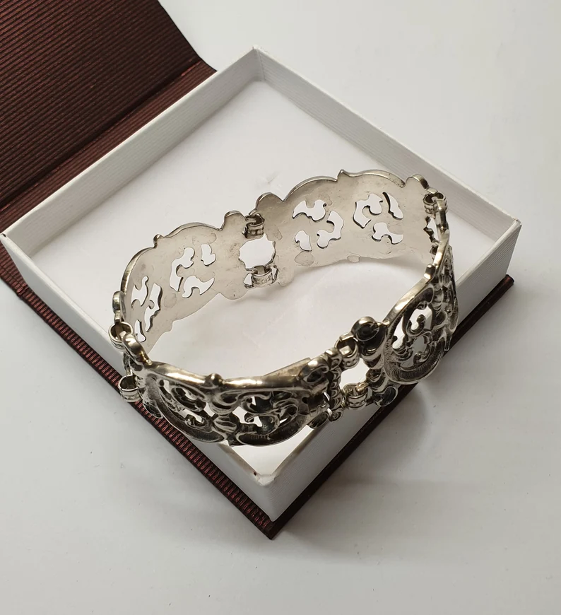 Sehr schönes Silber 800 Trachten-Armband mit dem wundervoll ausgearbeiteten Ornamenten. Hergestellt wurde das Silberarmband in der „Blachian Antik Schmuck Manufaktur“ und zeigt eine ausgesprochen schöne Handarbeit. Das tolle Stück ist massiv gearbeitet. Das Armband befindet sich in einem dem Alter entsprechenden, unbeschädigten Zustand und verfügt über eine Steckschließe.