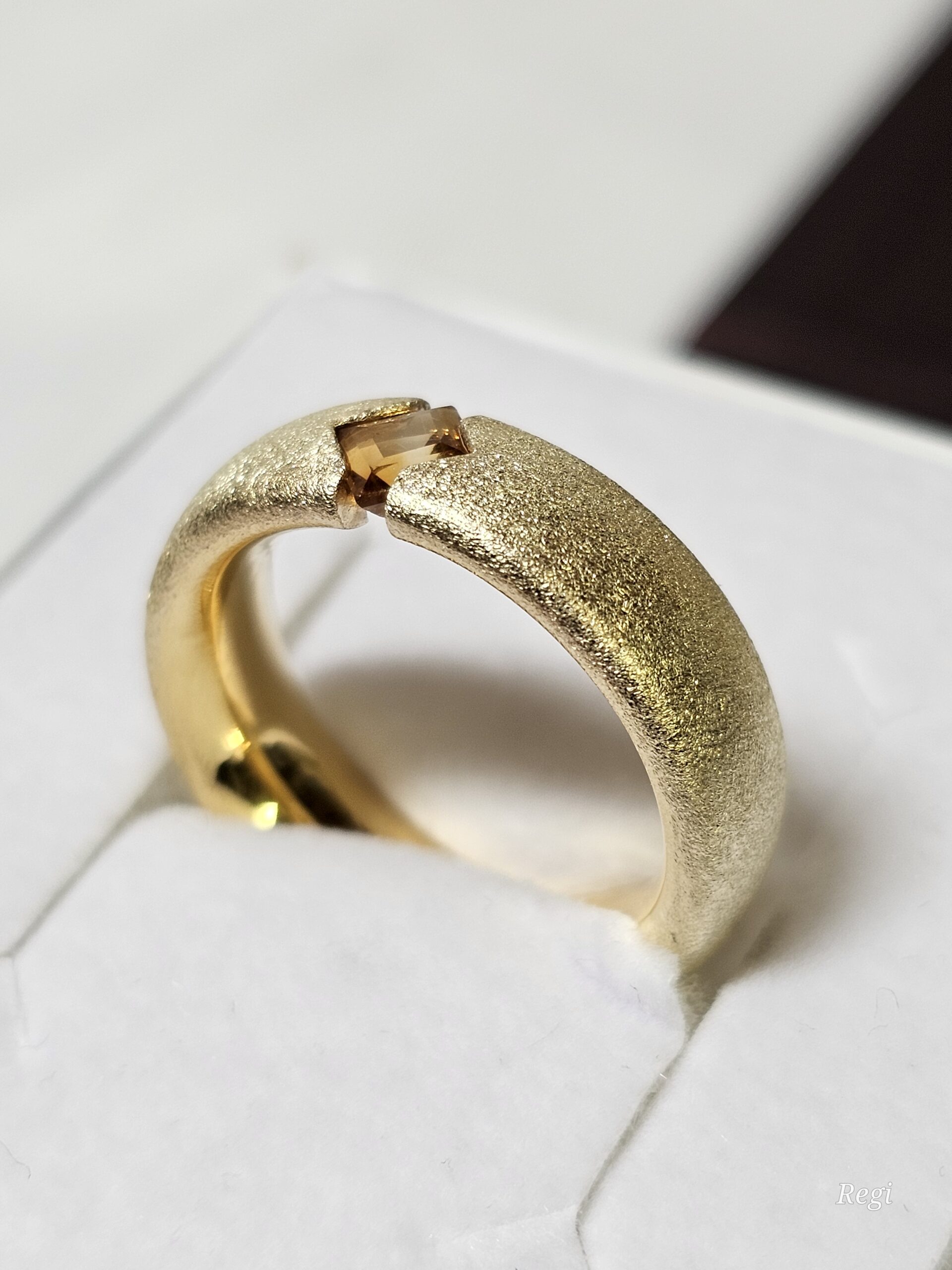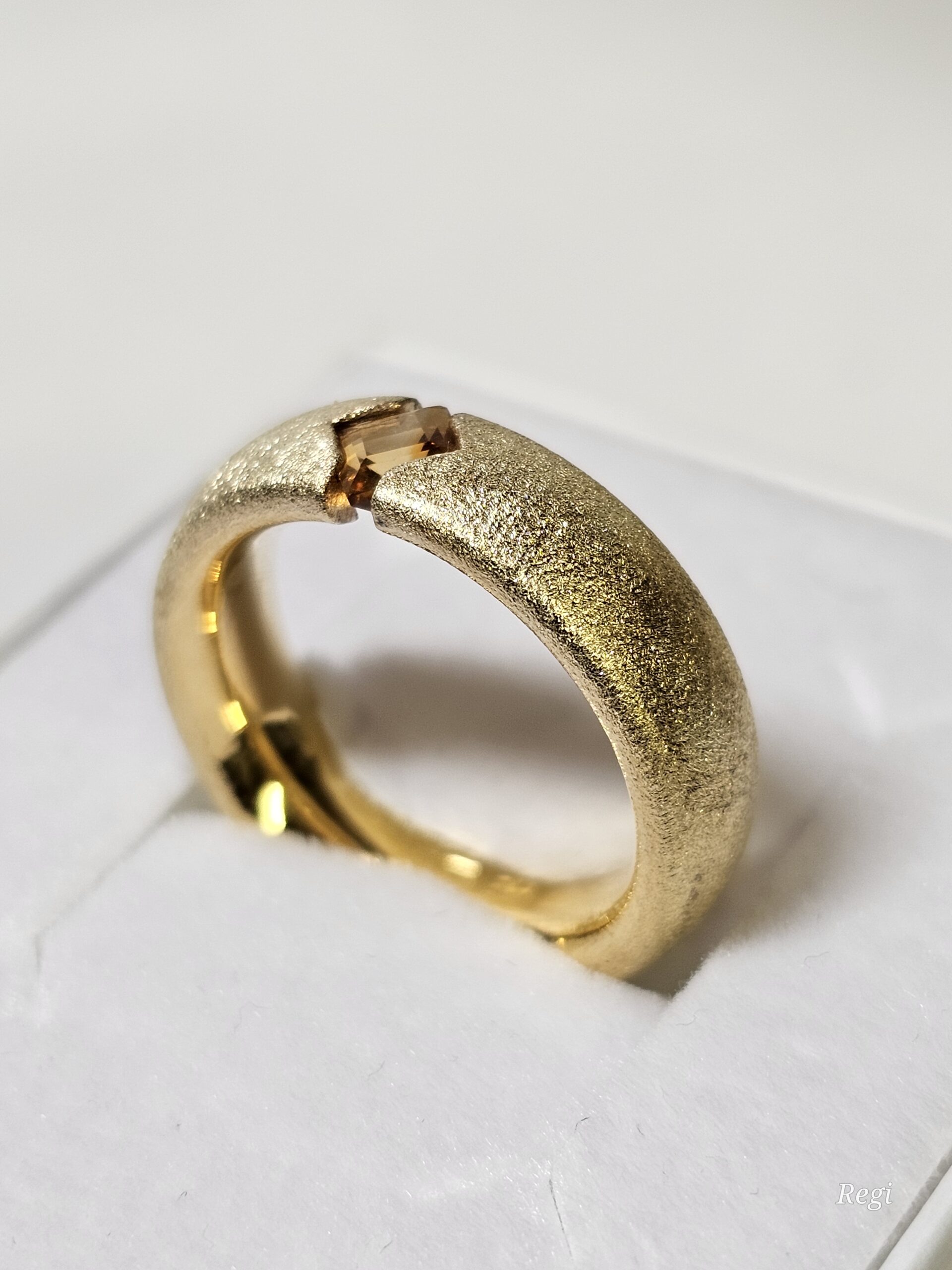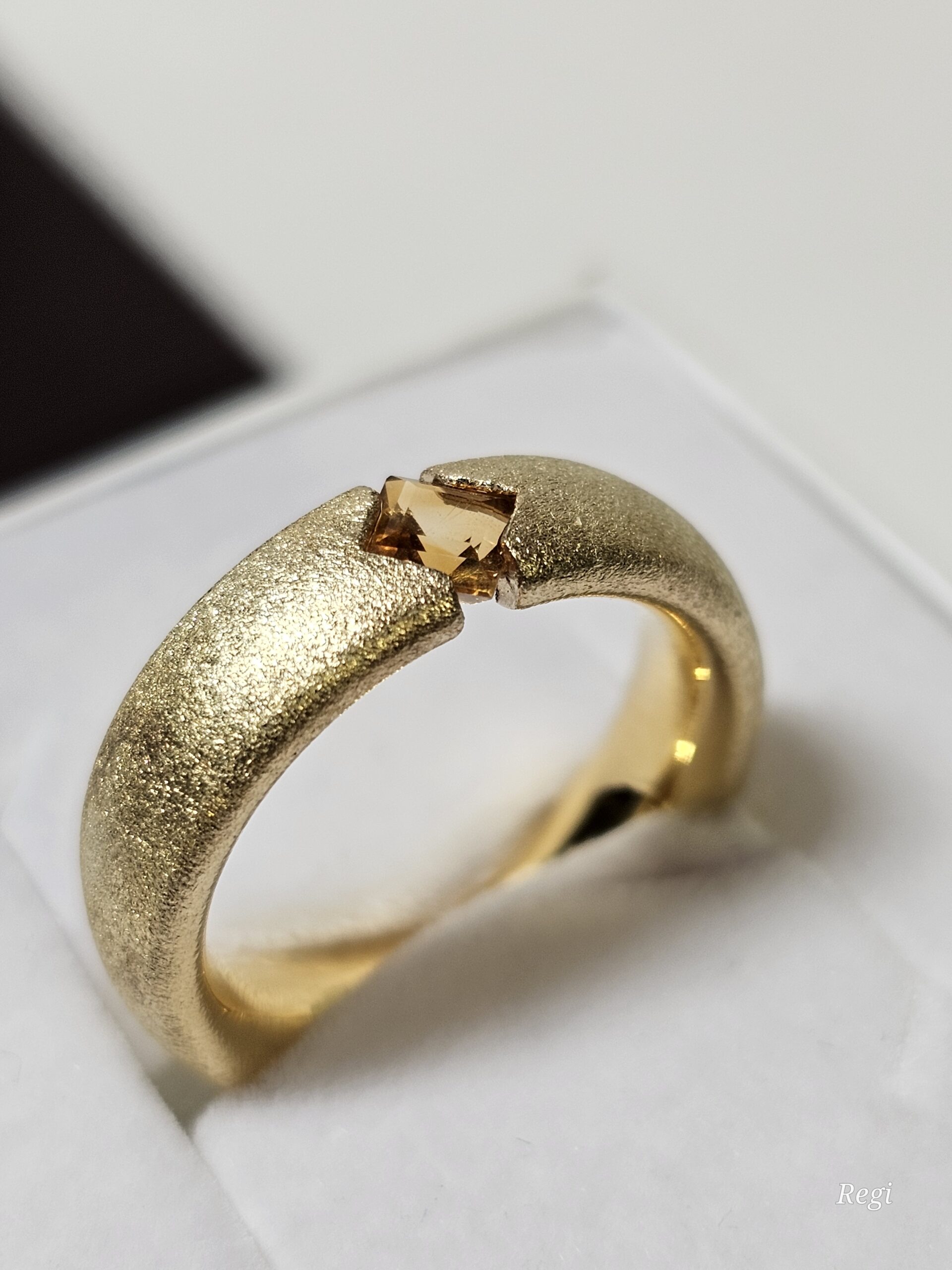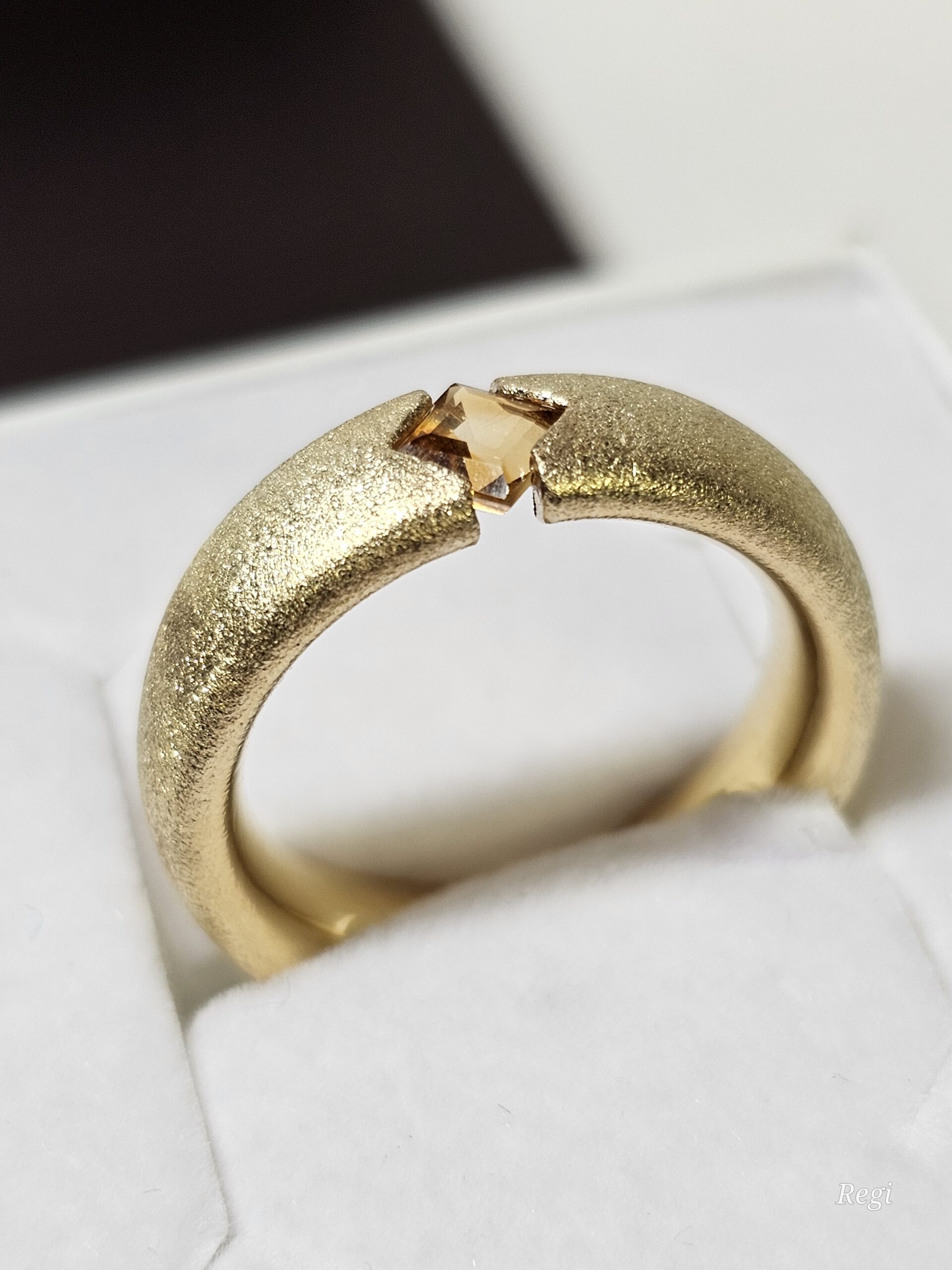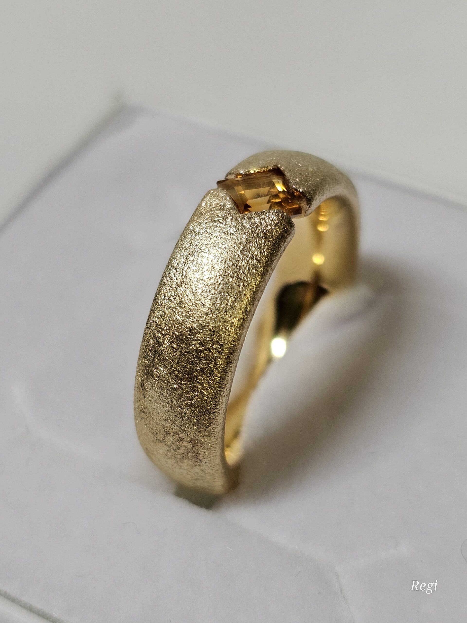 Schöner Silberring Silber 925 vergoldet mit einem tollen Goldtopas. Außen matt und innen glänzend gearbeitet. Wunderschön!
