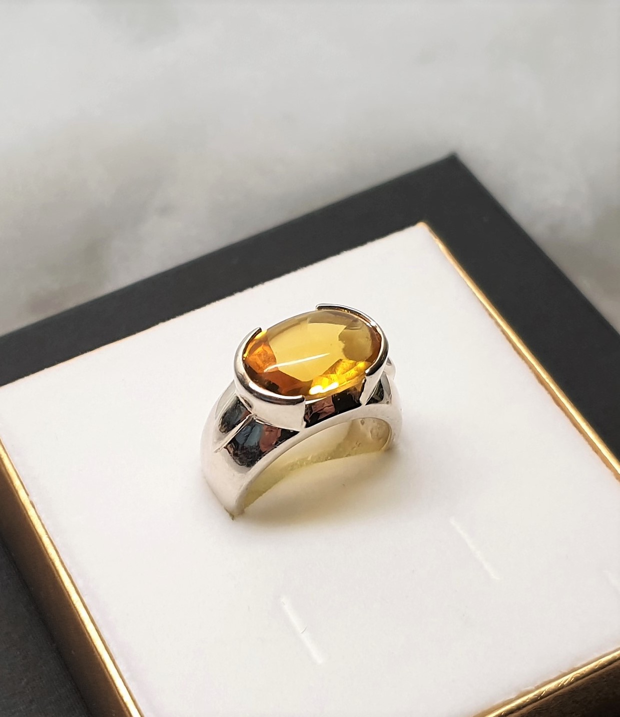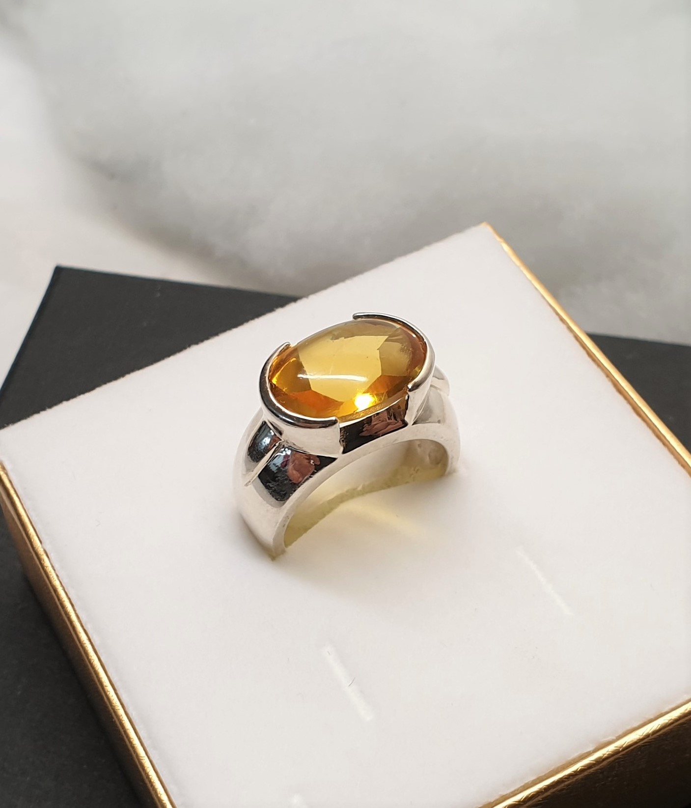 Sehr schöner Ring aus Silber 925. Elegantes Design mit einen Topas/Goldtopas im Farbton gelb-orange.