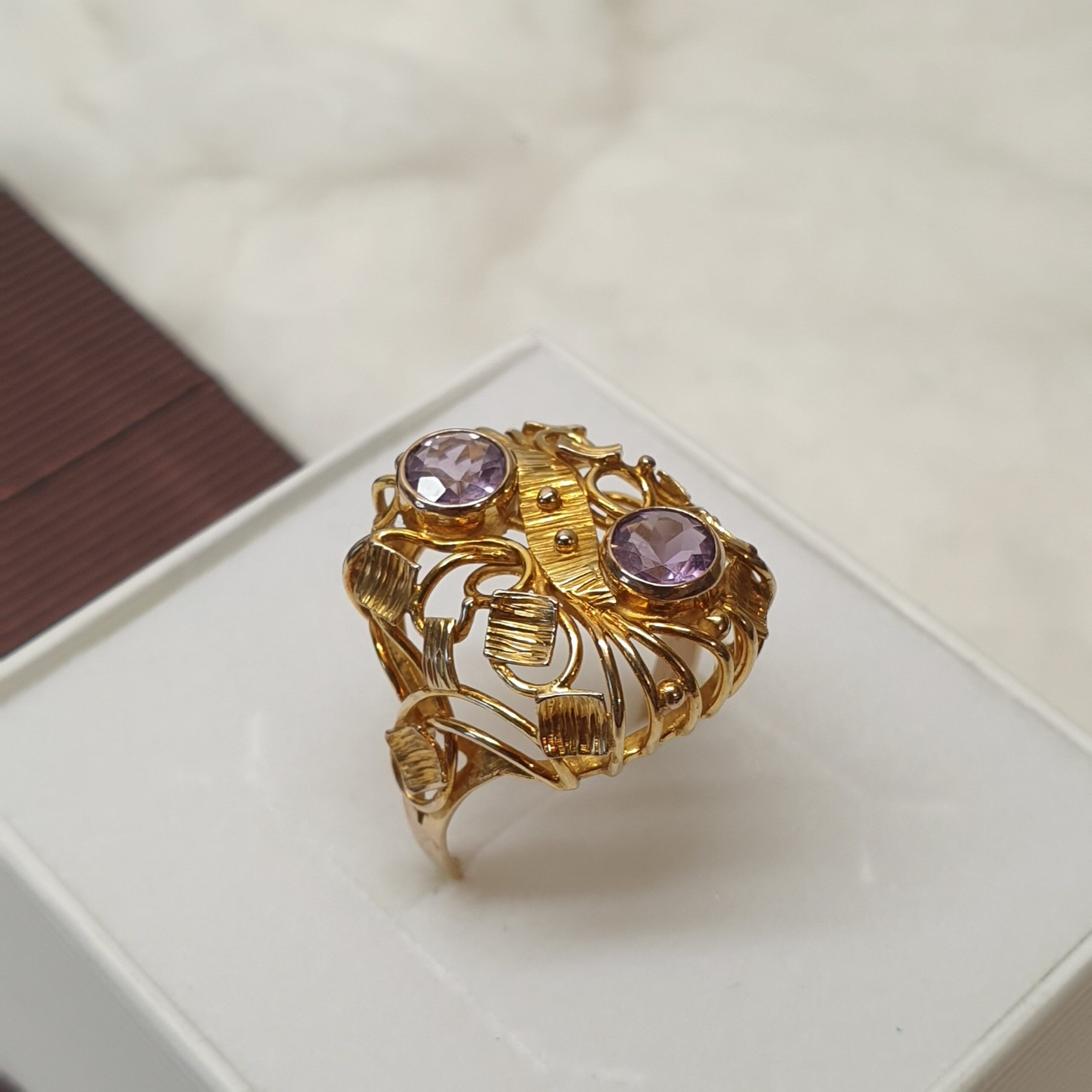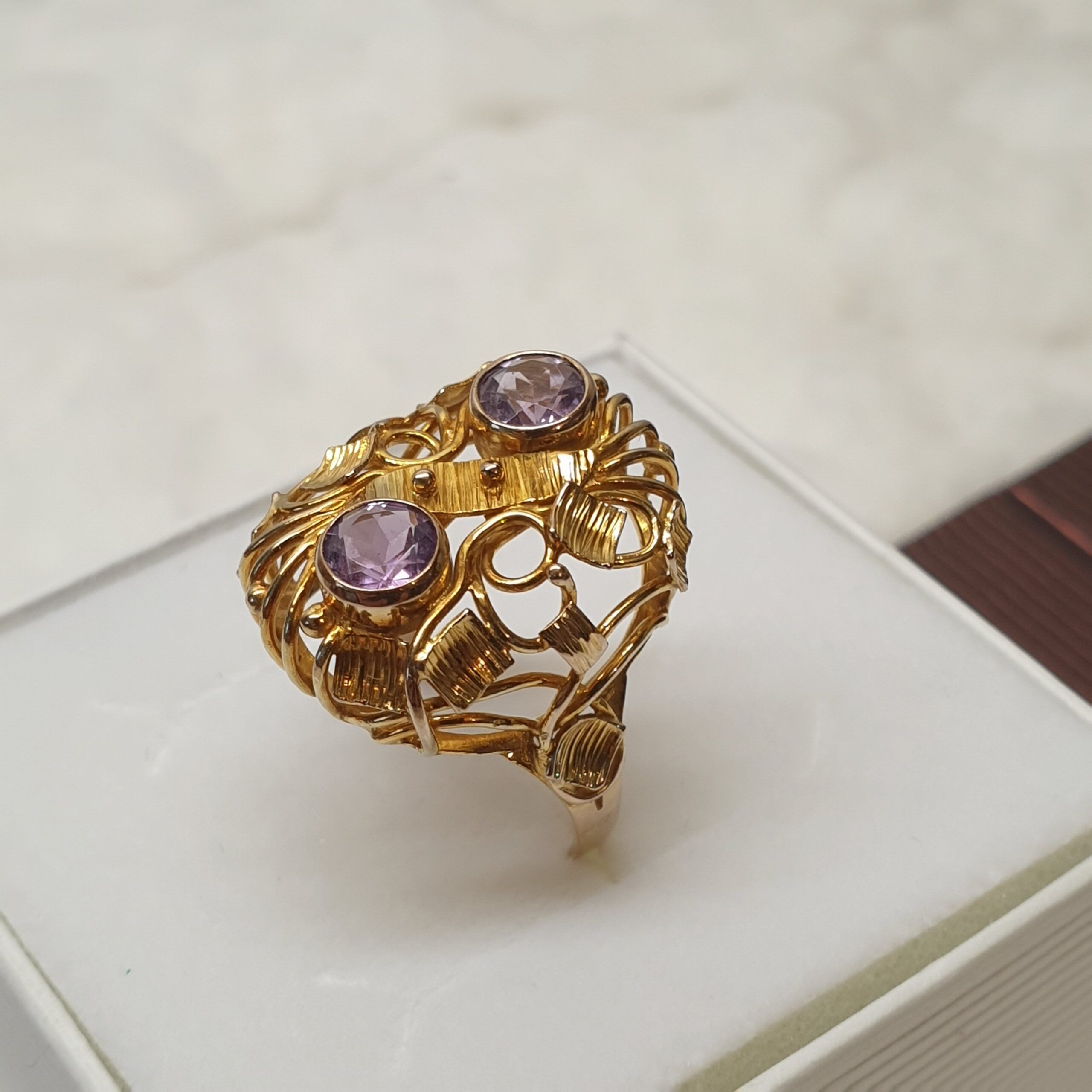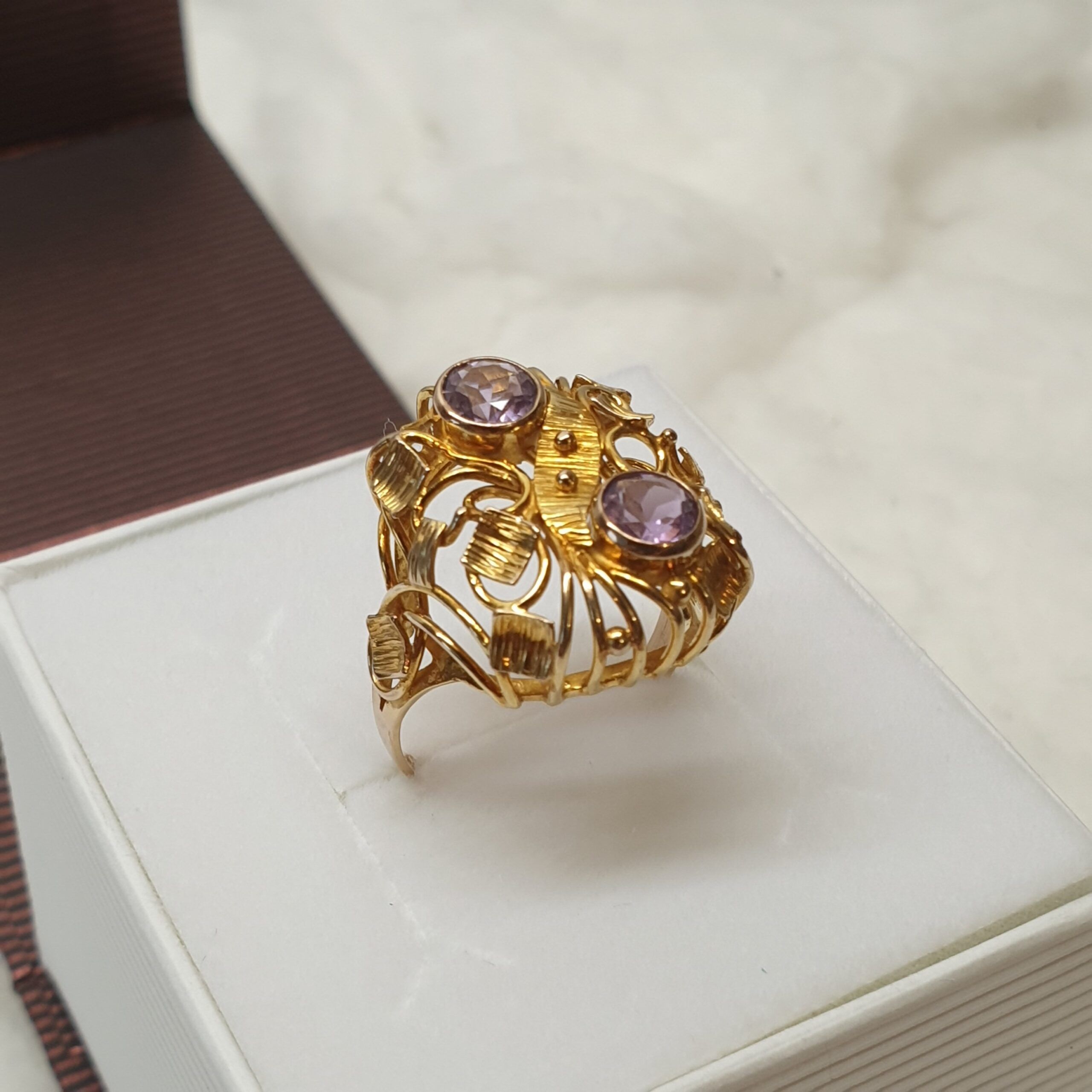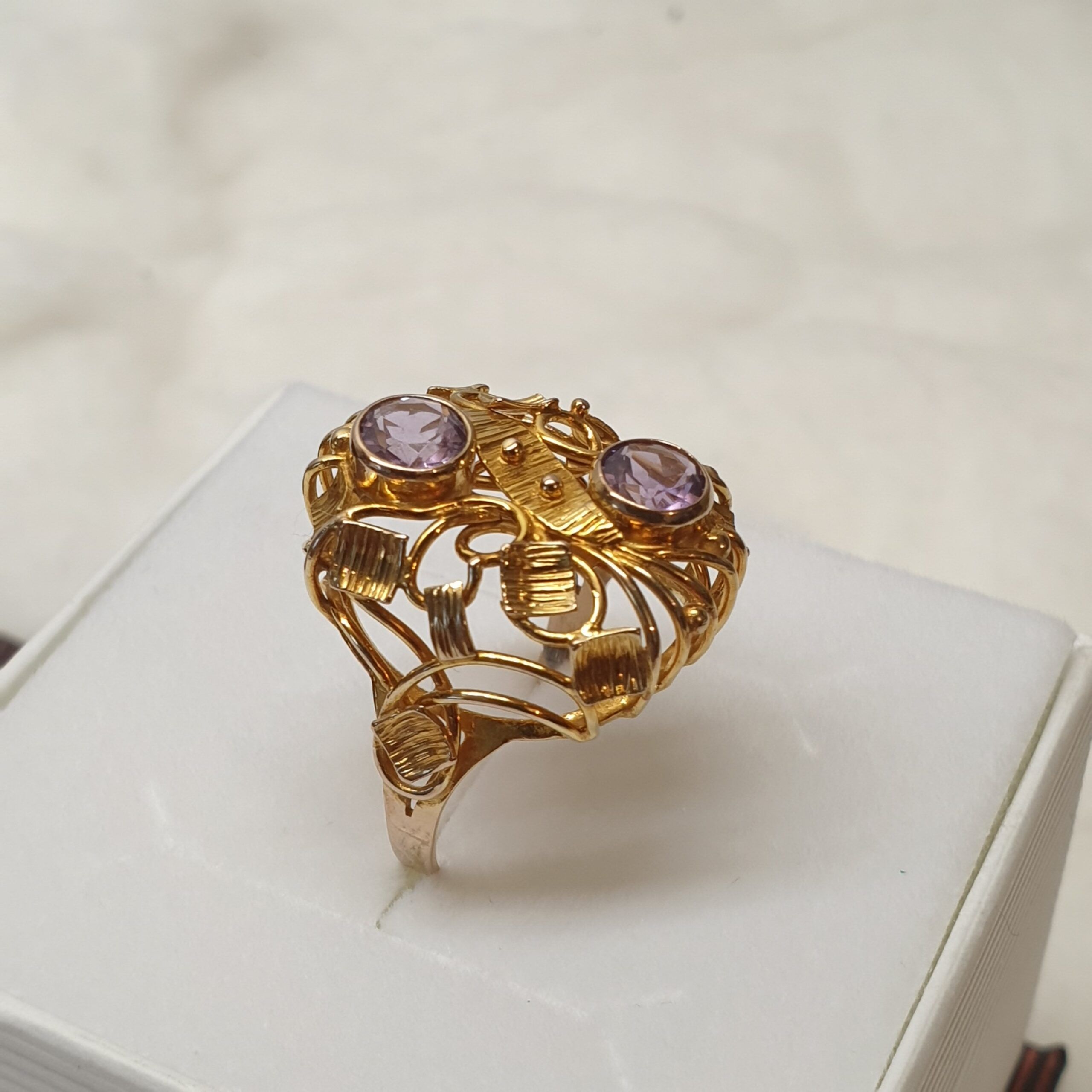 Nostalgischer Ring Gold 333. Toll designter Ringkopf, mit 2 Stck. Amethyst-Steinen geschmückt.