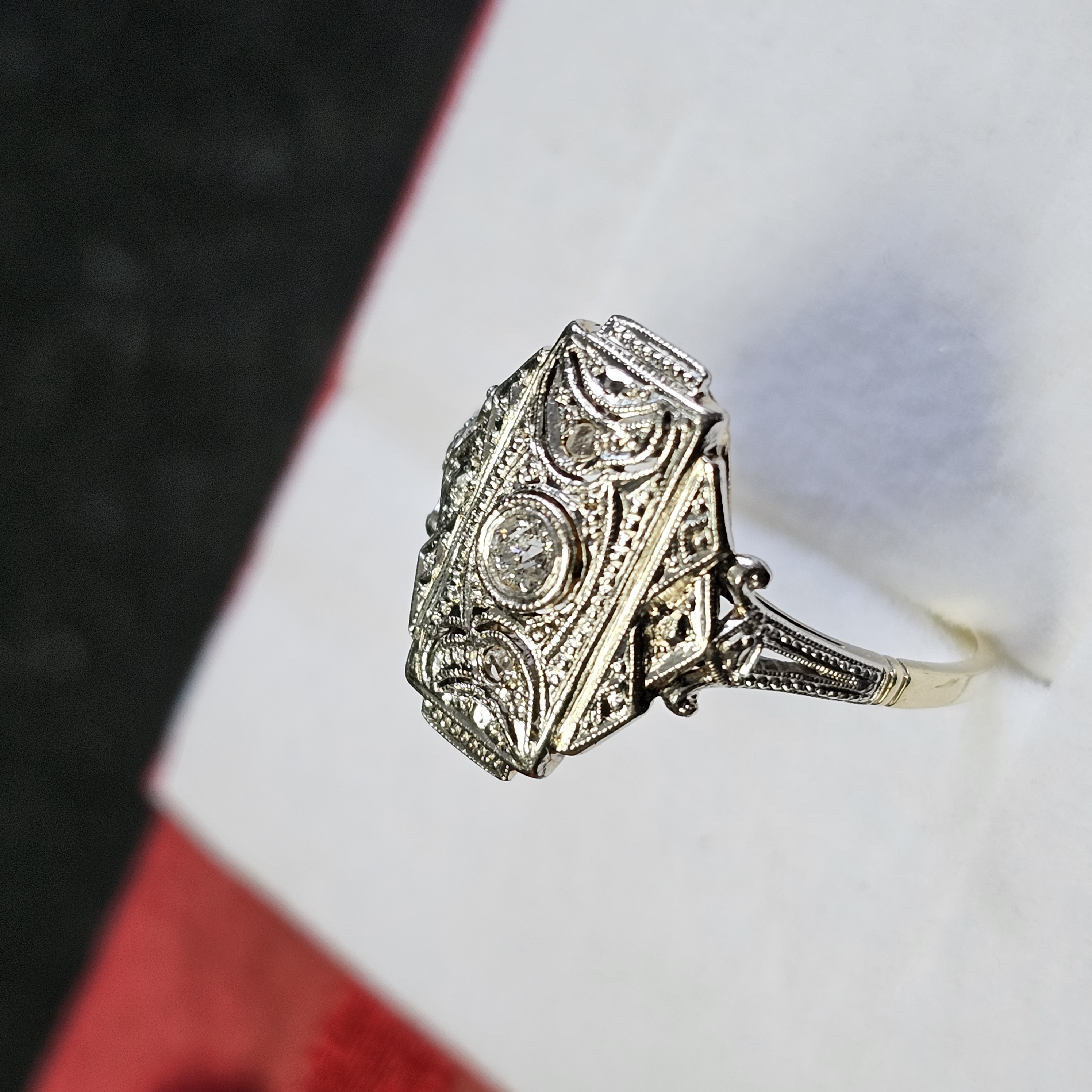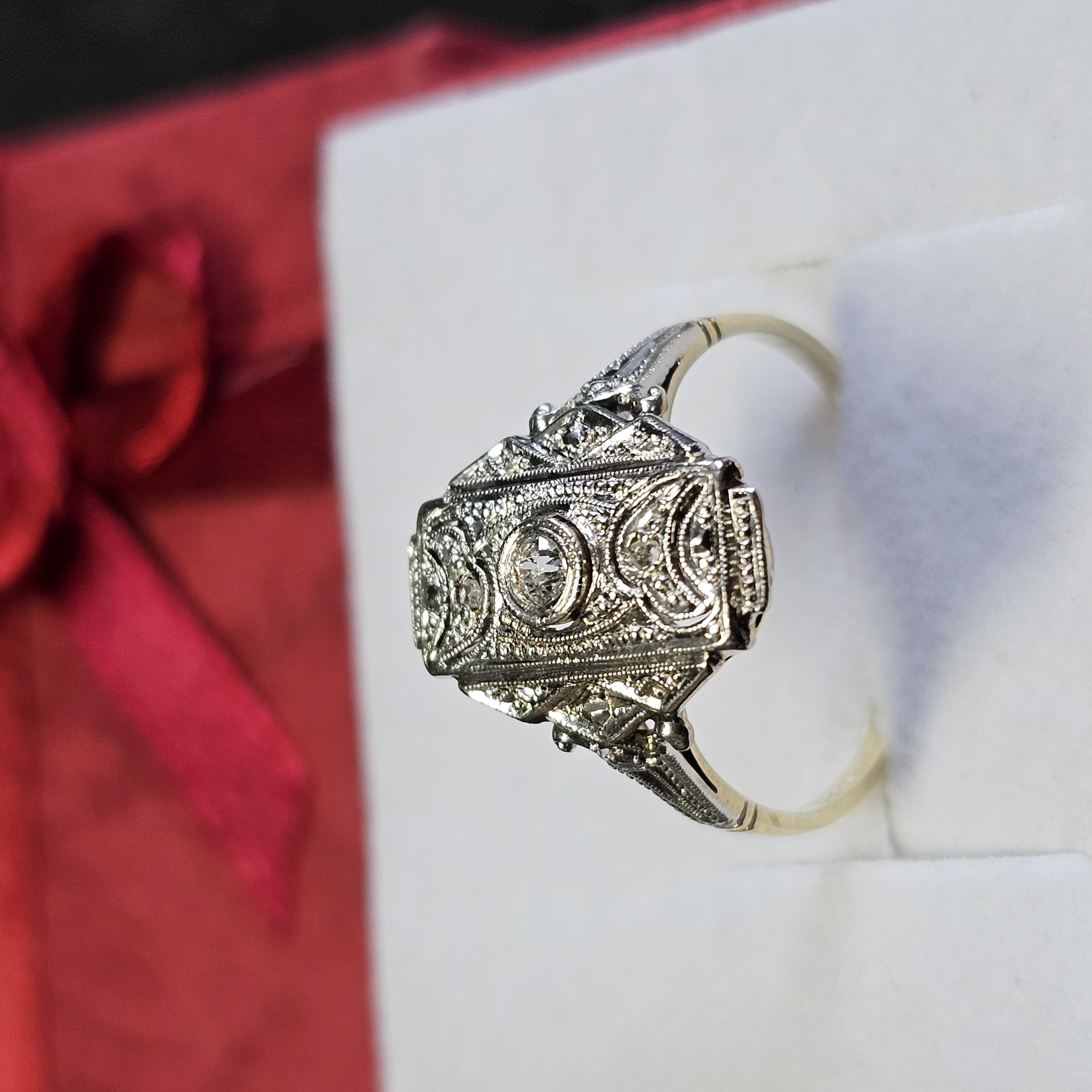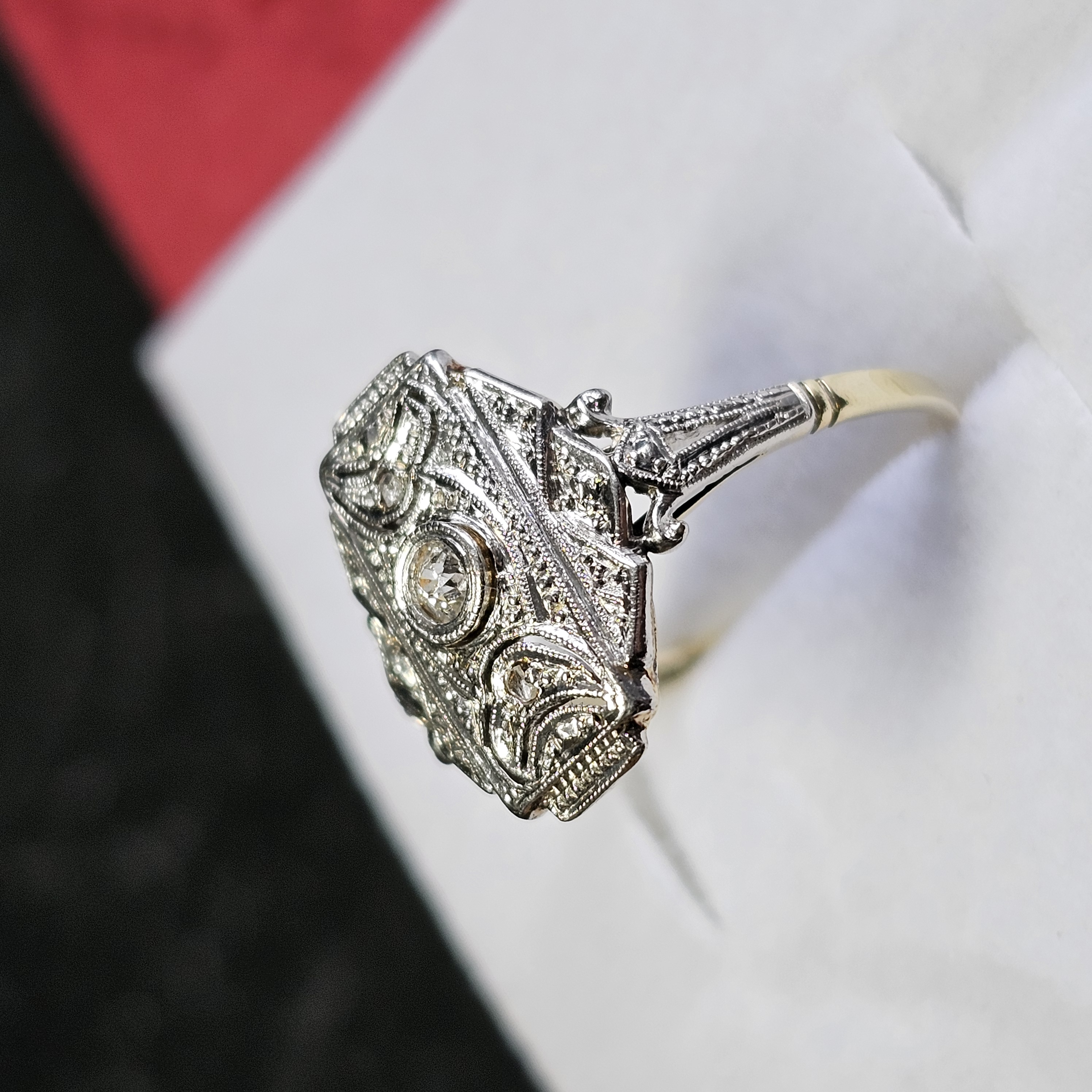 17,4 mm Art Deco Ring Gold 585 teilplatiniert Diamant Altschliff Shabby Vintage Eleganz GR419