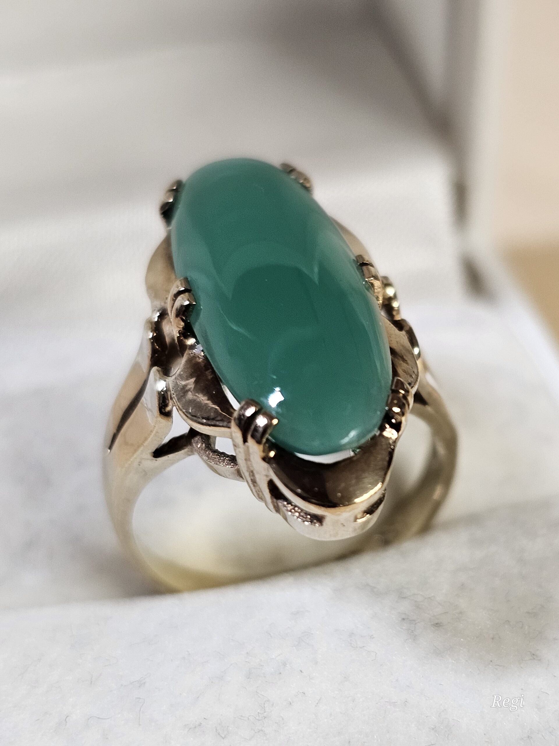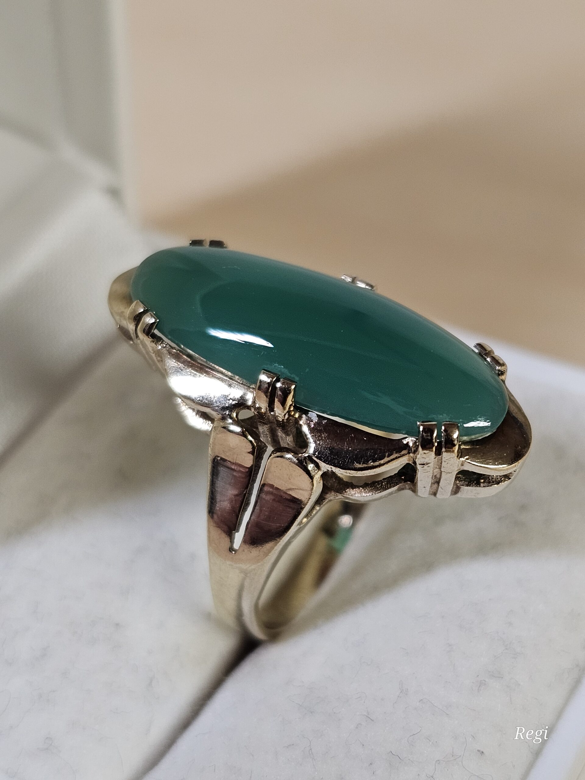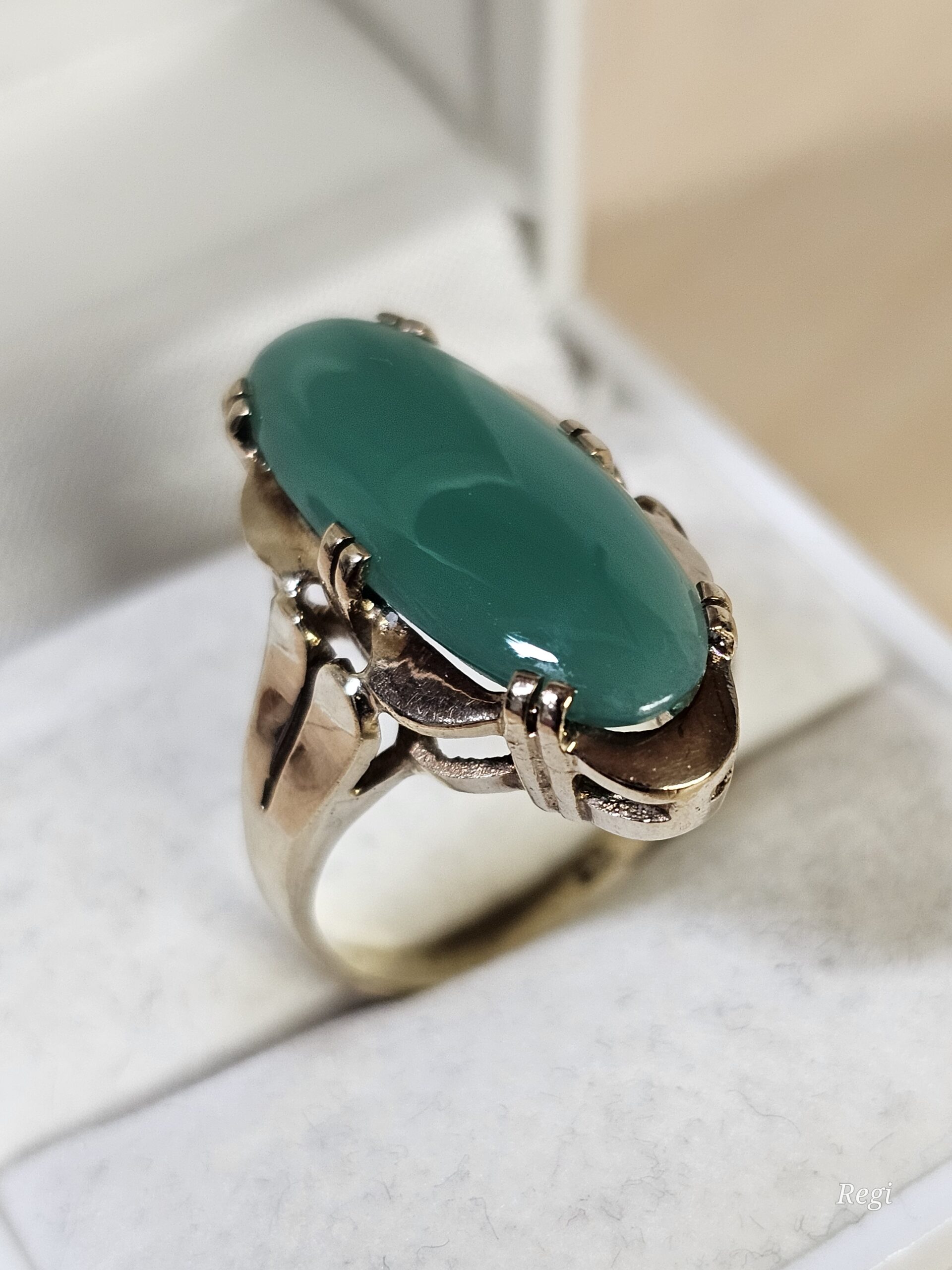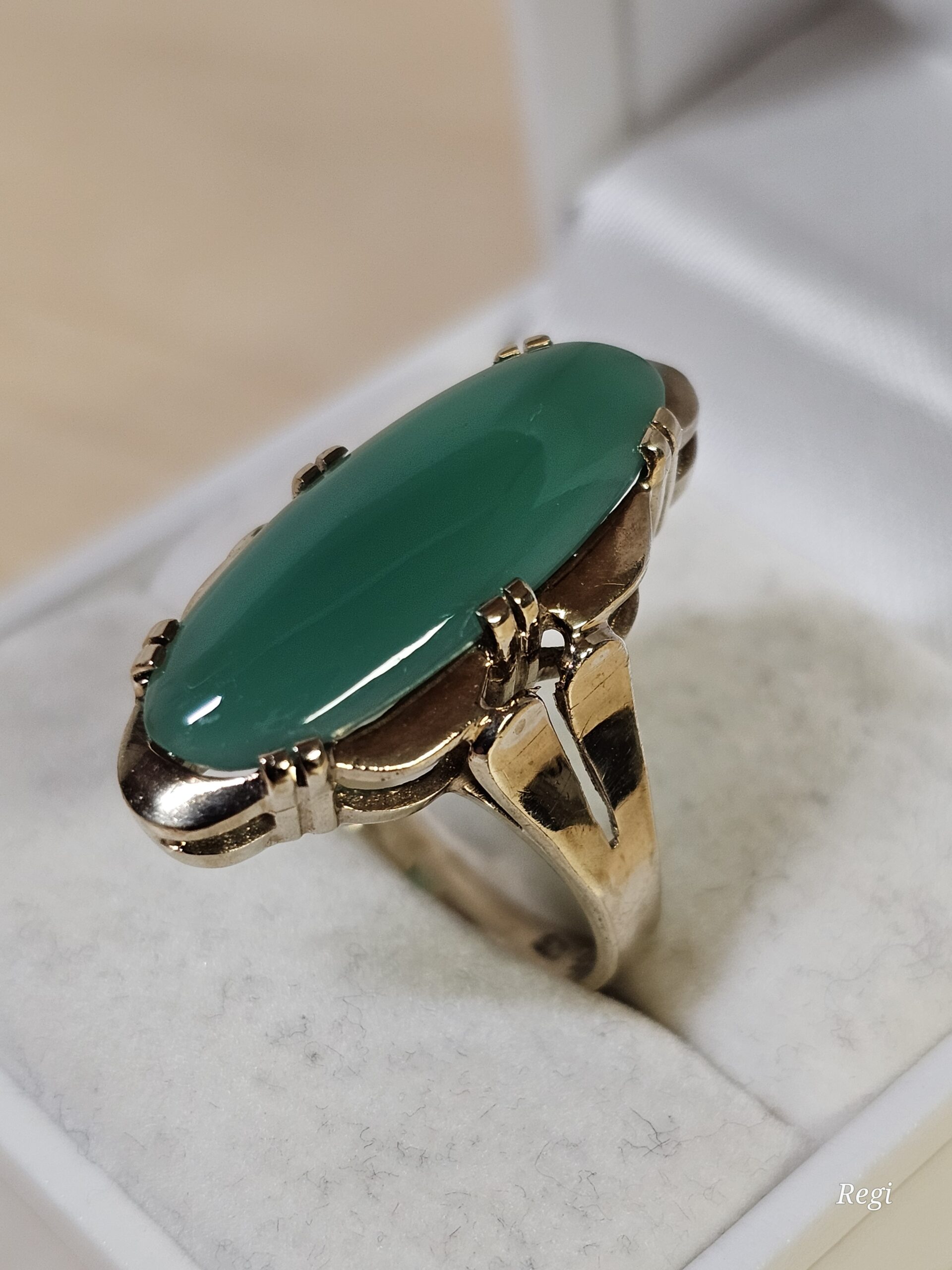 Hübscher Vintage-Ring, sehr schöne Verarbeitung aus Gold 333, verziert mit einem tollen Chrysopras.