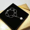Hübsches Armband mit schönen großen Gliedern. Mittig ist ein Anhänger angebracht der mit einer großen, weißen Perle und kleinen lila Perlchen verziert ist. Bezaubernd schön!