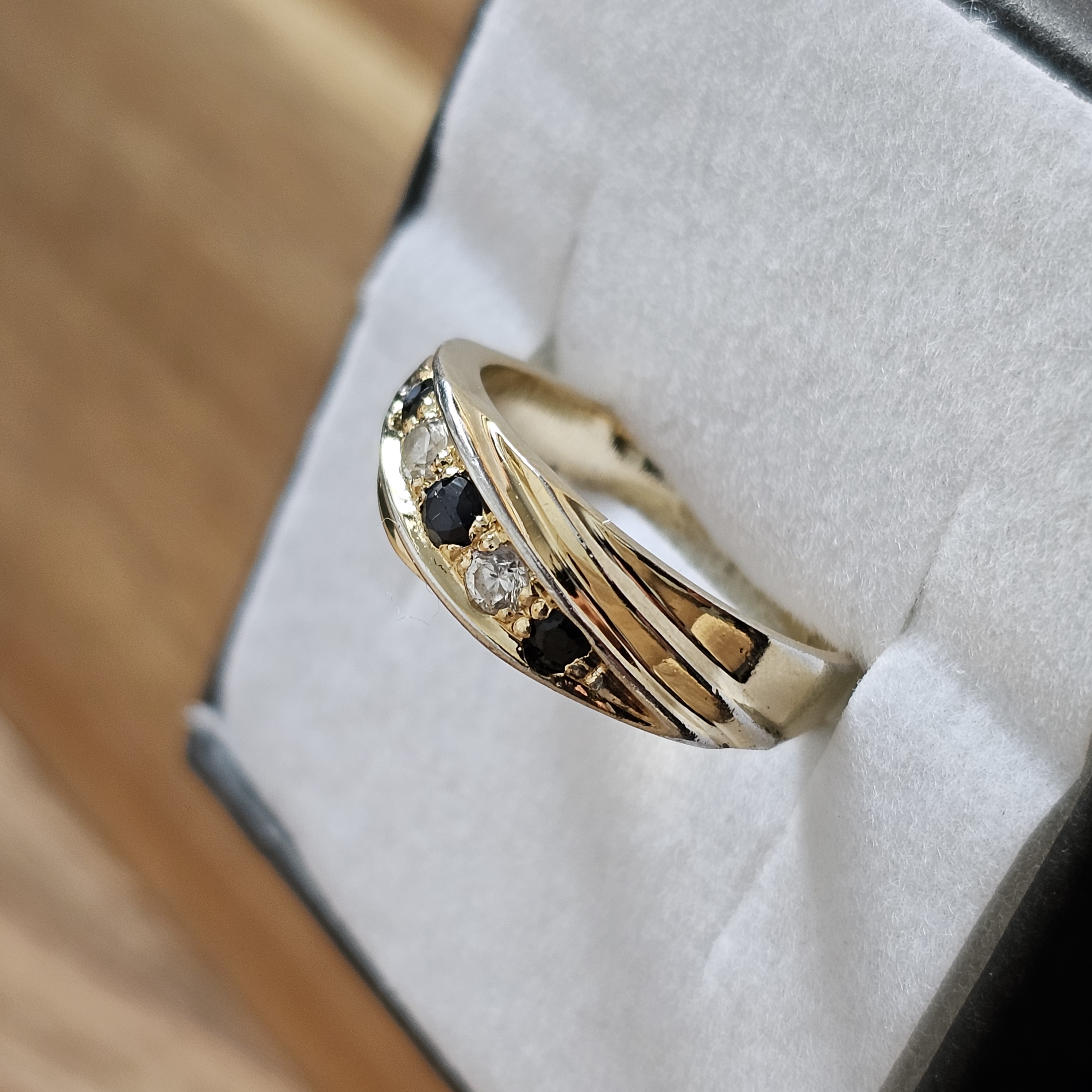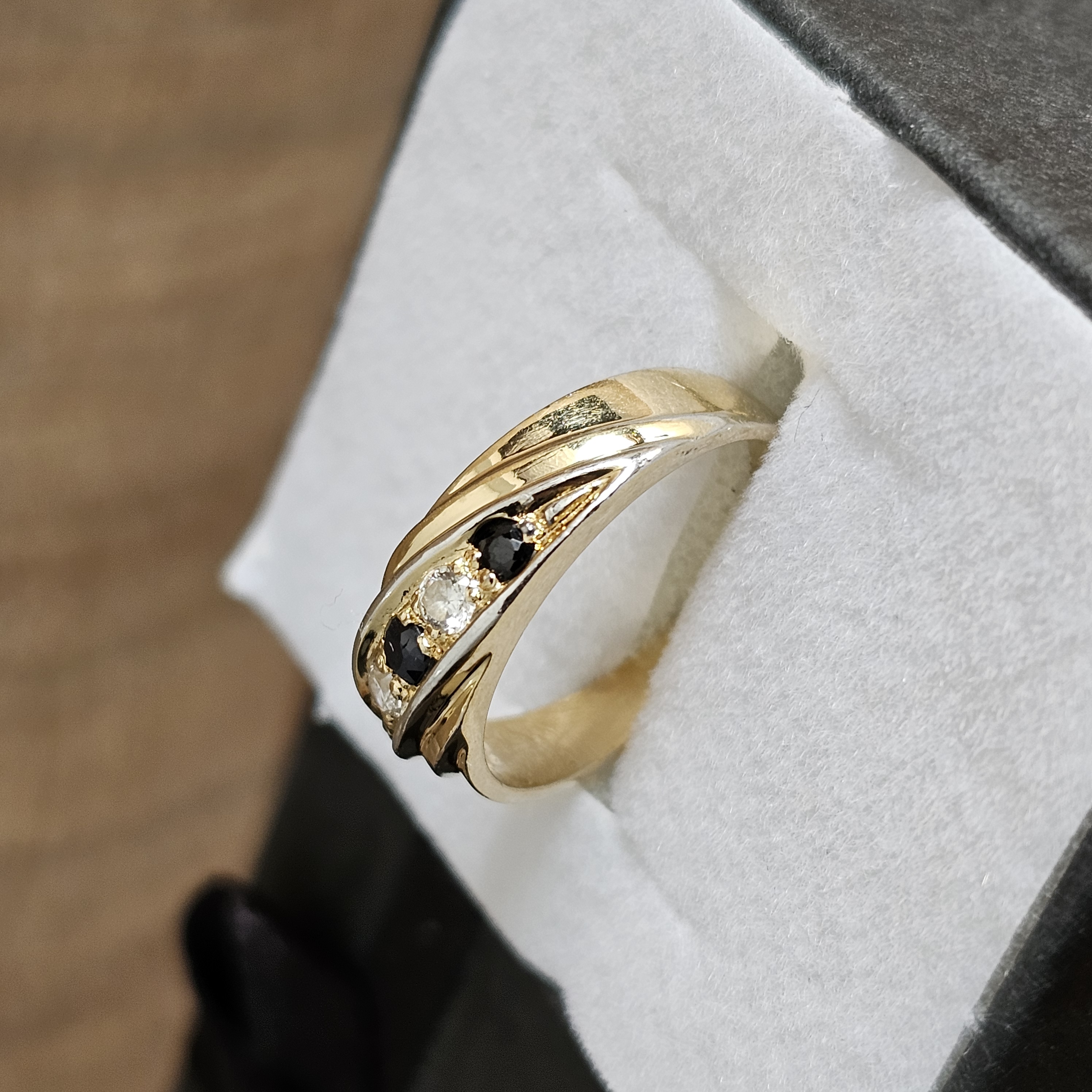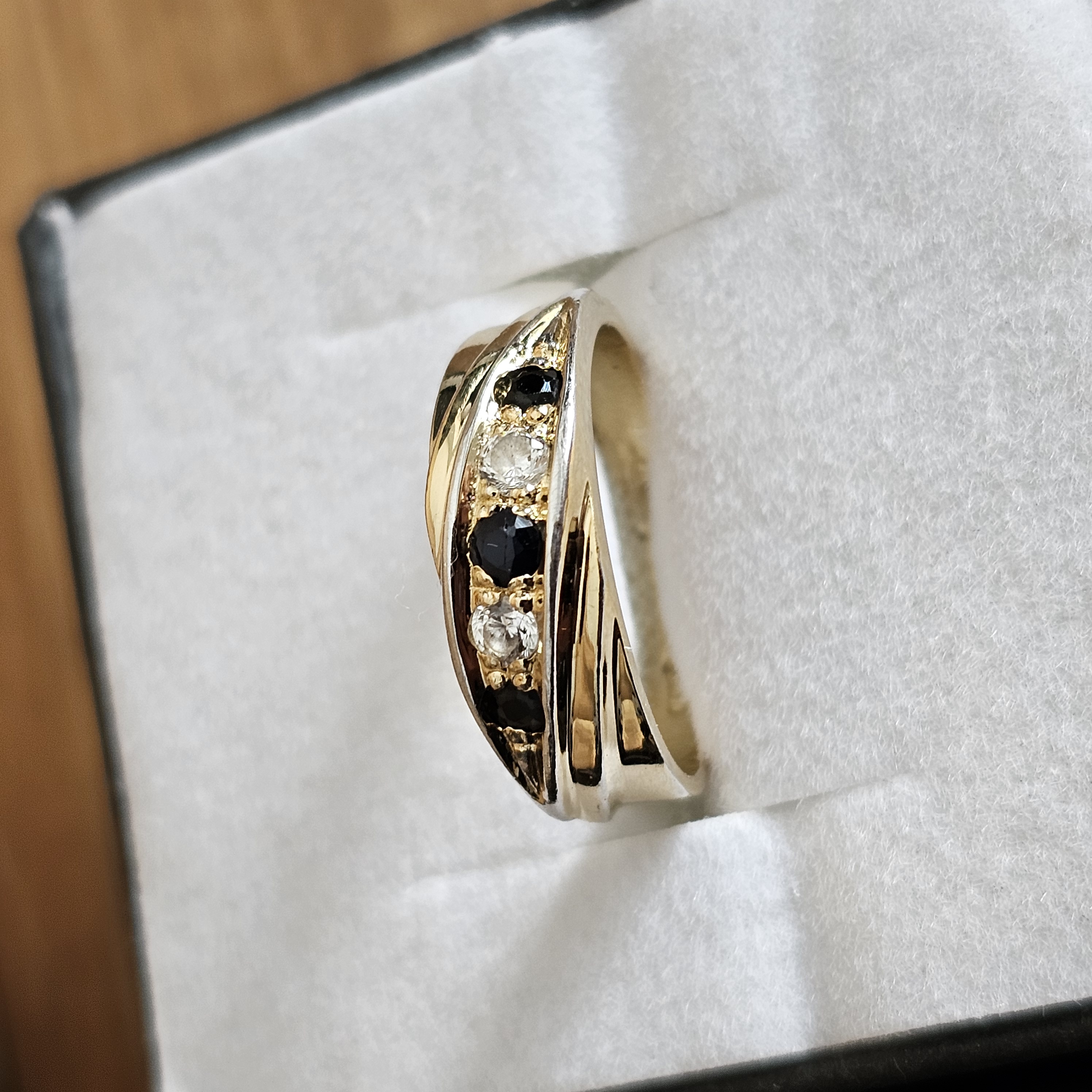 Silberring Silber 800 teilvergoldet mit 3 Stck. Saphire und 2 Stck. klaren Kristallsteinchen geschmückt. Ein elegantes Schmuckstück.