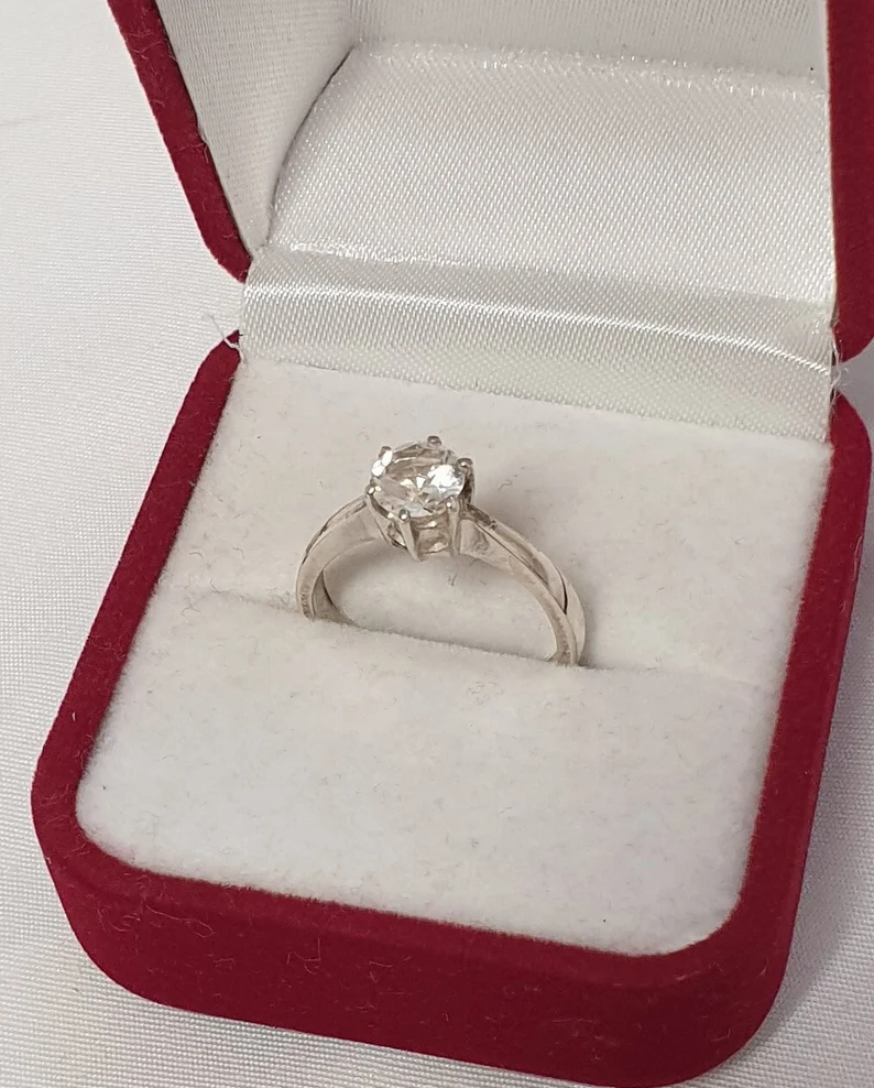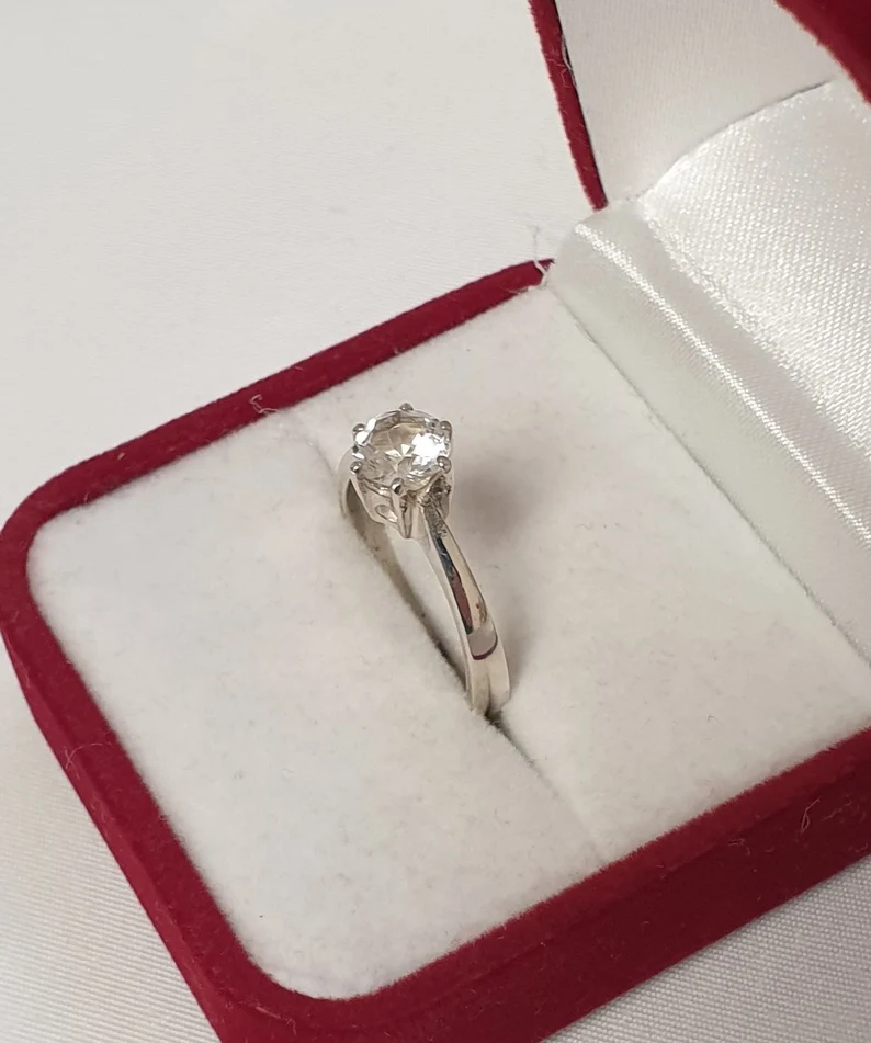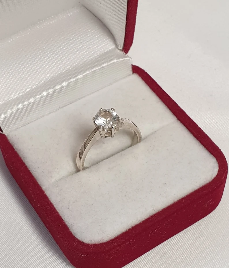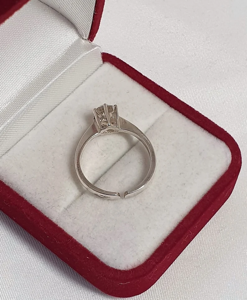 Ein toller Ring Silber 925 mit einem klaren Kristallstein. Die Ringschiene ist unten offen.