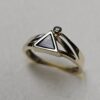 Edler Ring aus Gold 333 mit einem Lapislazuli Lagenstein in Form eines Dreiecks besetzt und mit einem kleinen runden klaren Kristallsteinchen geschmückt.