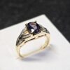17,7 mm Eleganter Vintage Ring Gold 750 Turmalin Farbton Petrol & kleinste Diamantsteinchen selten rar GR413