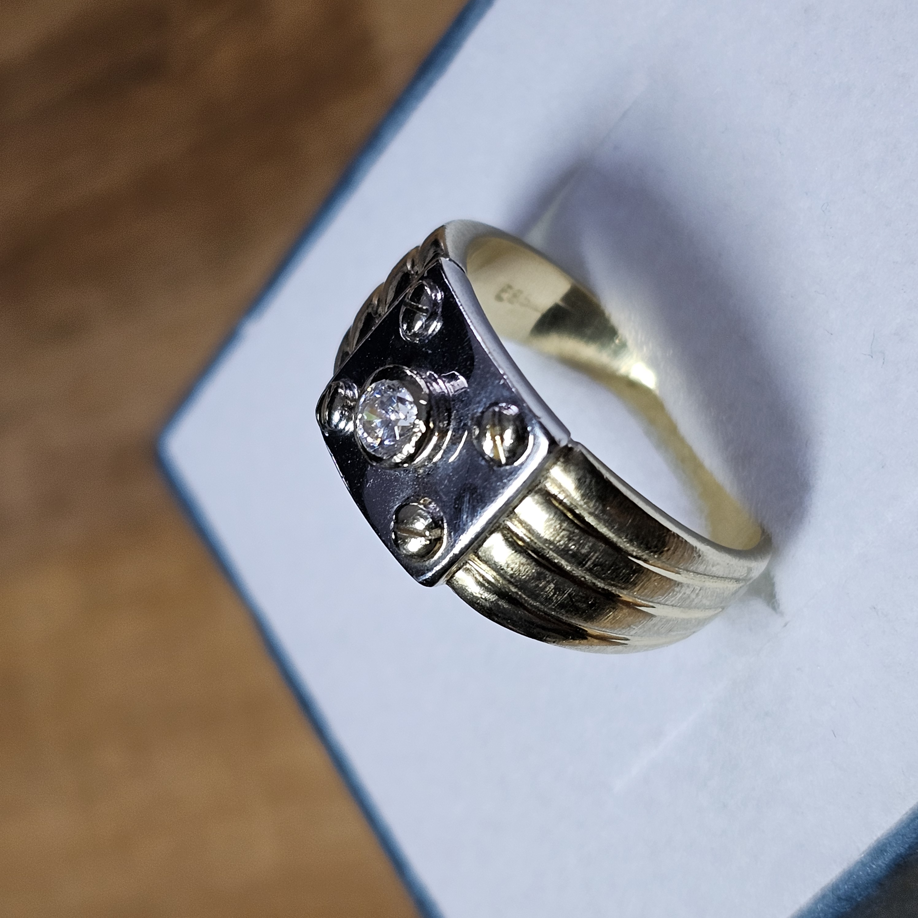 17,7 mm Nostalgischer Ring Gold 585 teilplatiniert Topas weiß klar Design Vintage elegant GR309