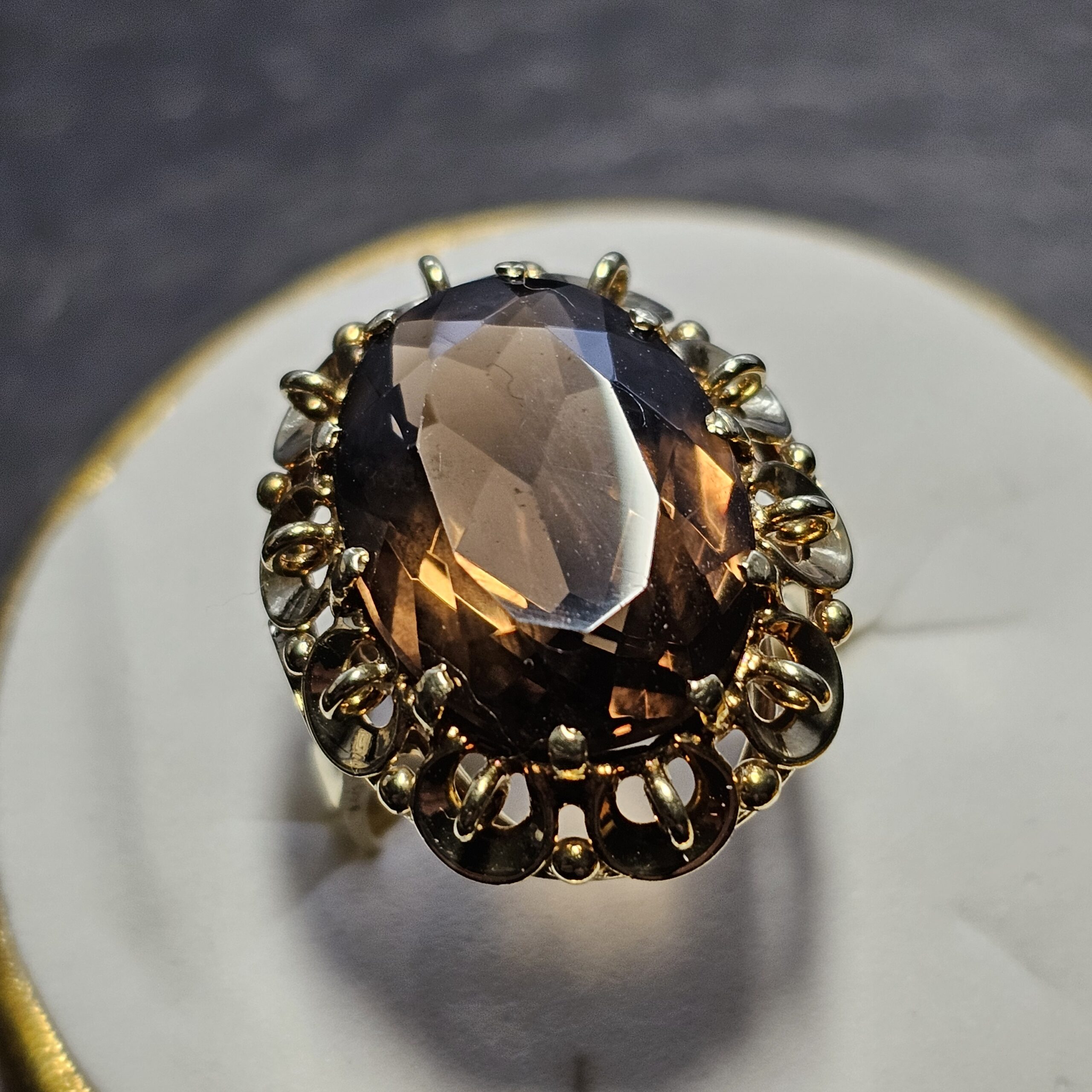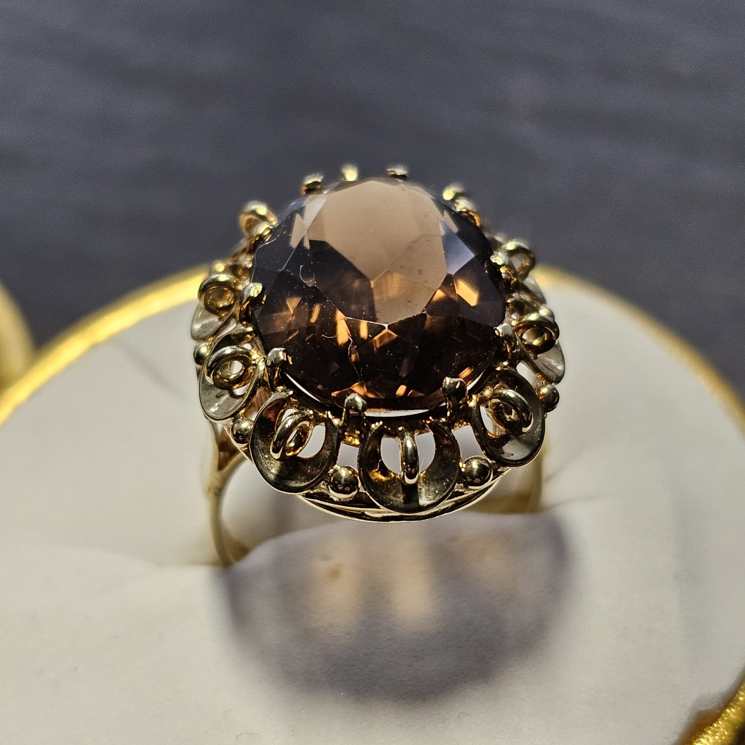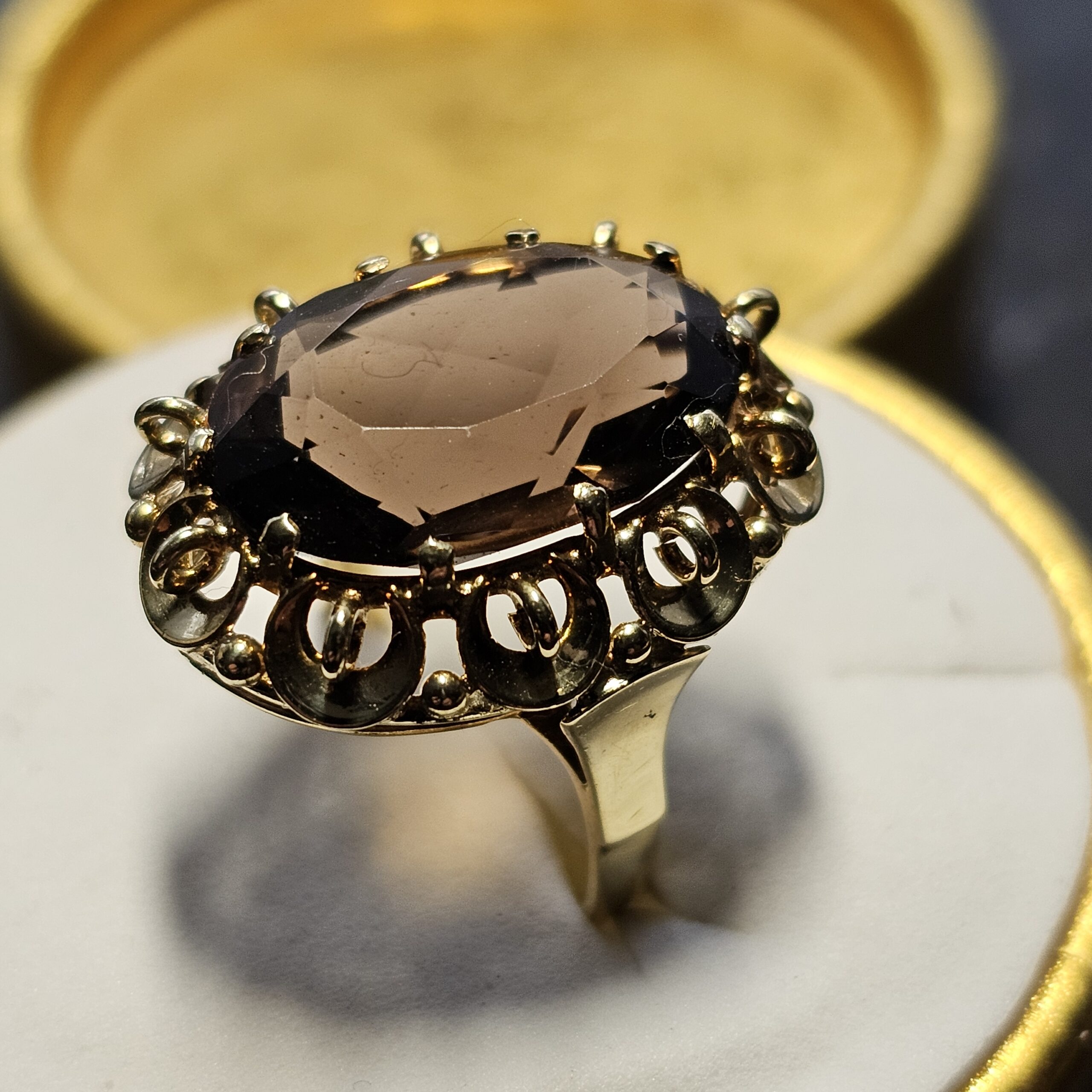 Schöner eleganter Vintage-Goldring mit Rauchquarz aus Gold 585.