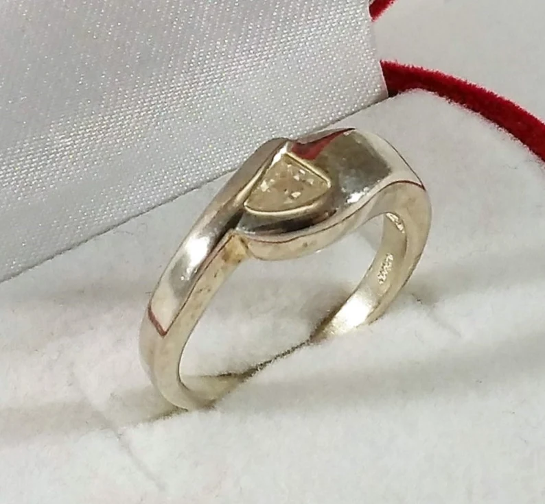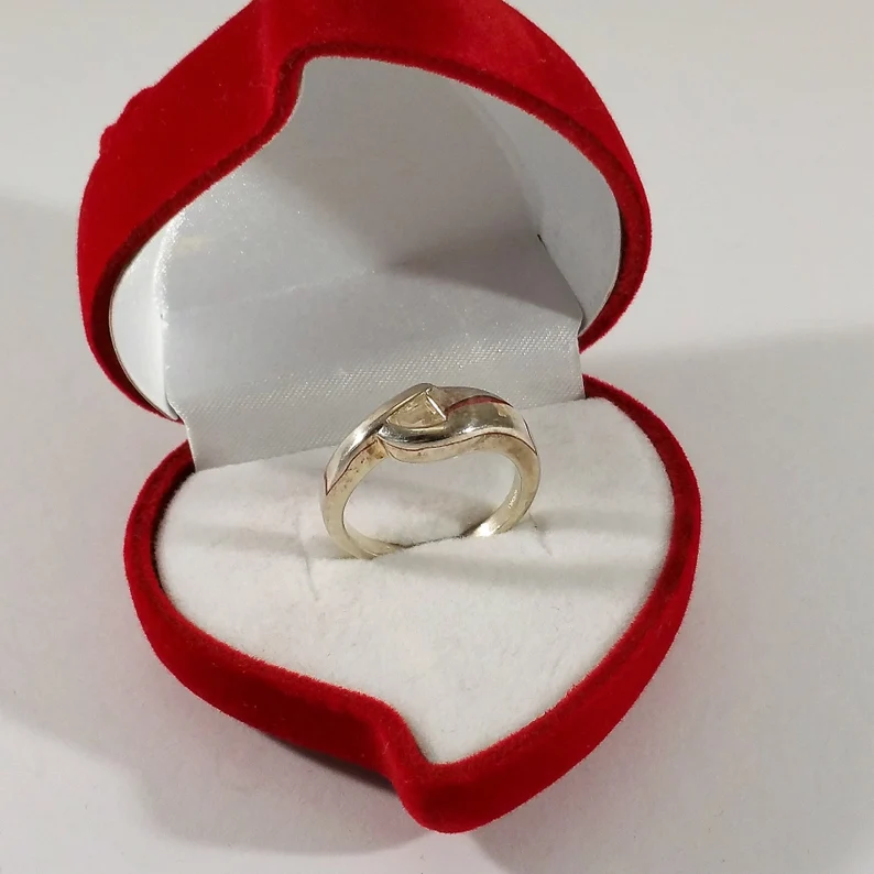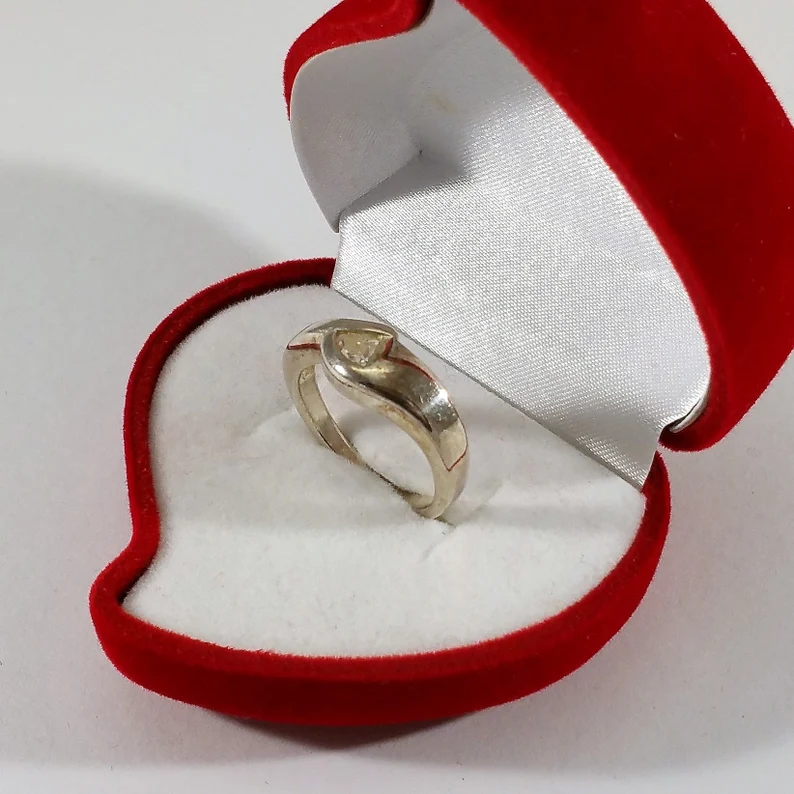Schöner Ring Silber 925, auf den Ringkopf ist ein dreieckiger Kristallstein gesetzt.