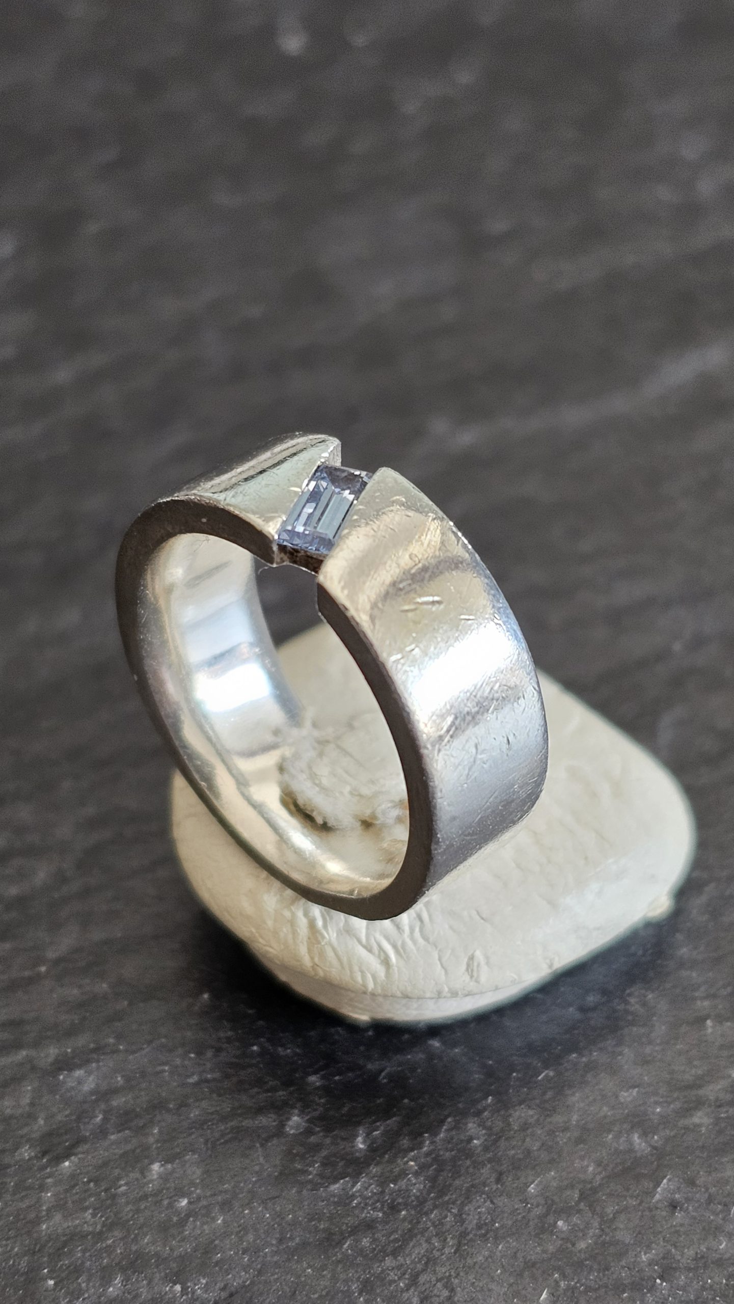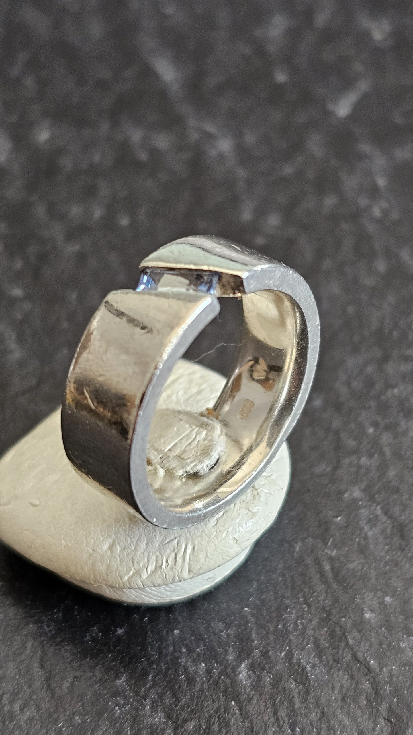 Der Ring hat eine massive Ringschiene und ist aus Silber 925 gefertigt.