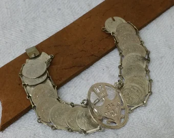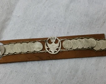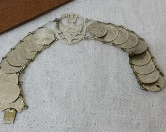 18 cm Jugendstil Armband Silber Münzen Münzarmband 5 Kopeken Russland Wappen Buchstaben Inschrift 1916 Unikat Rarität antik Silberschmiede Kunst SA100
