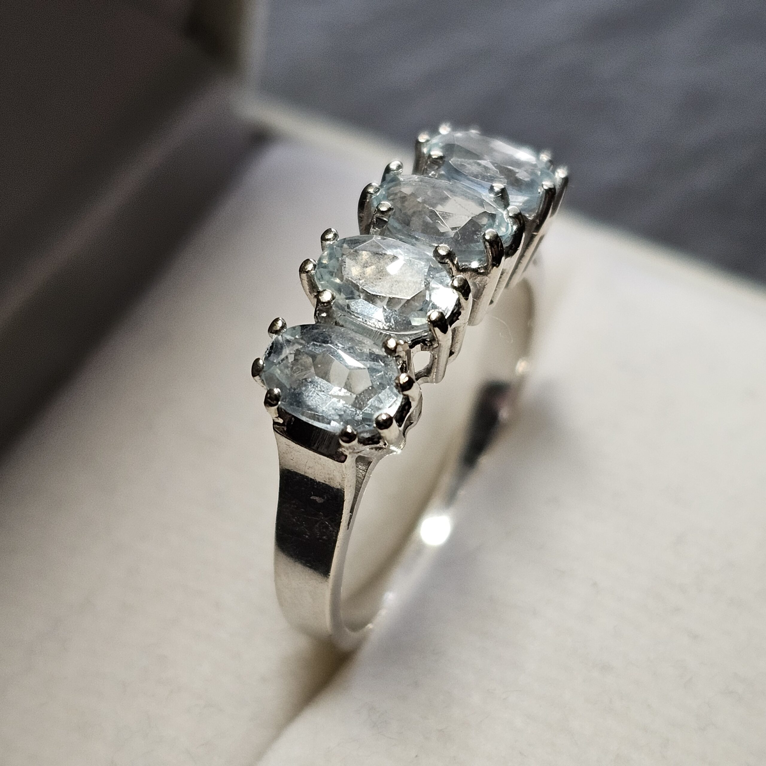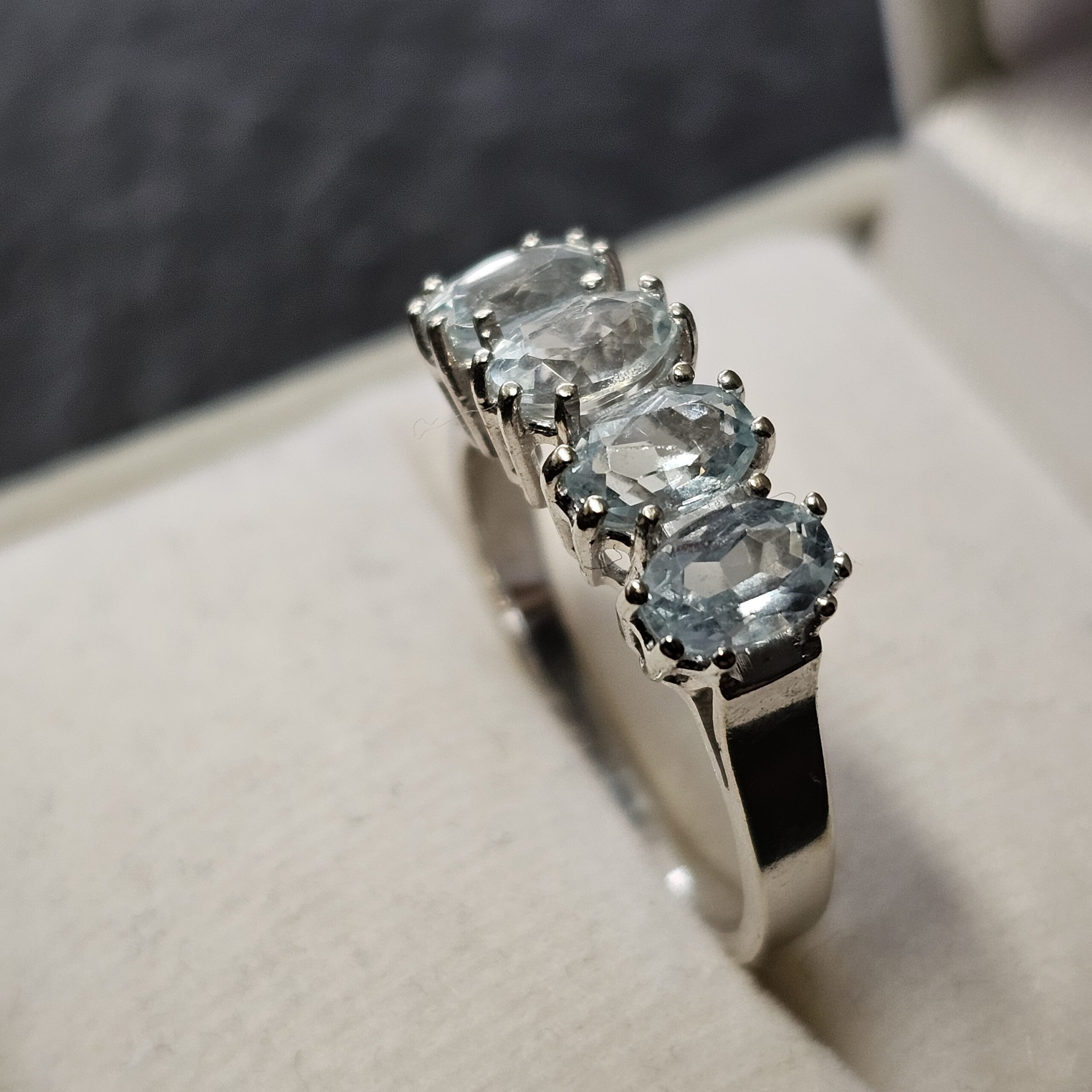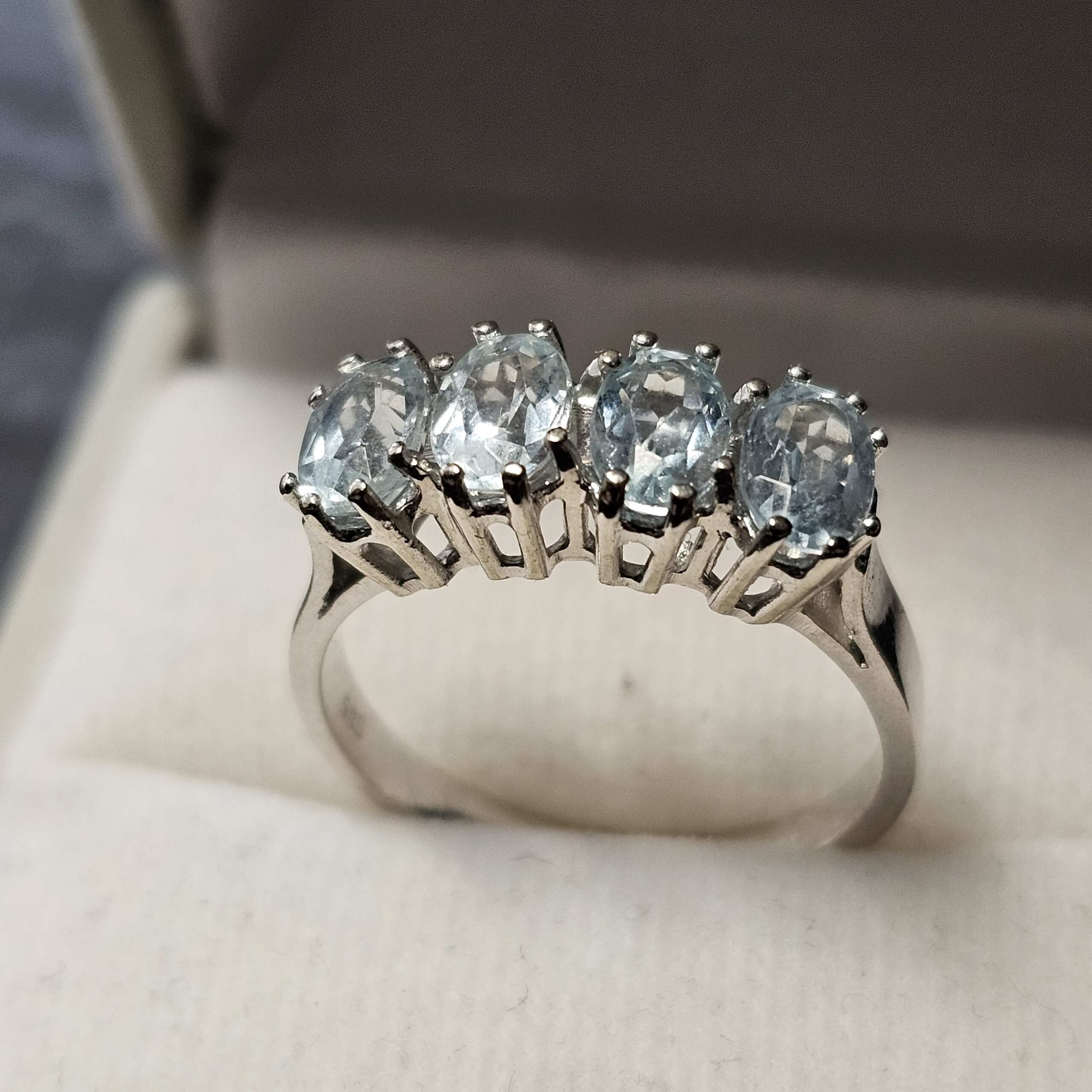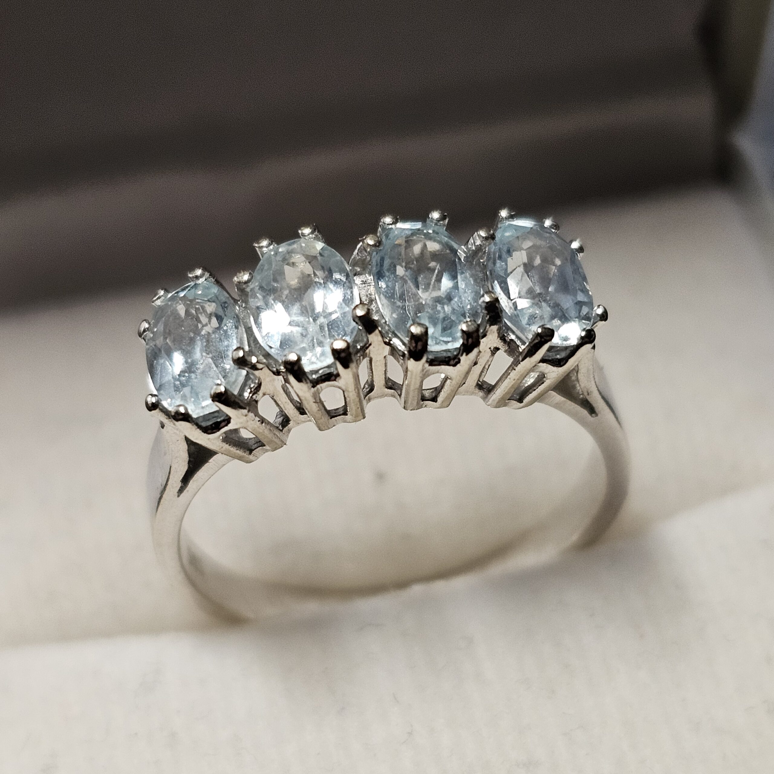 Toller Weißgoldring 585. Der Ringkopfbereich ist mit 4 Stck. Beryll Steinen besetzt.