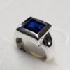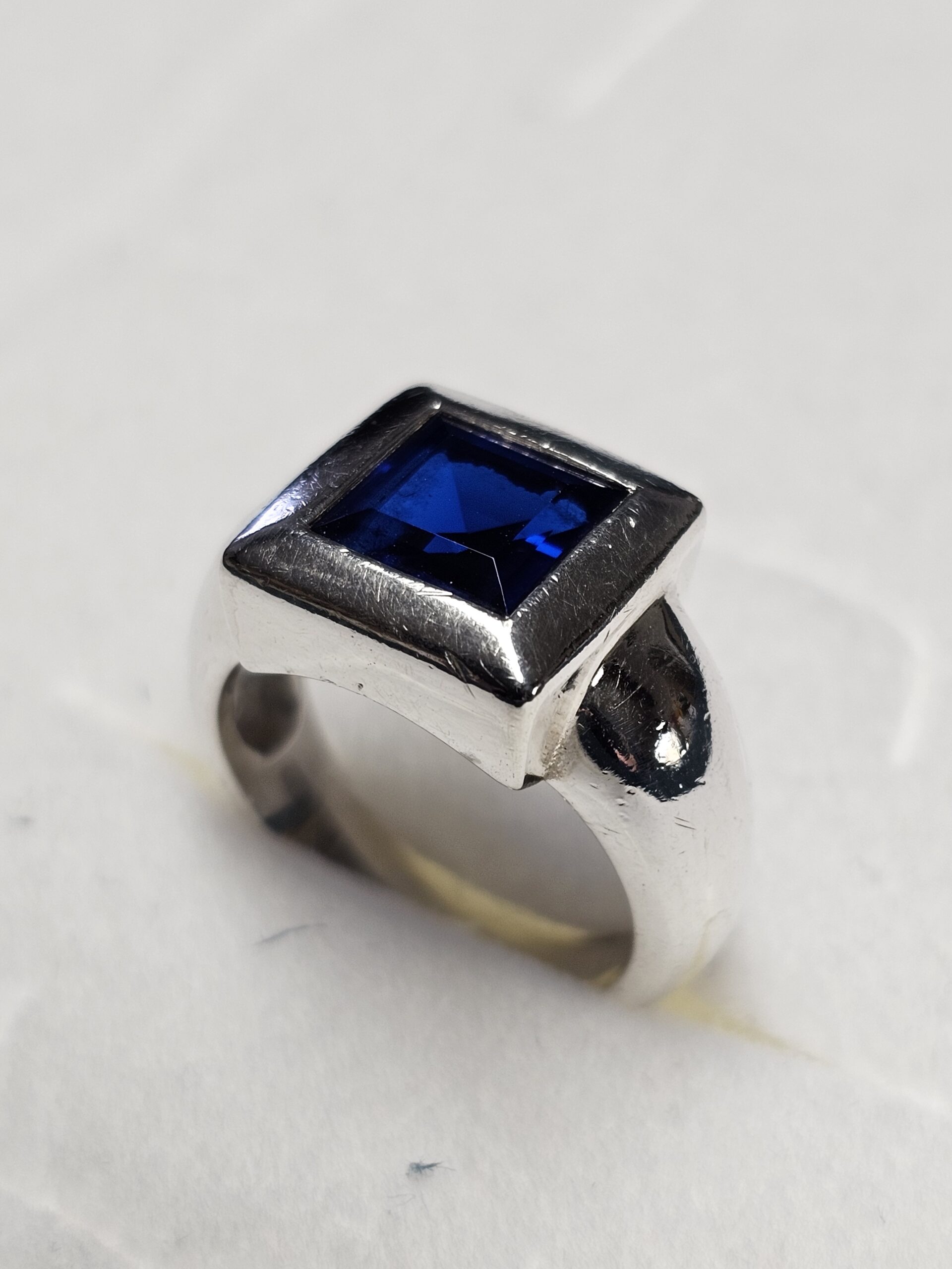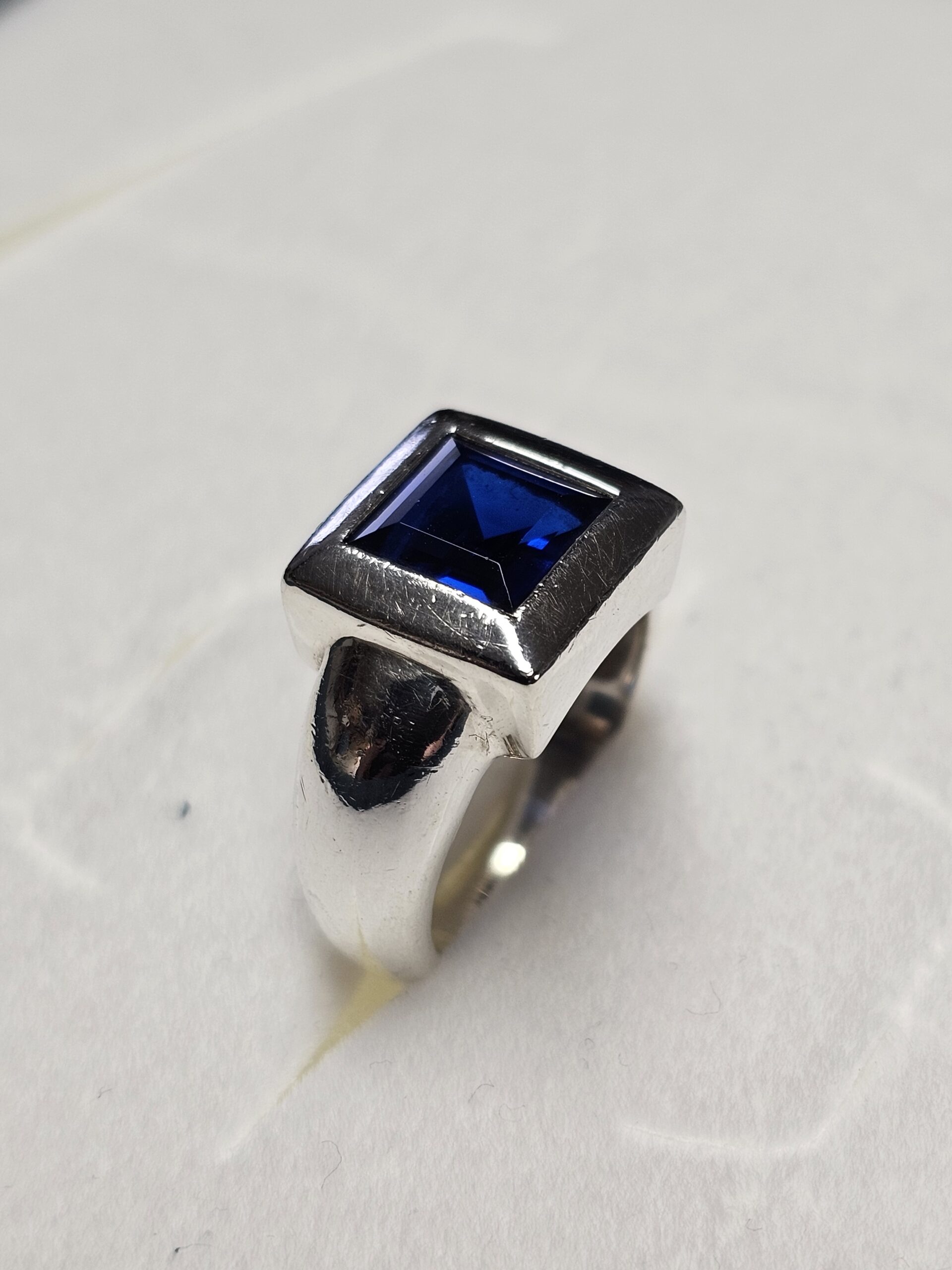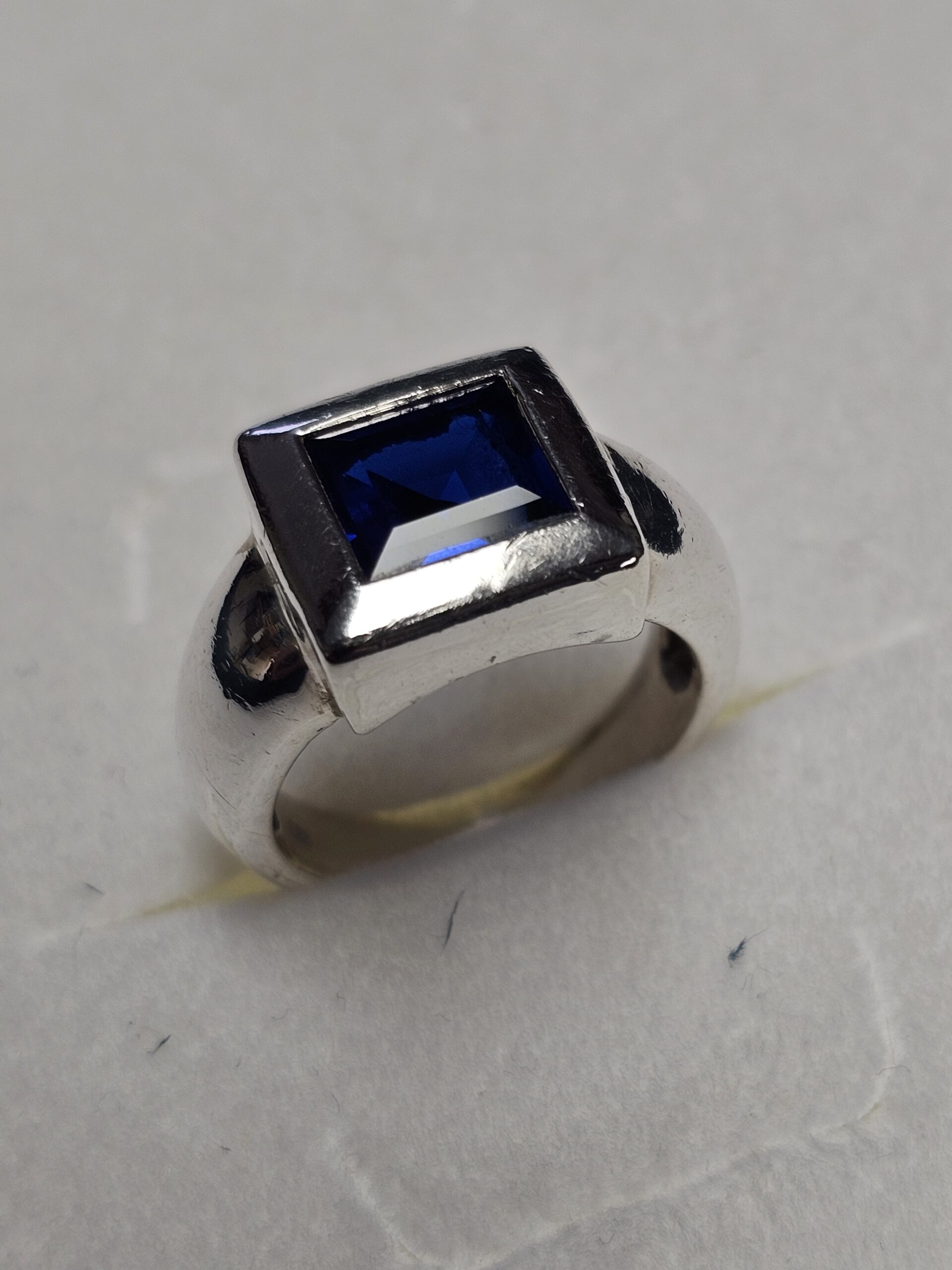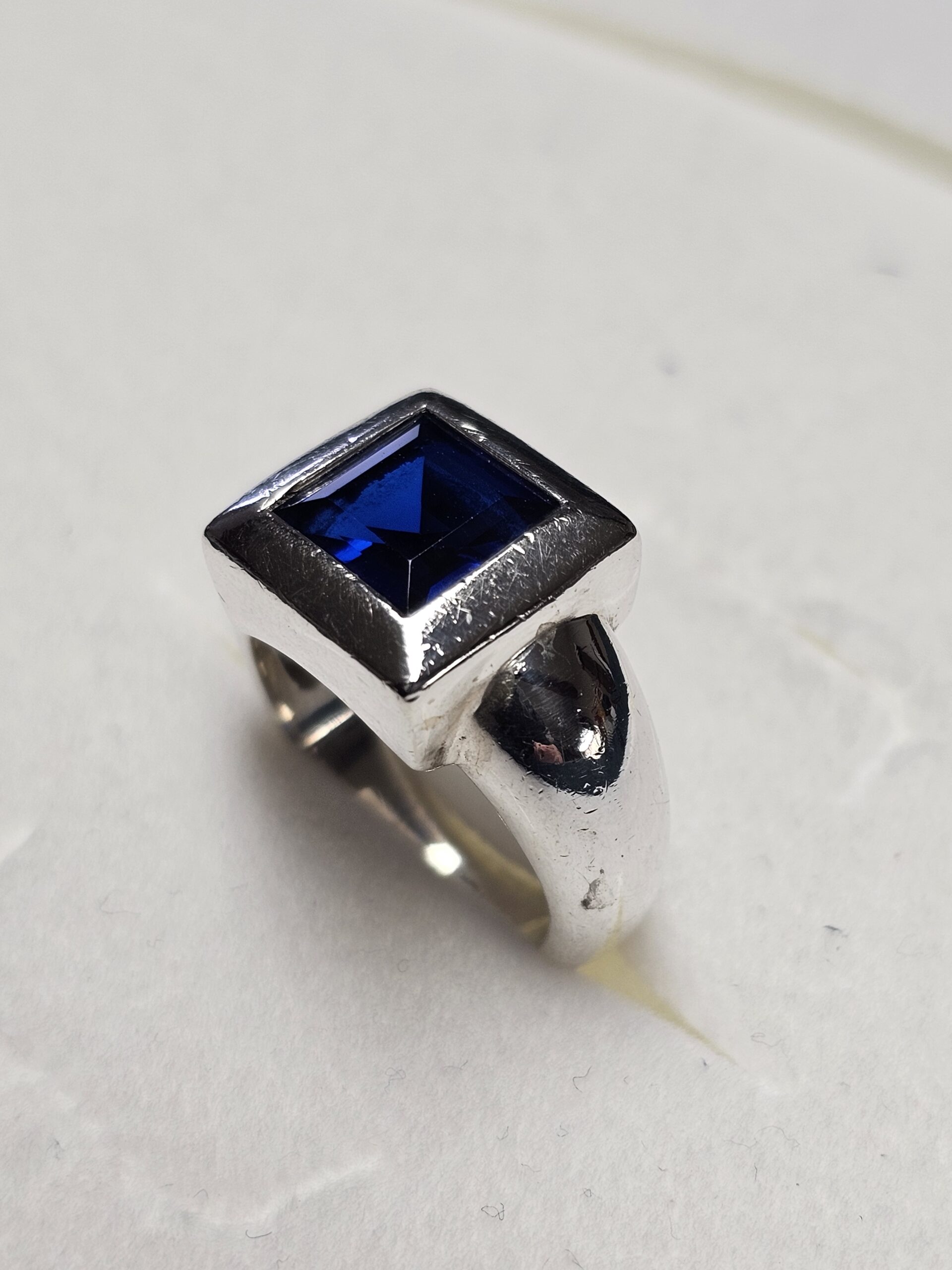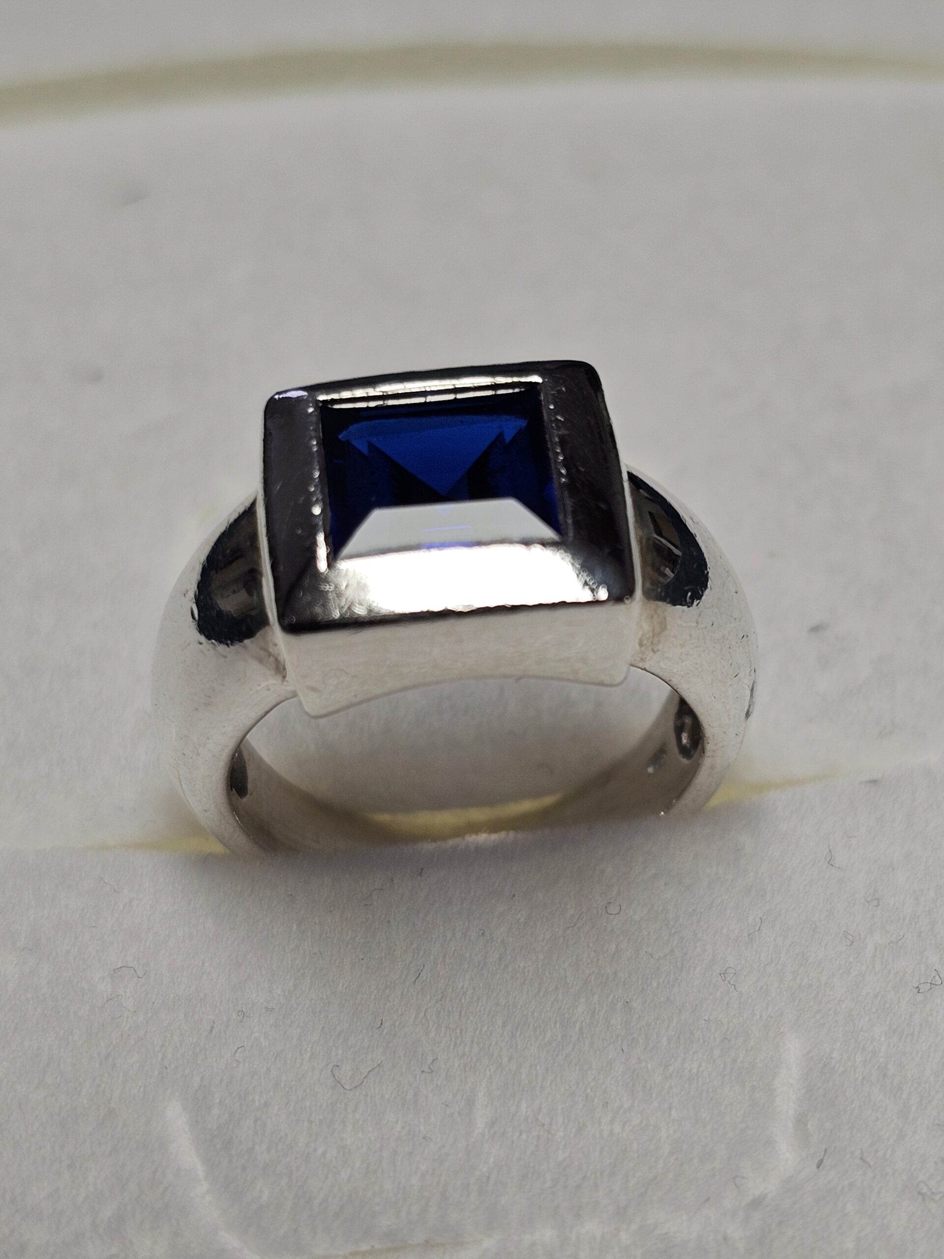 Stylischer Silberring Silber 925 mit einem blauen quadratischen Kristallstein besetzt.