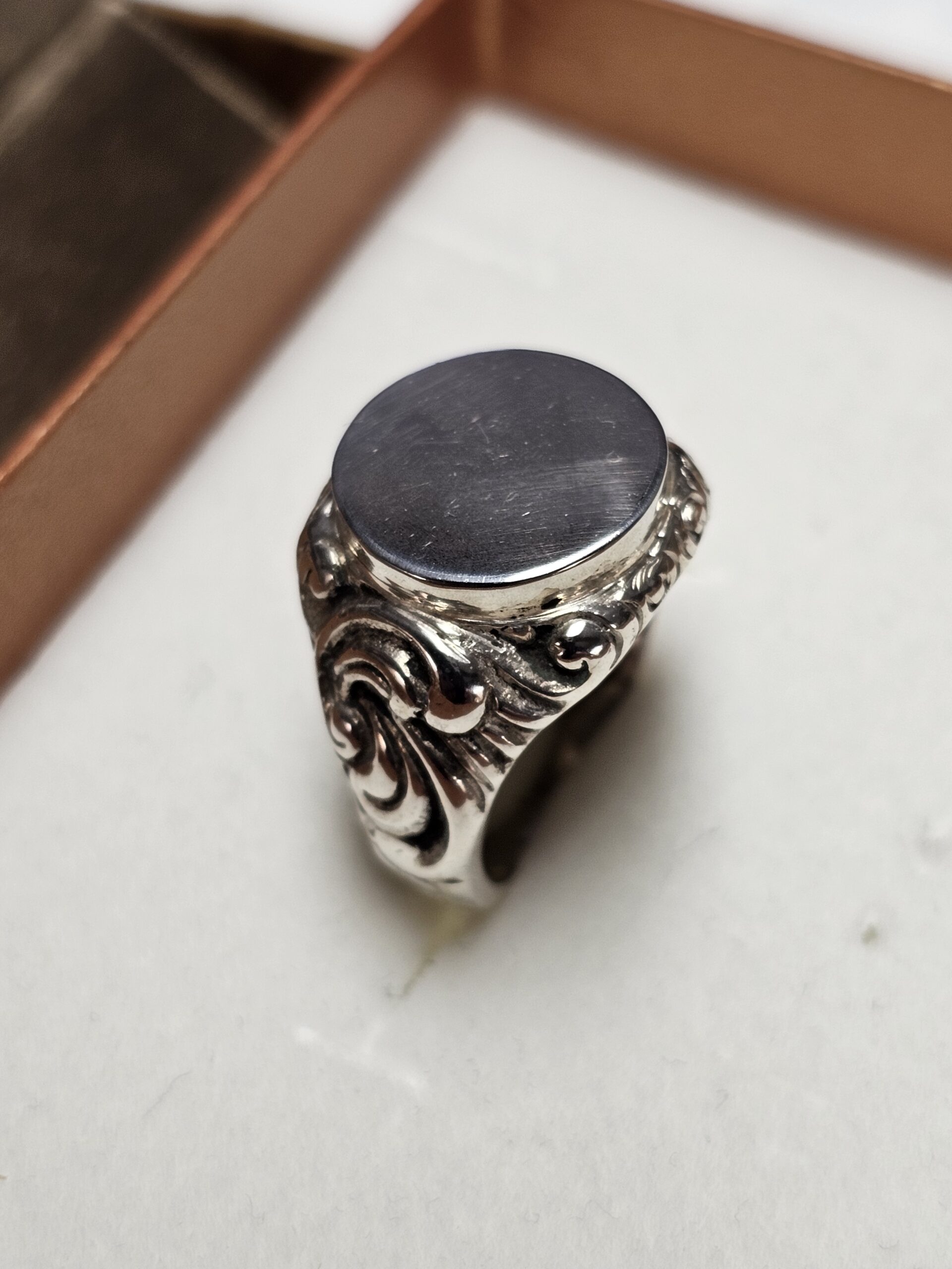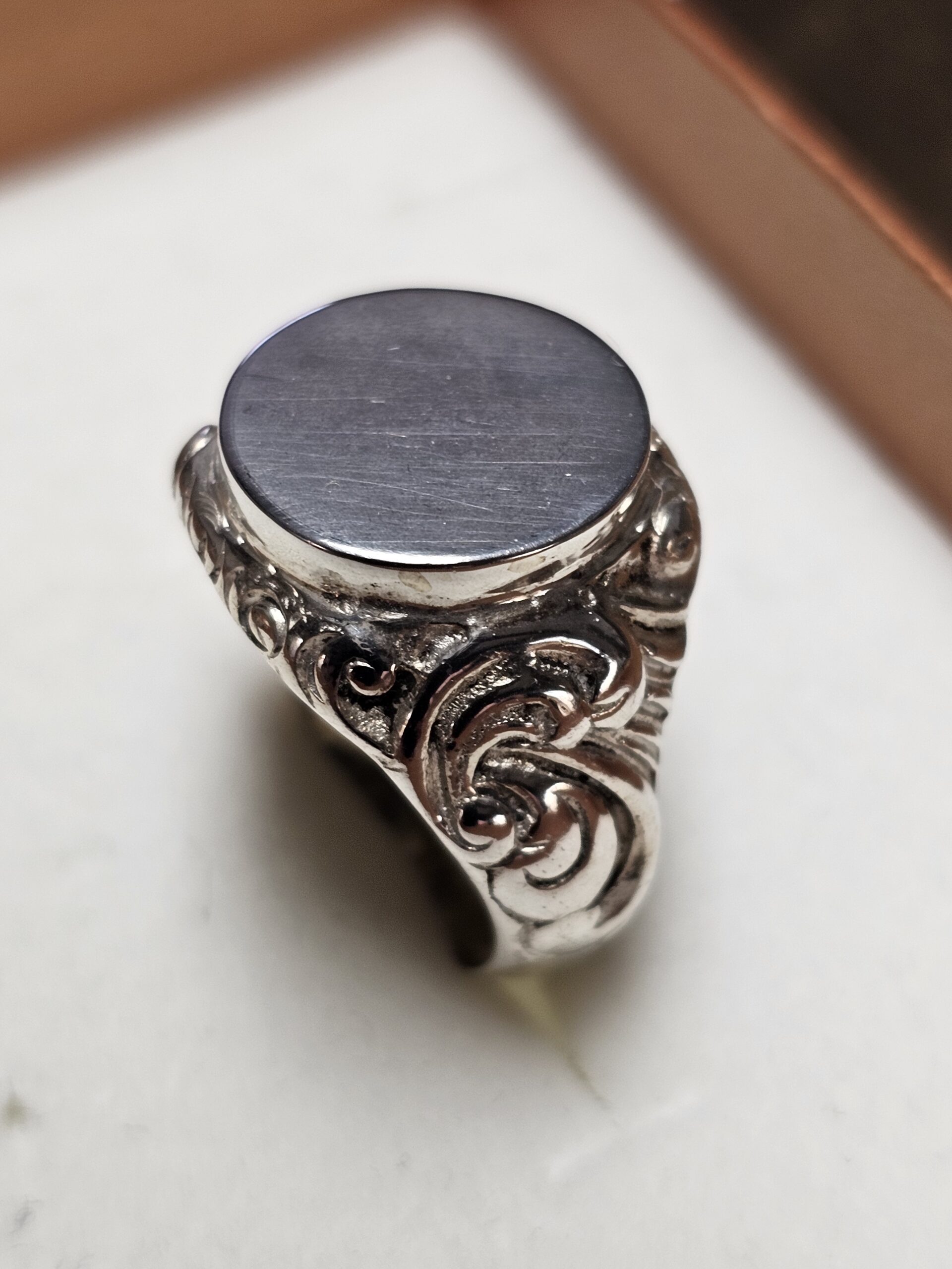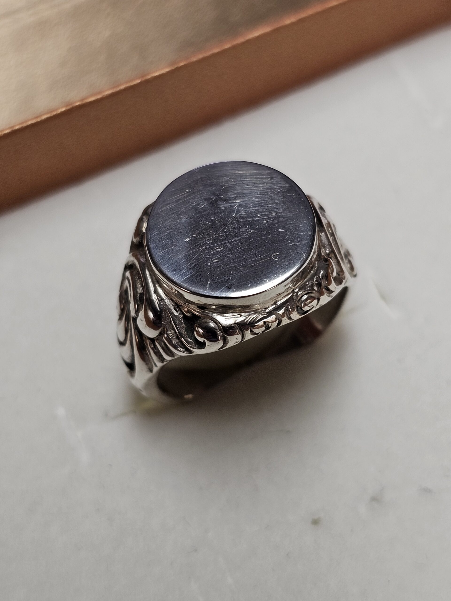 Sehr schöner Silberring / Siegelring Silber 835 mit einer Gravurplatte. Er ist in einem nostalgischen, floralen Design gearbeitet.