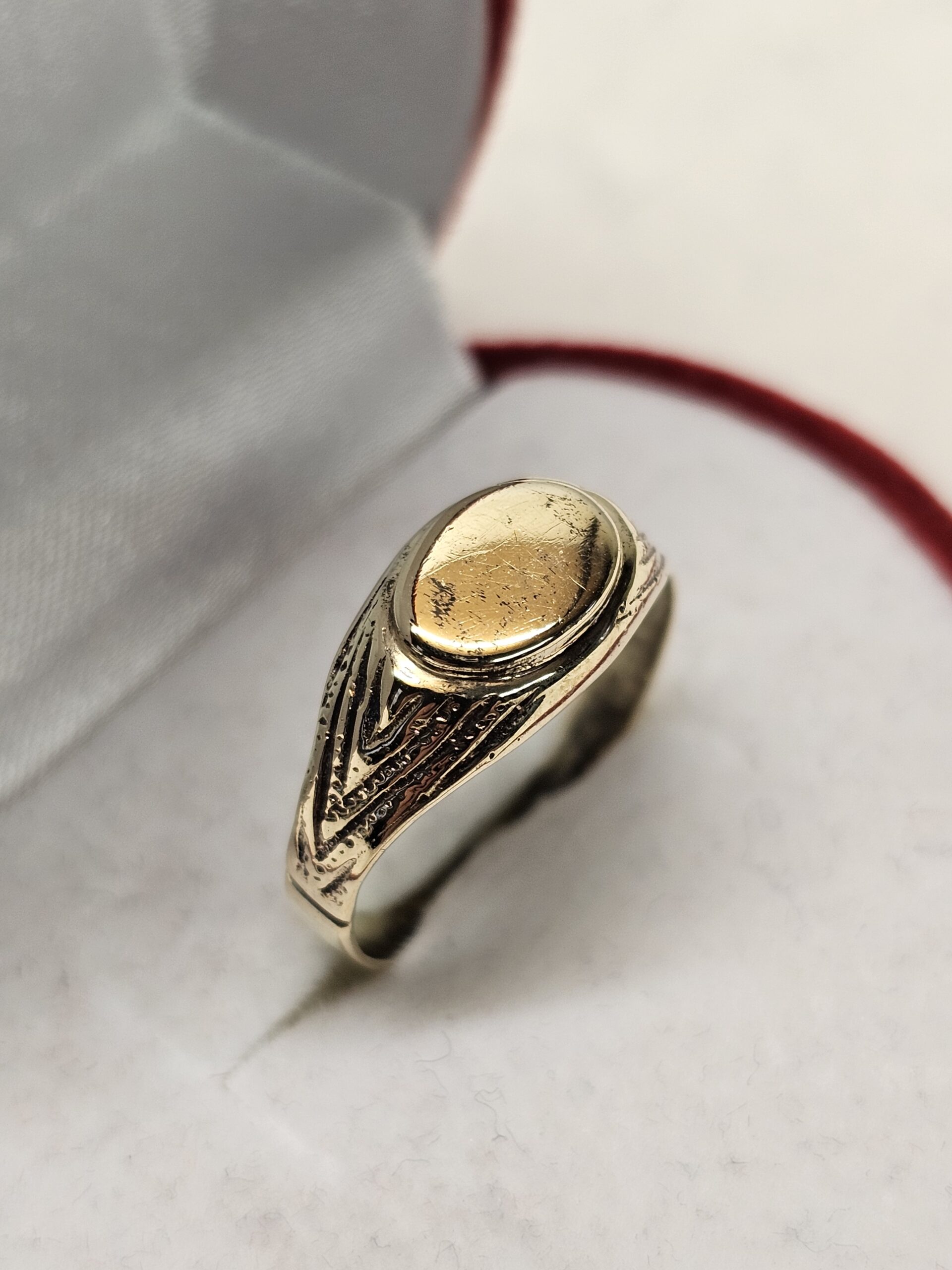 Edler, nostalgischer Ring /Siegelring aus 585 Gold. Man kann die kleine Siegelplatte gravieren lassen, er ist aber auch sehr schick ohne Gravur tragbar.