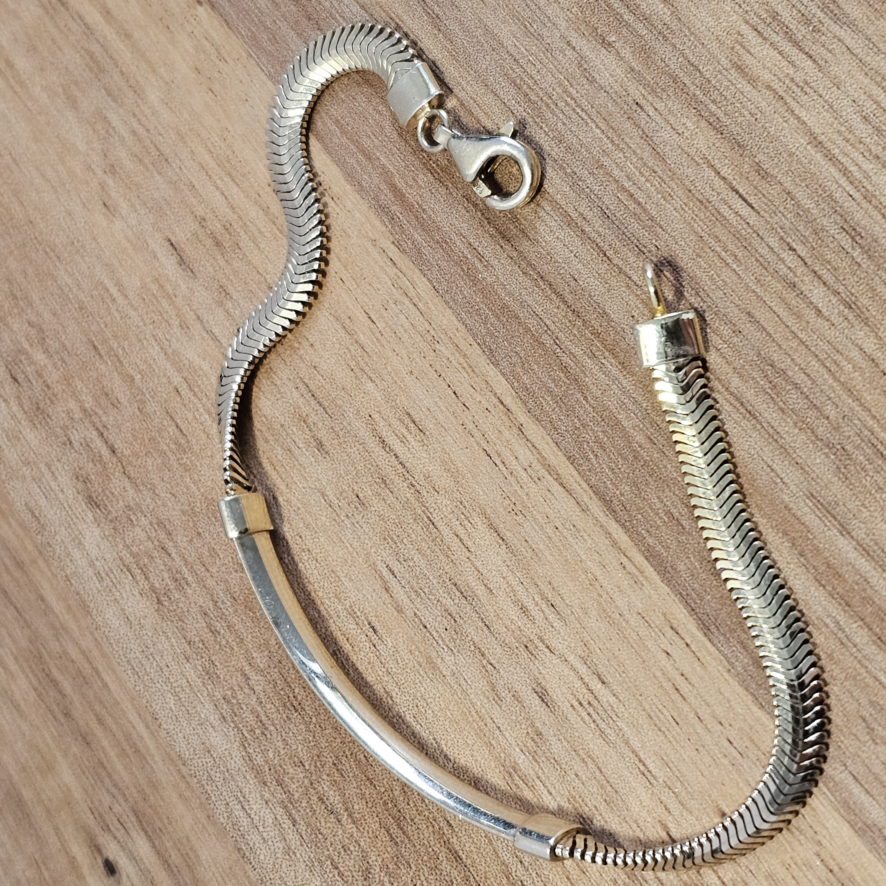 Elegantes Armband / Schlangenarmband mit Gravurplatte aus Silber 925 vergoldet.