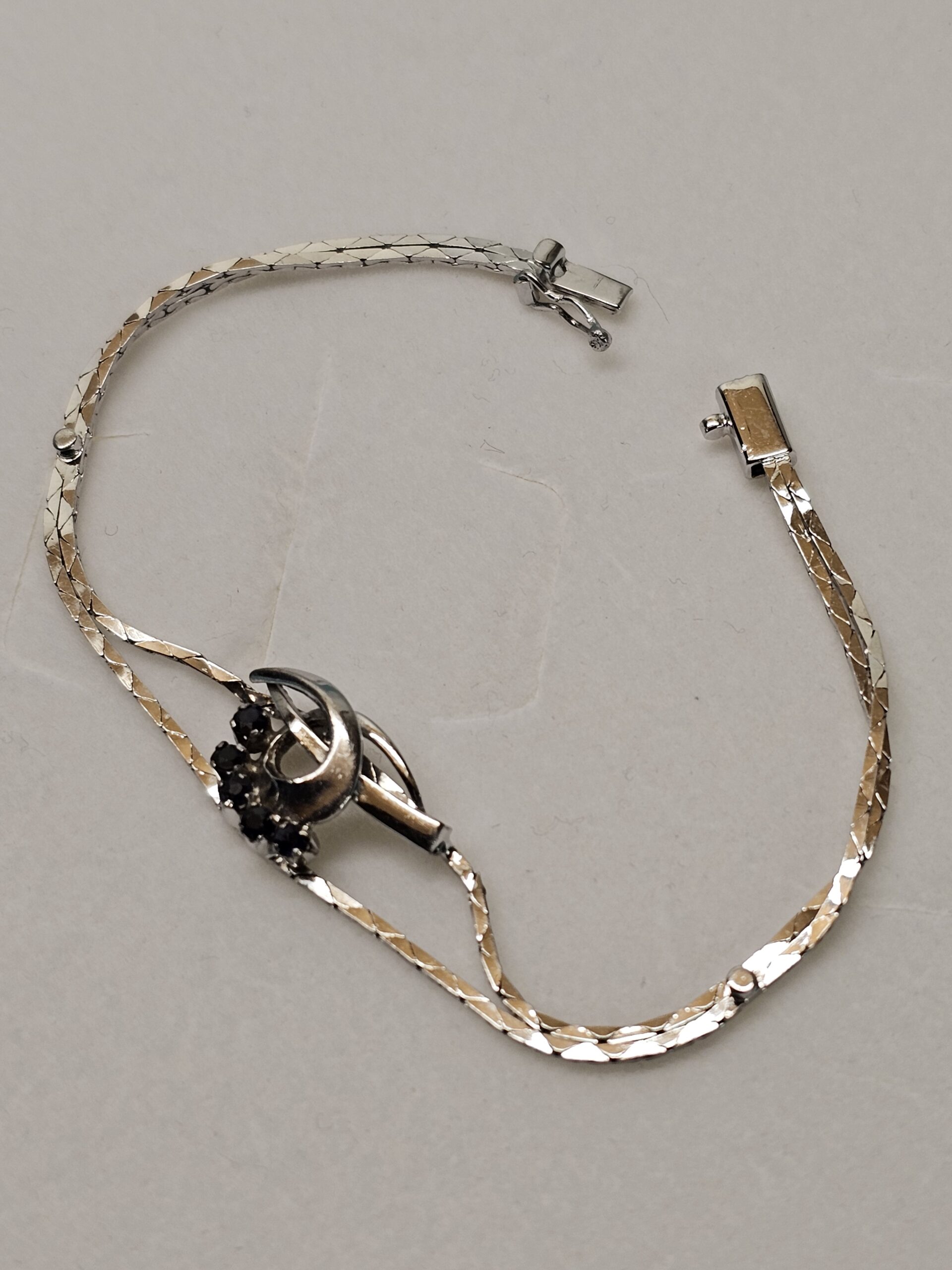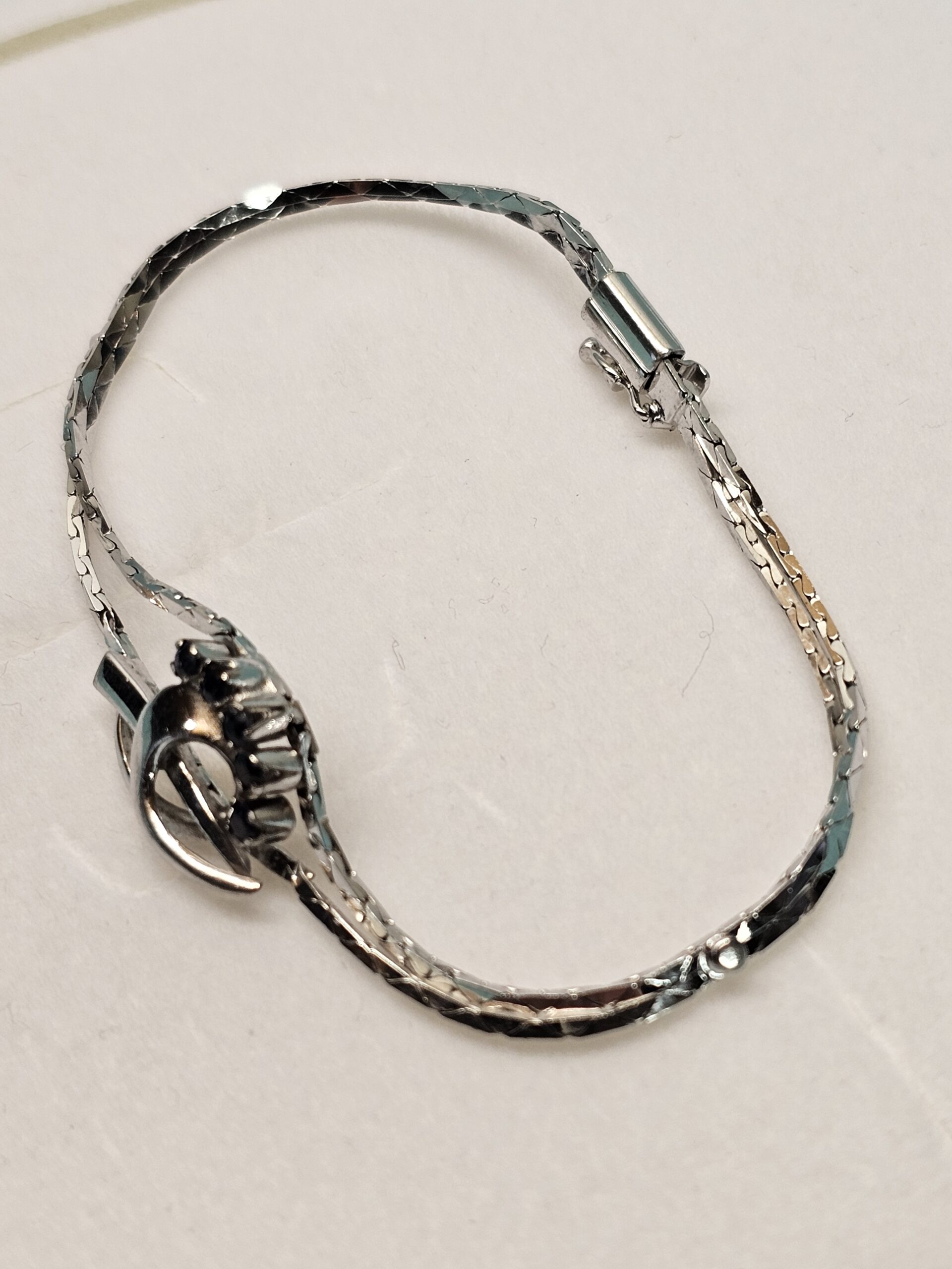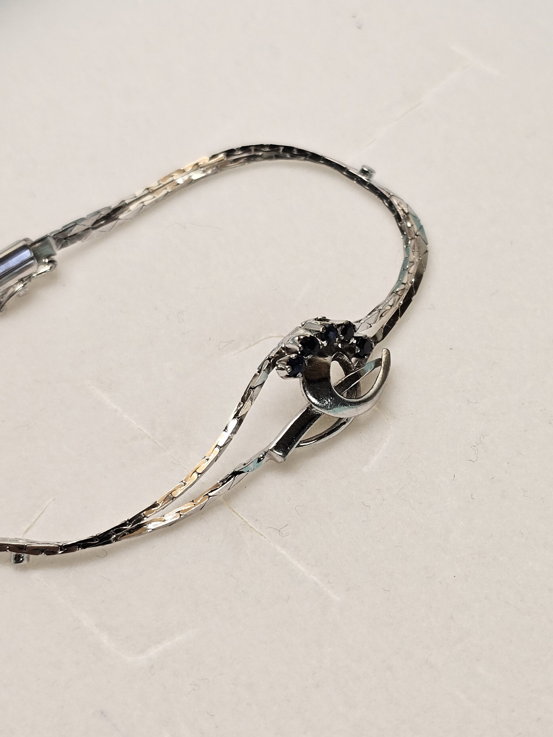 Bezaubernd schönes Schlangenarmbändchen / Silberarmband aus Silber 835. Feine Verarbeitung, es trägt 5 Saphire und ist im Kopfbereich mit einem edlen Design geschmückt.