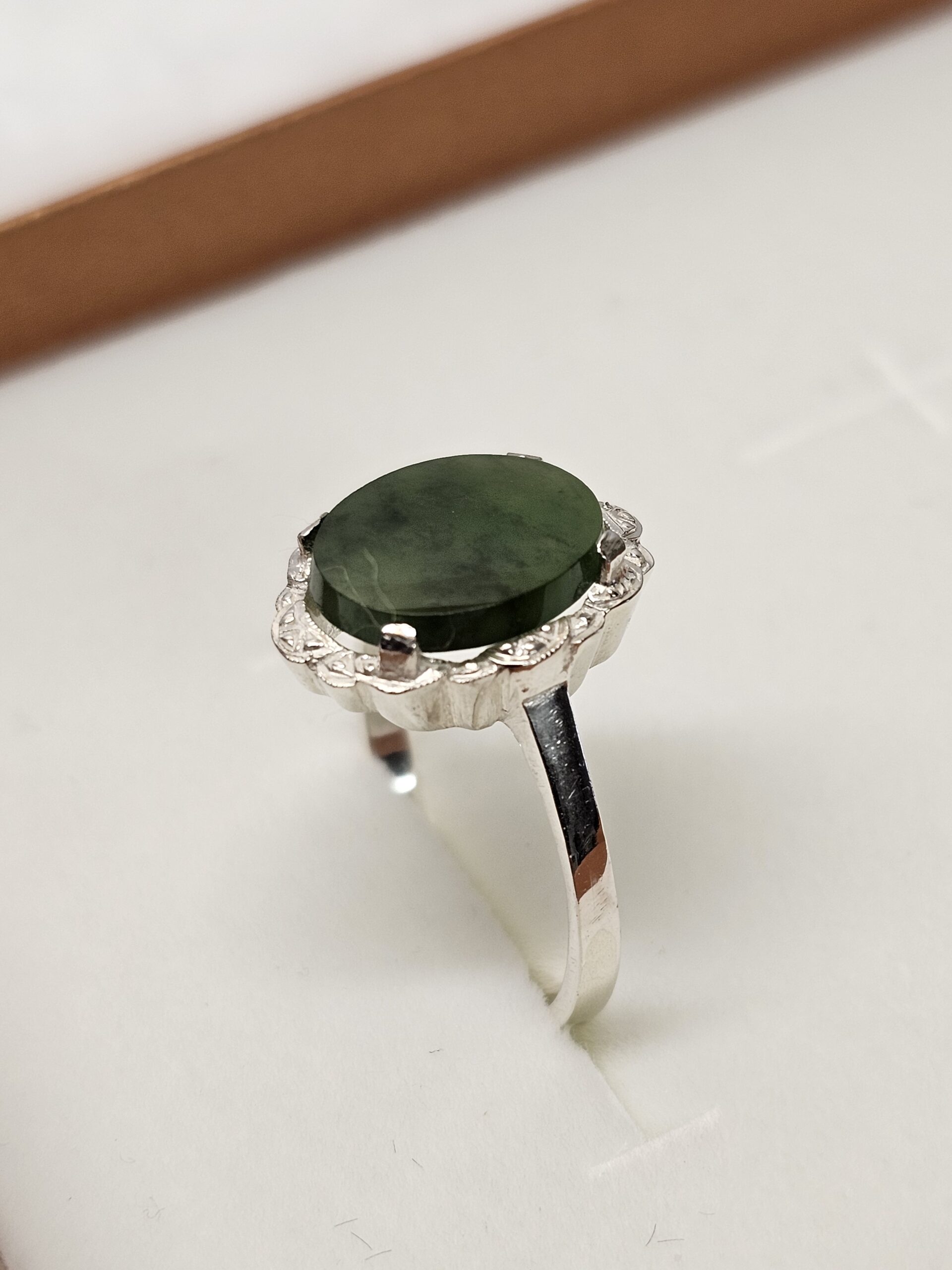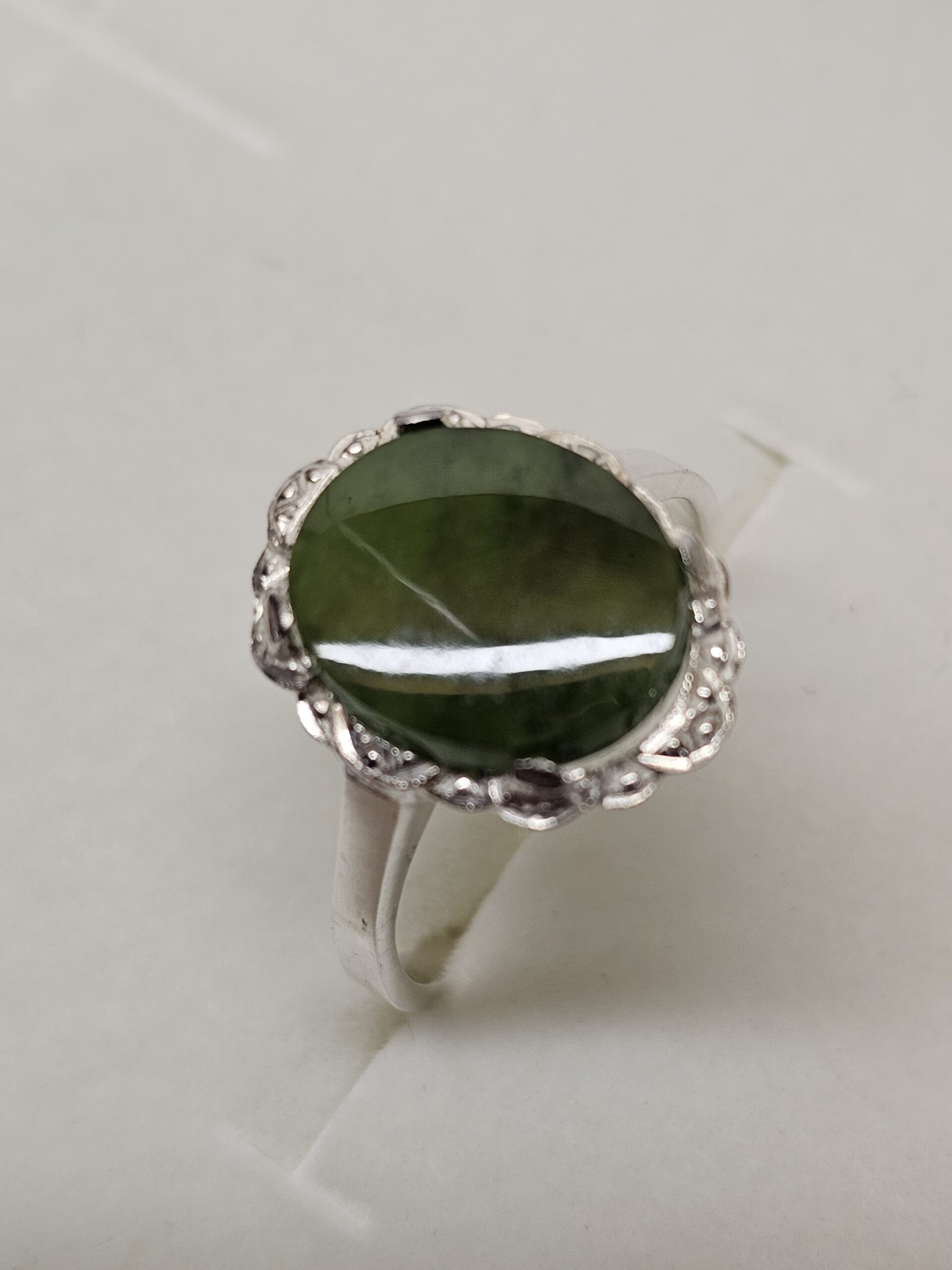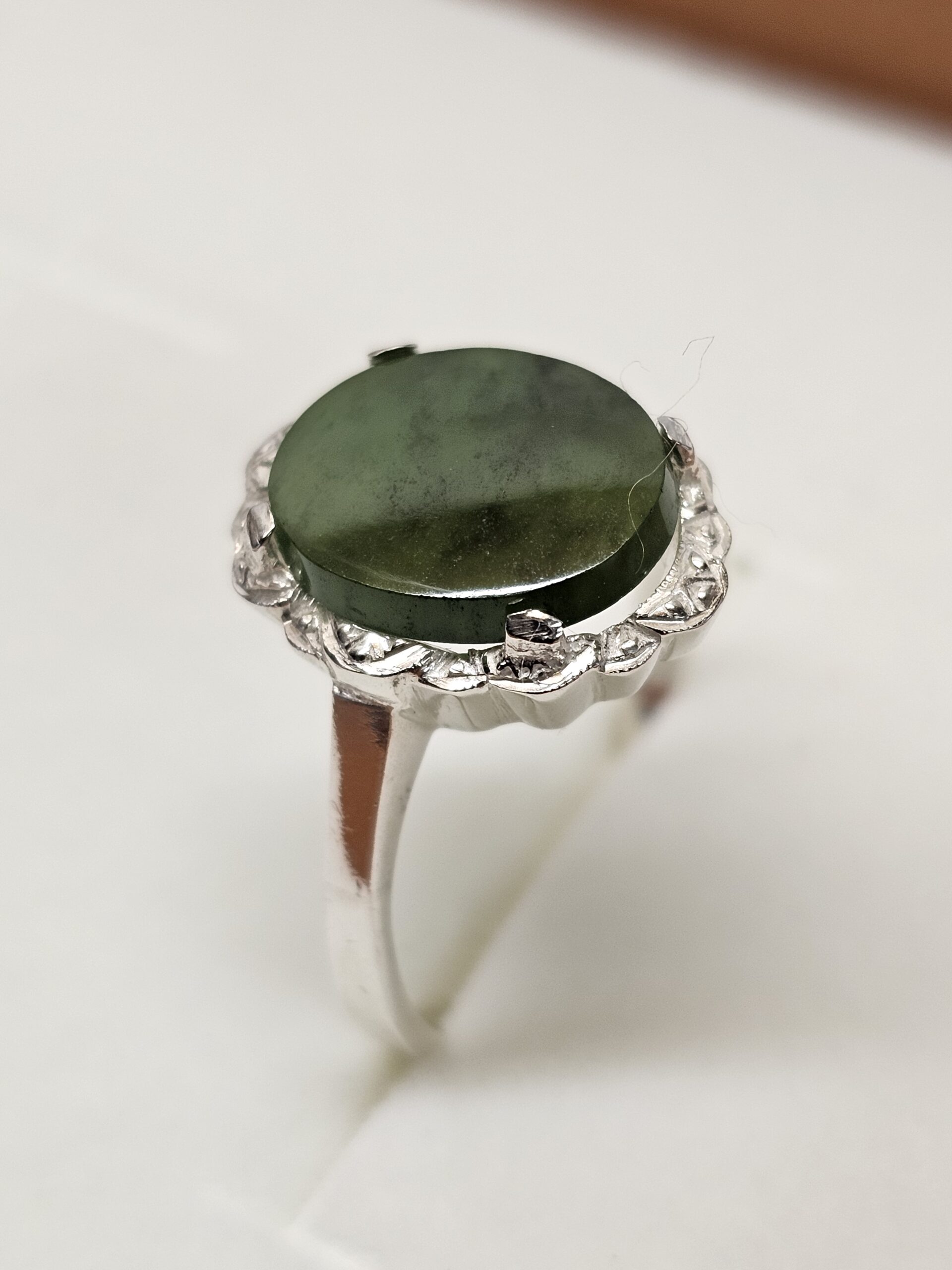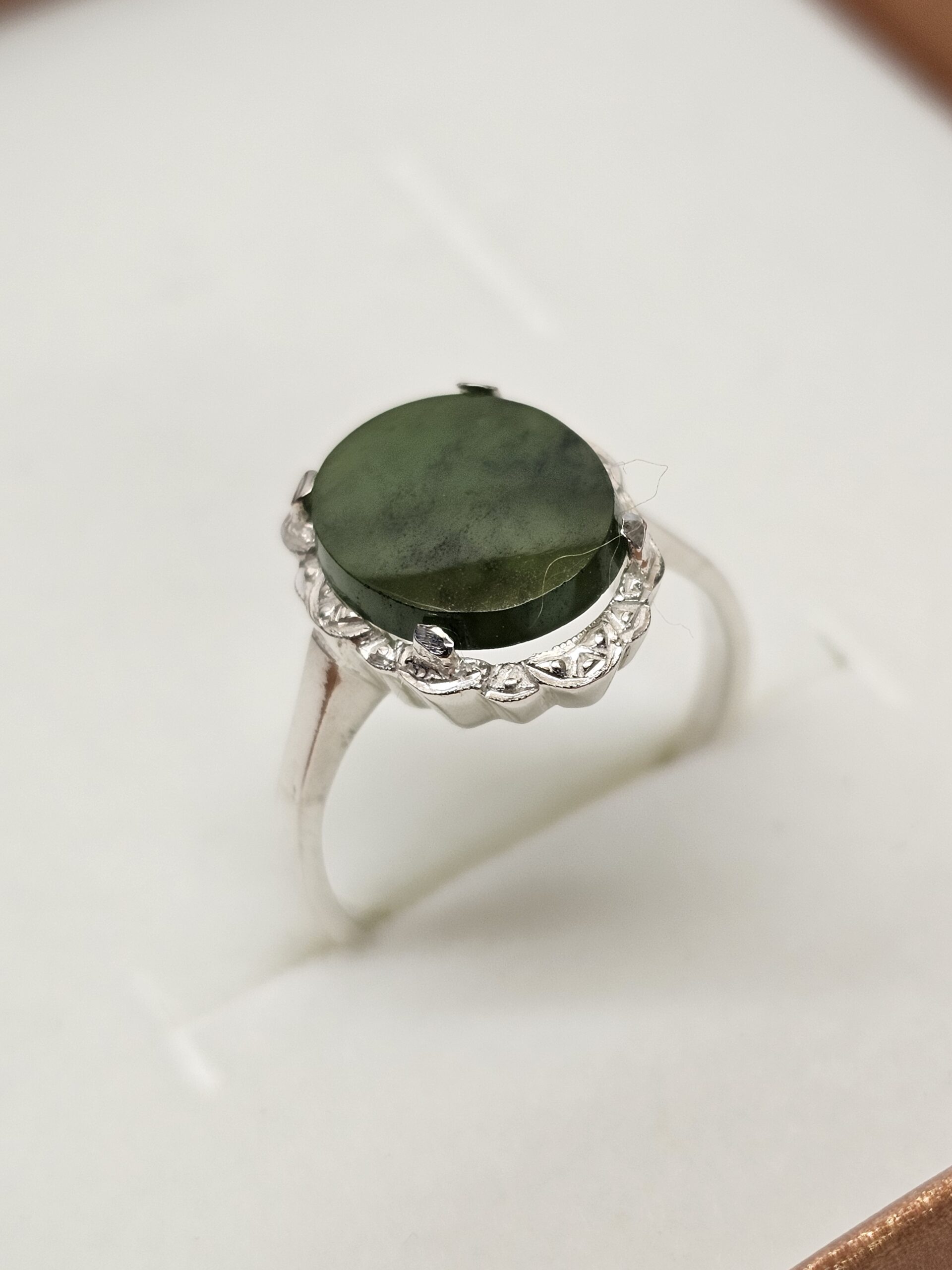18,5 mm Nostalgischer Ring Silber 835 Jade Vintage Design elegant selten rar SR1387