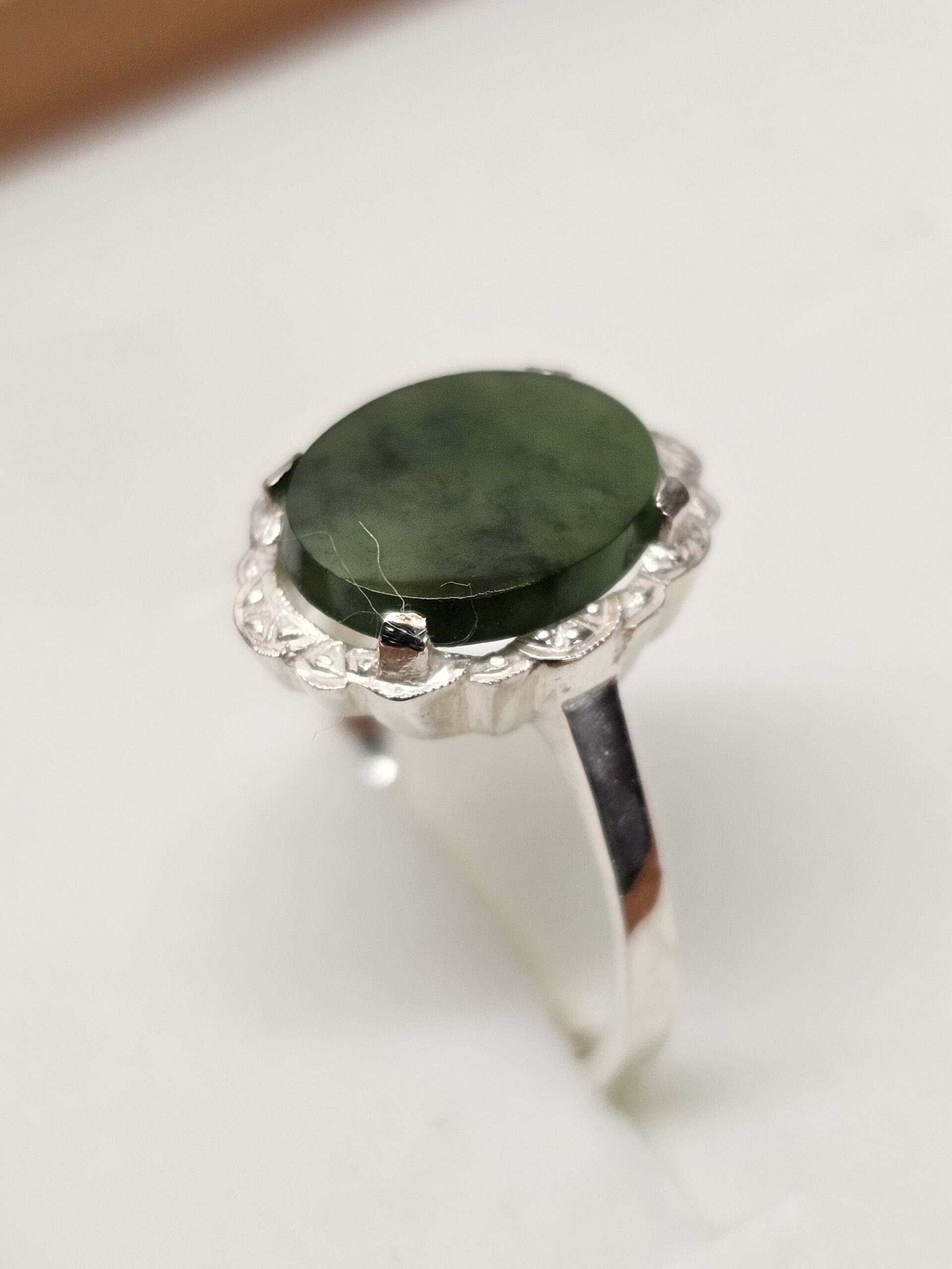 Toller nostalgischer Ring Silber 835 mit einem hübschen Jade-Stein.