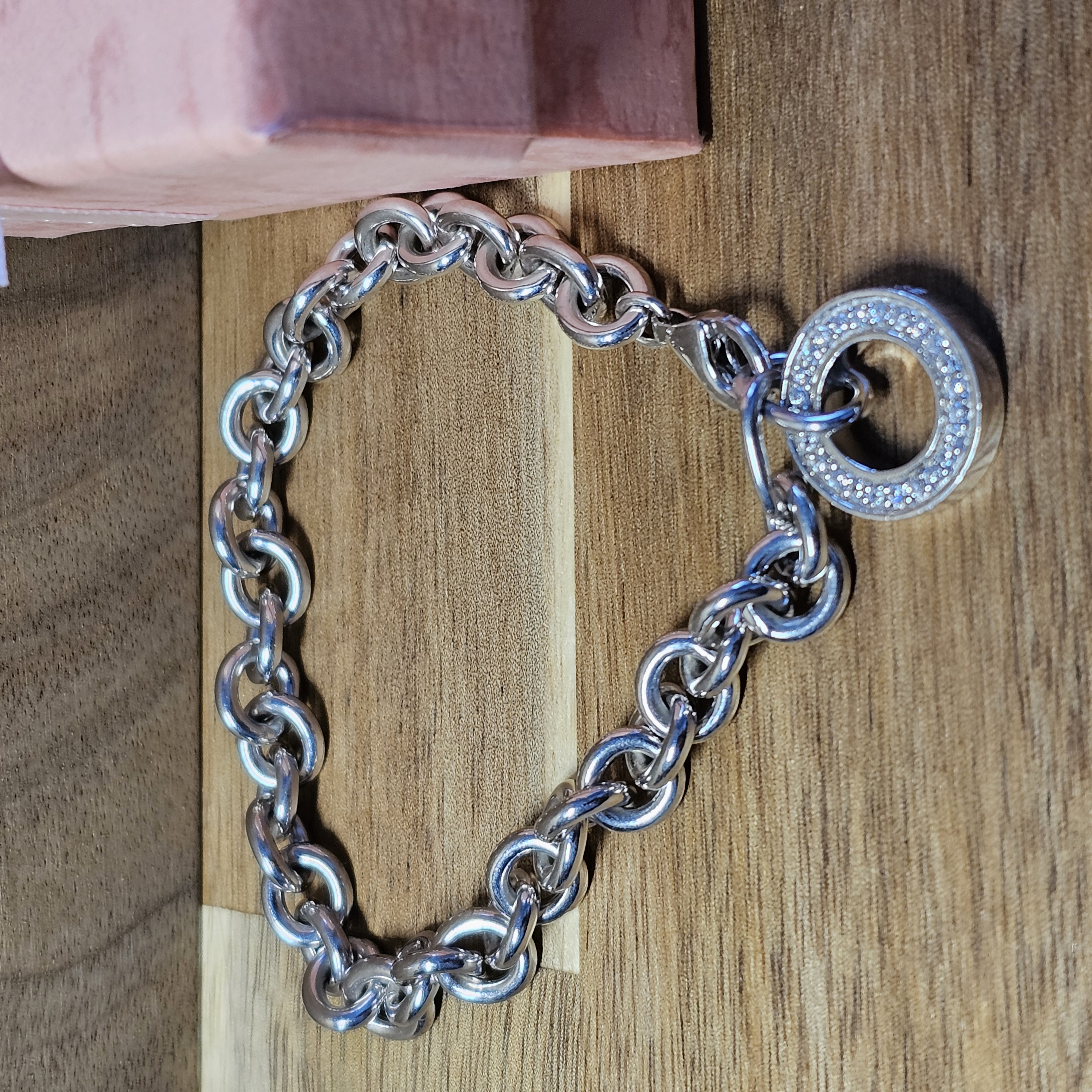 Sehr schönes Vintage Silber 925 Silberarmband, der rund Anhänger ist mit klaren Kristallsteinchen besetzt.